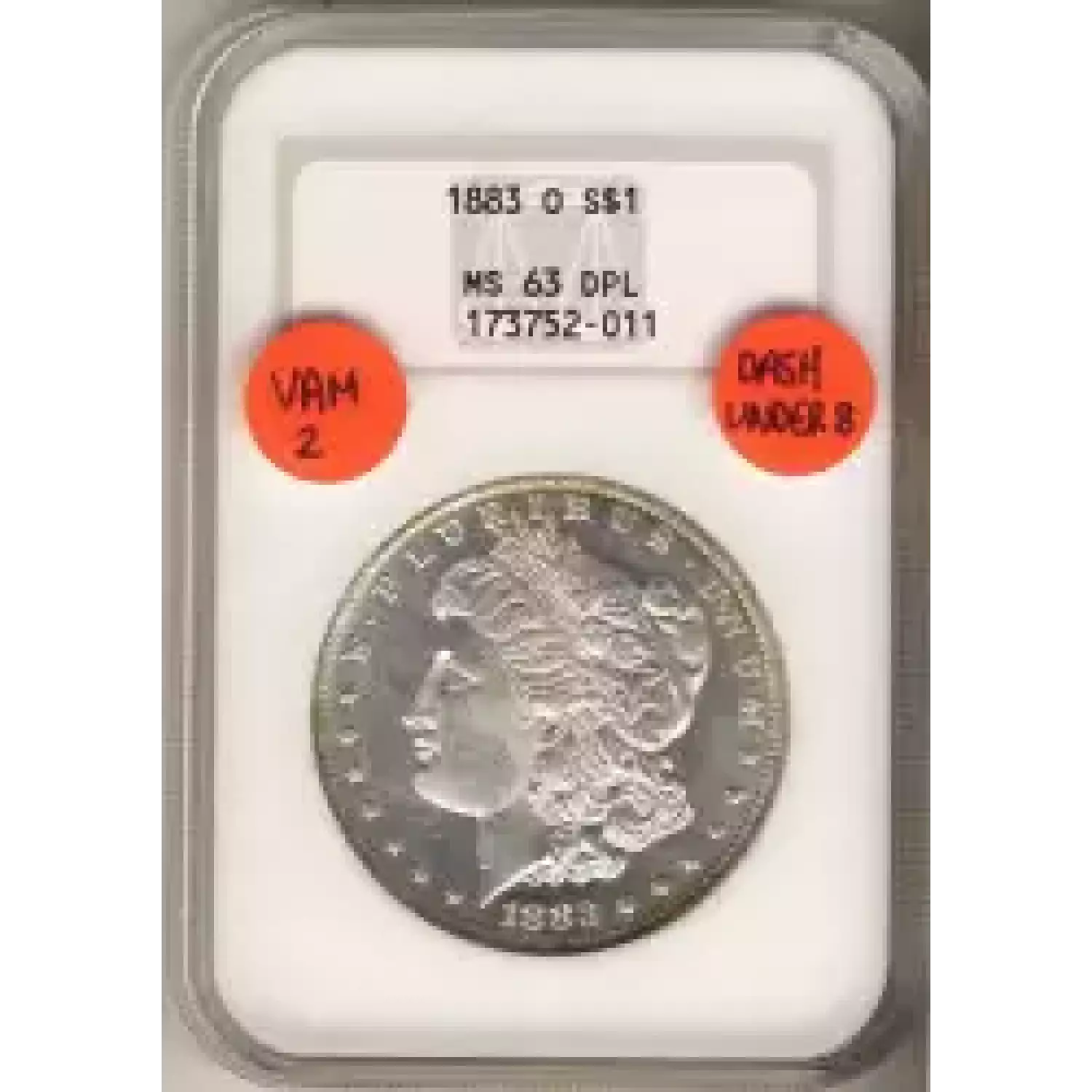 504934 | 1883-MS-62 Morgan Silver Dollar NGC MS-62 DPL | NGC | MS-62 | Sold: 20/02/2010 | $105 |