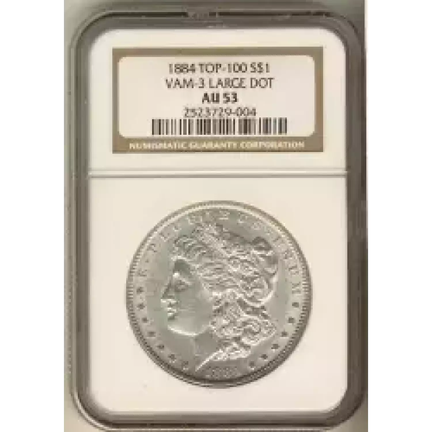504763 | 1884-AU-53 Morgan Silver Dollar NGC AU-53 | NGC | AU-53 | Sold: 30/07/2013 | $100 |