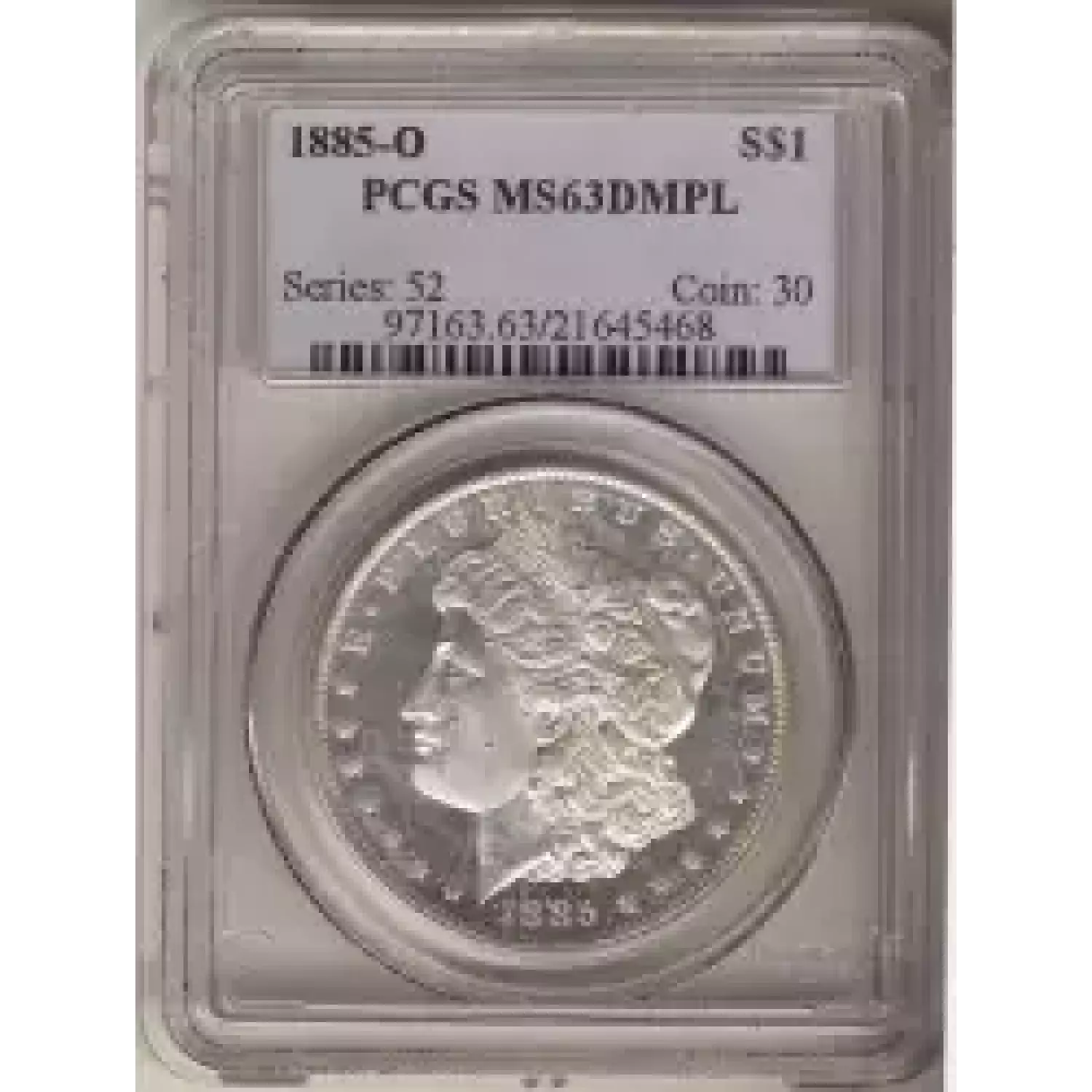 504810 | 1885-MS-63 Morgan Silver Dollar PCGS MS-63 DMPL | PCGS | MS-63 | Sold: 01/07/2009 | $135 |