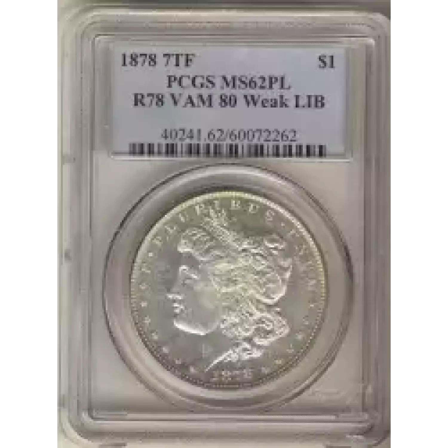 504828 | 1878-MS-62 Morgan Silver Dollar PCGS MS-62 PL | PCGS | MS-62 | Sold: 04/08/2011 | $5,000 |