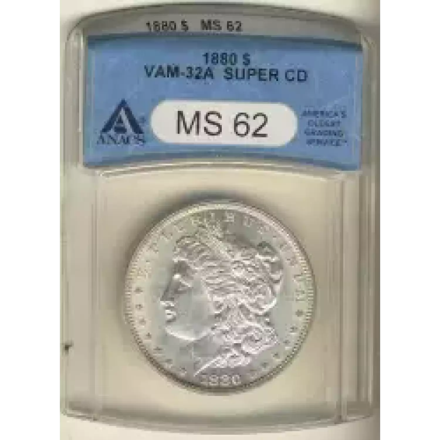 504833 | 1880-MS-62 Morgan Silver Dollar ANACS MS-62 | ANACS | MS-62 | Sold: 04/08/2011 | $250 |