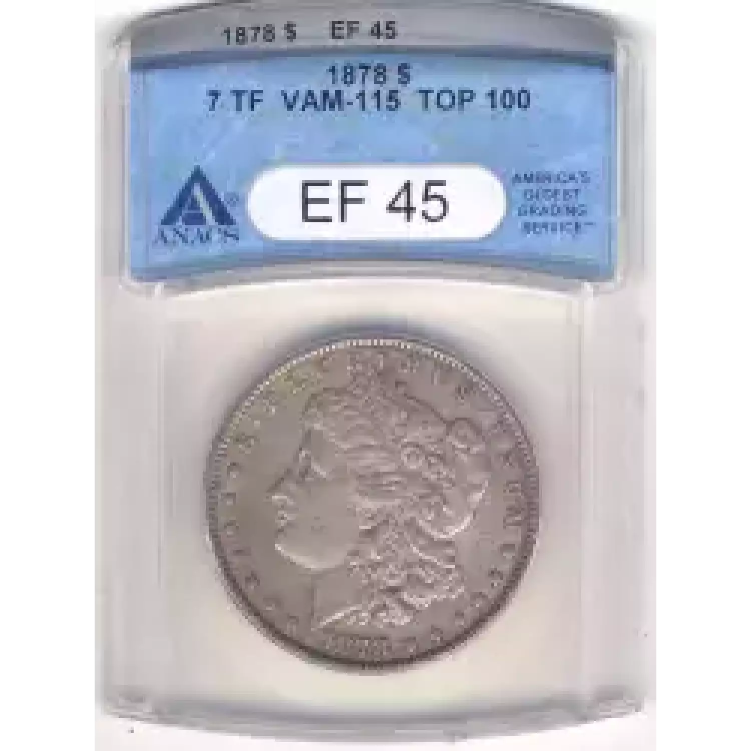 504847 | 1878-EF-45 Morgan Silver Dollar ANACS XF-45 | ANACS | XF-45 | Sold: 30/04/2012 | $205 |