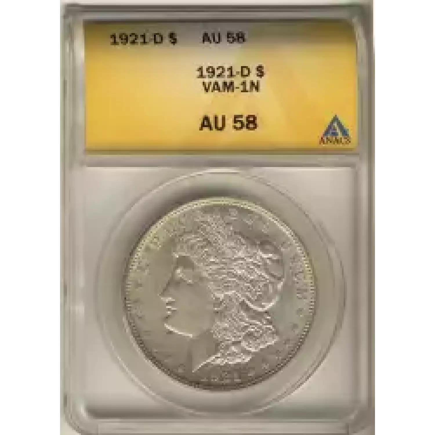 504883 | 1921-AU-58 Morgan Silver Dollar ANACS AU-58 | ANACS | AU-58 | Sold: 20/08/2009 | $90 |
