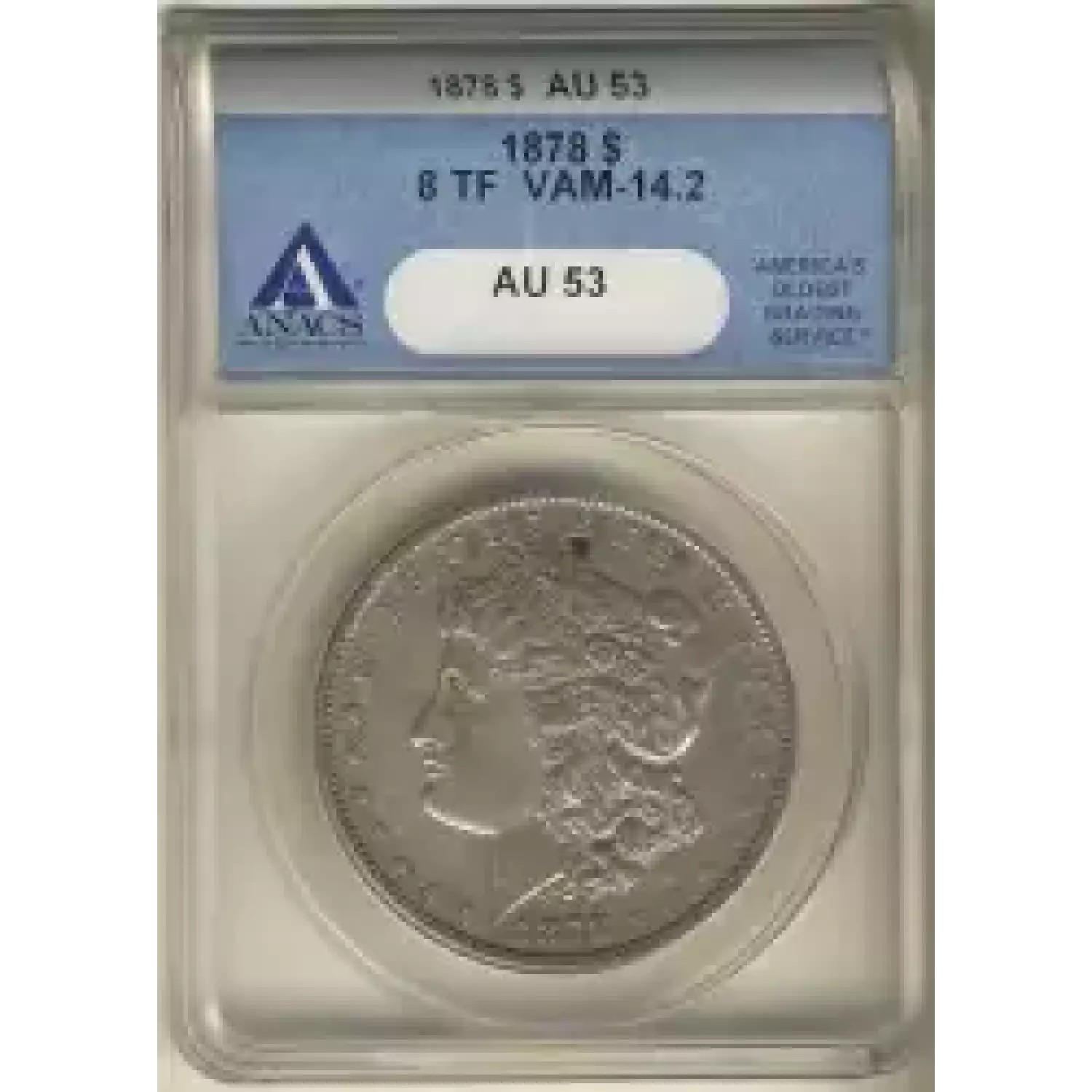 504894 | 1878-AU-53 Morgan Silver Dollar ANACS AU-53 | ANACS | AU-53 | Sold: 12/11/2009 | $85 |