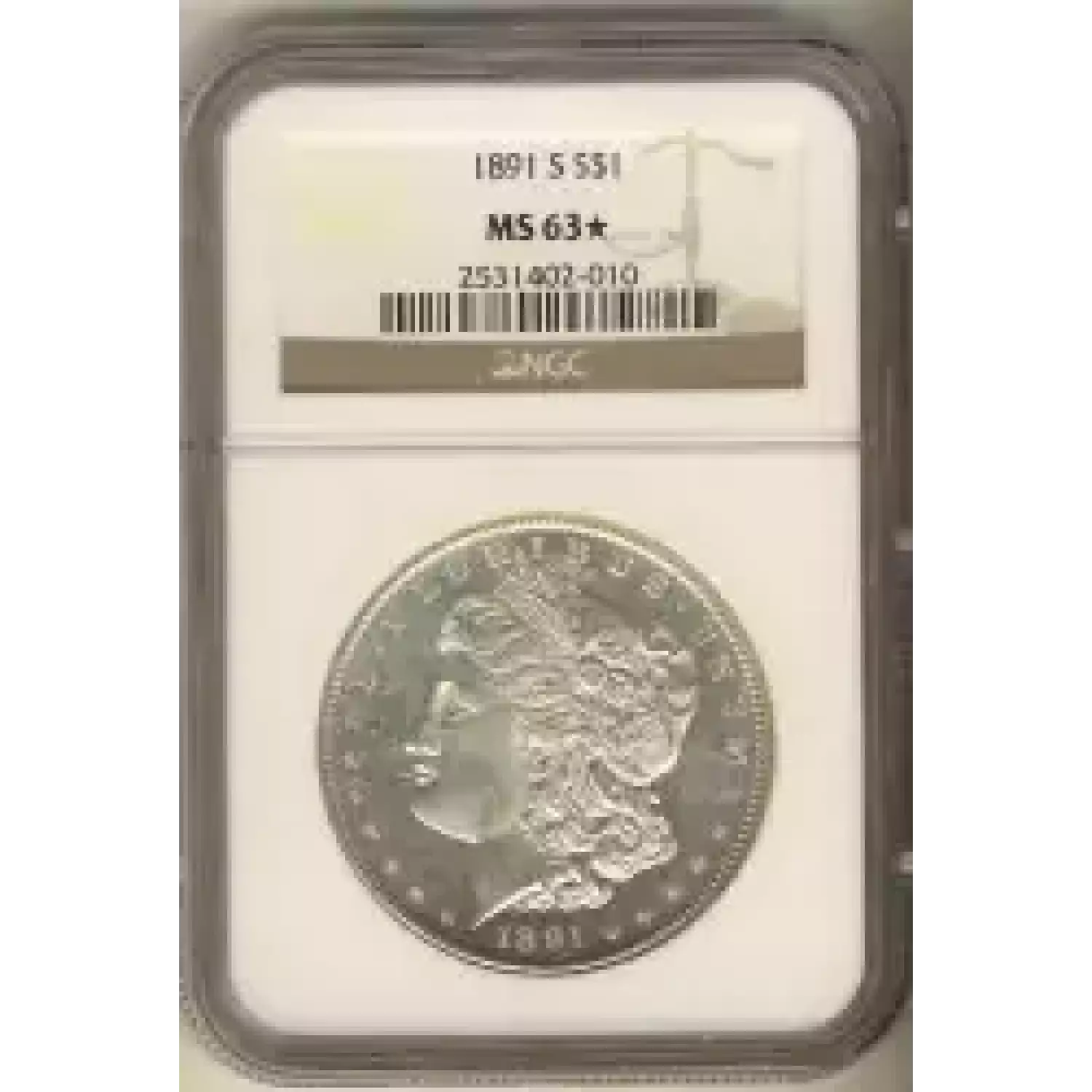 504907 | 1891-MS-63* Morgan Silver Dollar NGC MS-63* | NGC | MS-63* | Sold: 15/08/2009 | $145 |