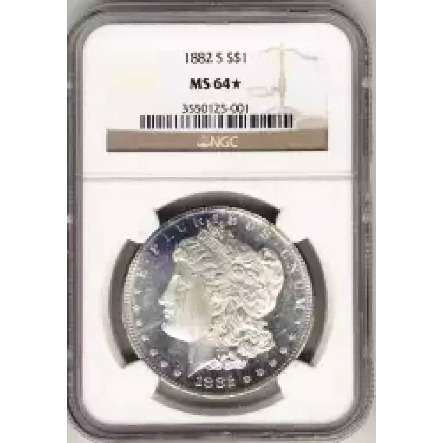 504922 | 1882-MS-64* Morgan Silver Dollar NGC MS-64* | NGC | MS-64* | Sold: 09/04/2012 | $126.44 |