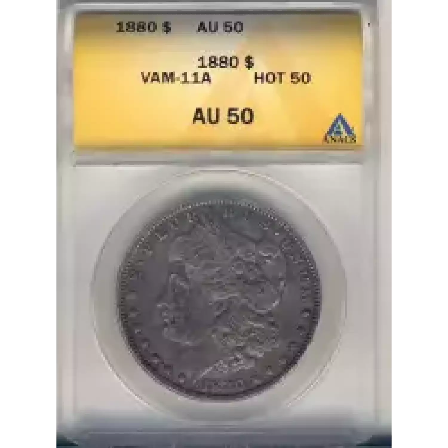 504924 | 1880-AU-50 Morgan Silver Dollar ANACS AU-50 | ANACS | AU-50 | Sold: 19/12/2011 | $33 |