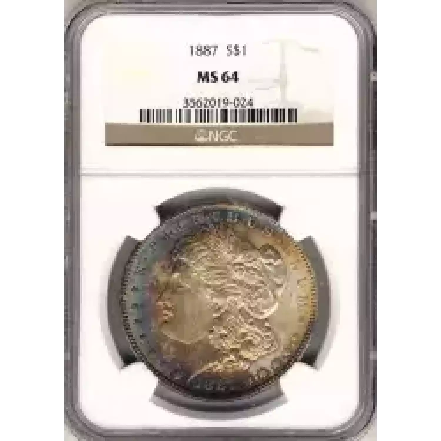 506093 | 1887-MS-64 Morgan Silver Dollar NGC MS-64 | NGC | MS-64 | Sold: 19/05/2012 | $115 |