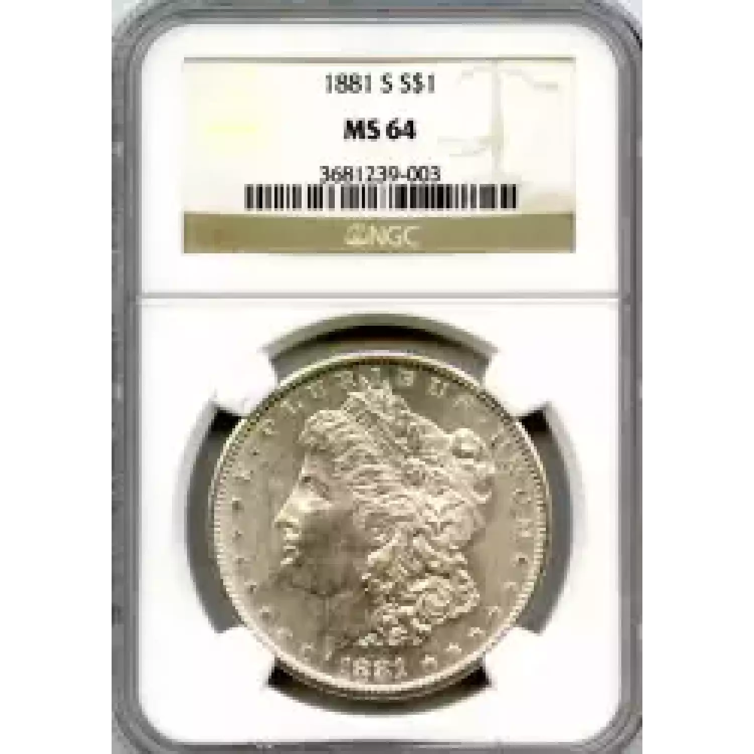 506190 | 1881-MS-64* Morgan Silver Dollar NGC MS-64* | NGC | MS-64* | Sold: 14/07/2012 | $225 |