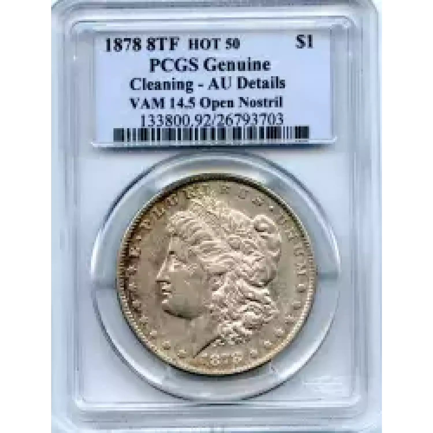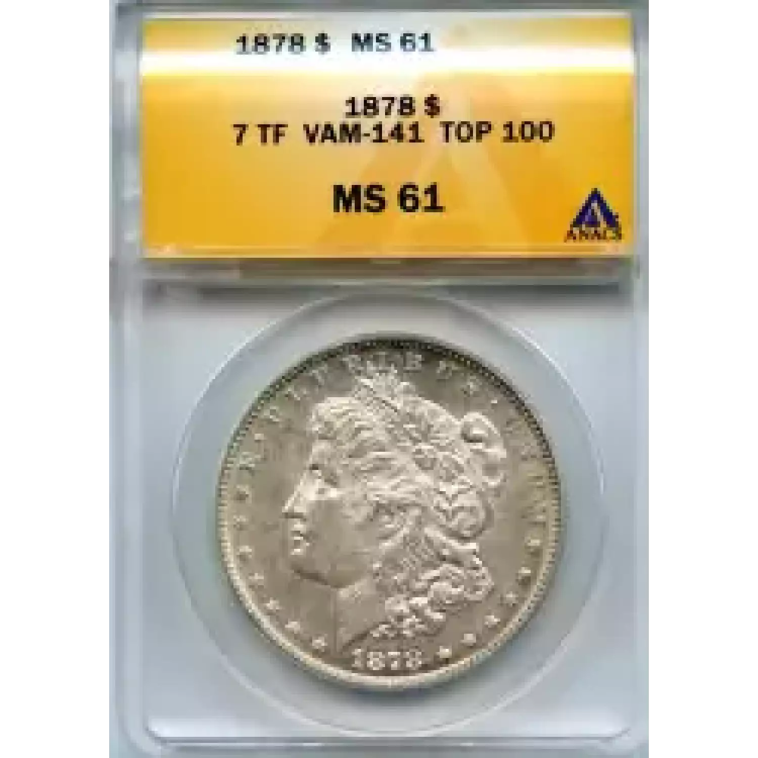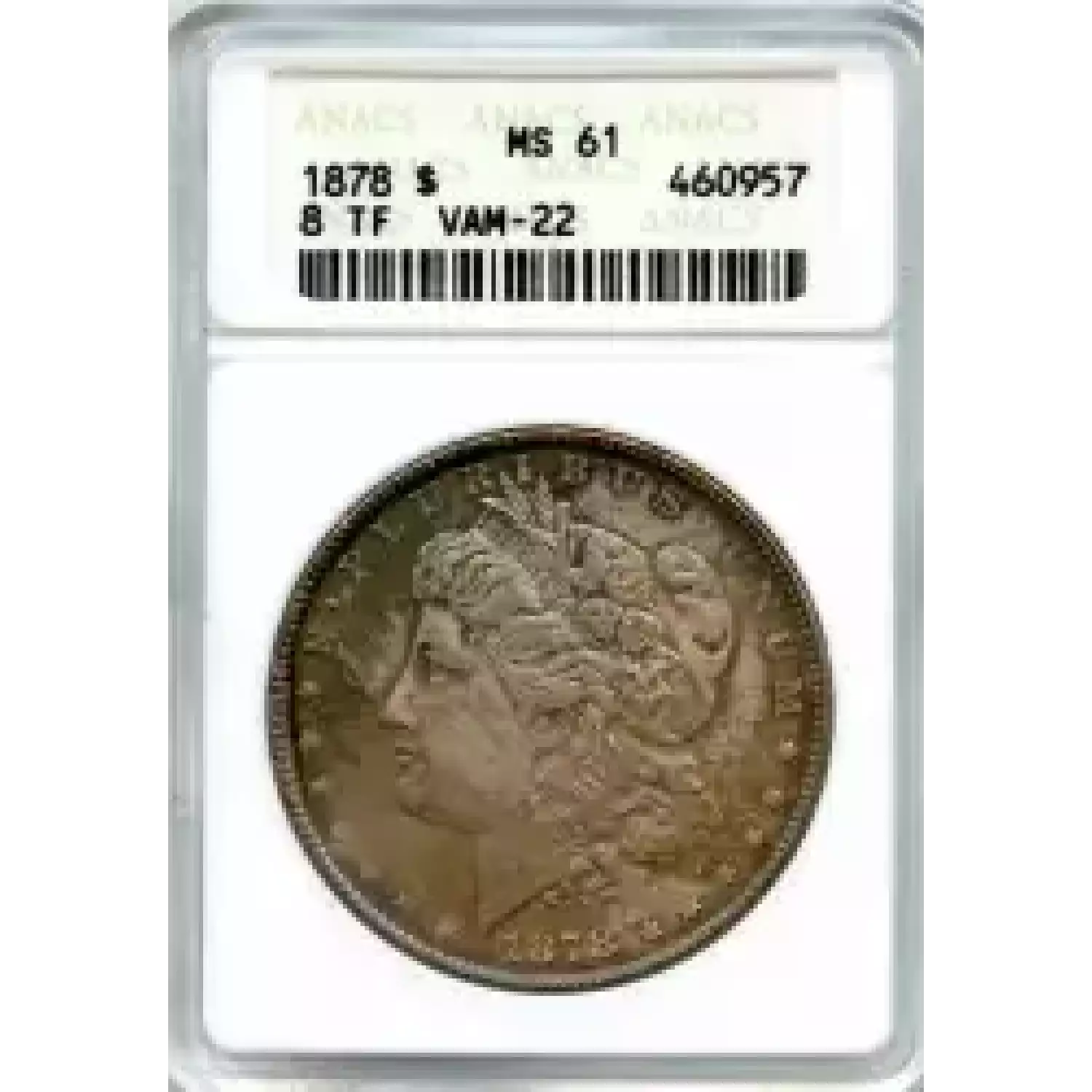506955 | 1878-AU-50 Morgan Silver Dollar ANACS AU-50 | ANACS | AU-50 | Sold: 08/10/2014 | $125 |