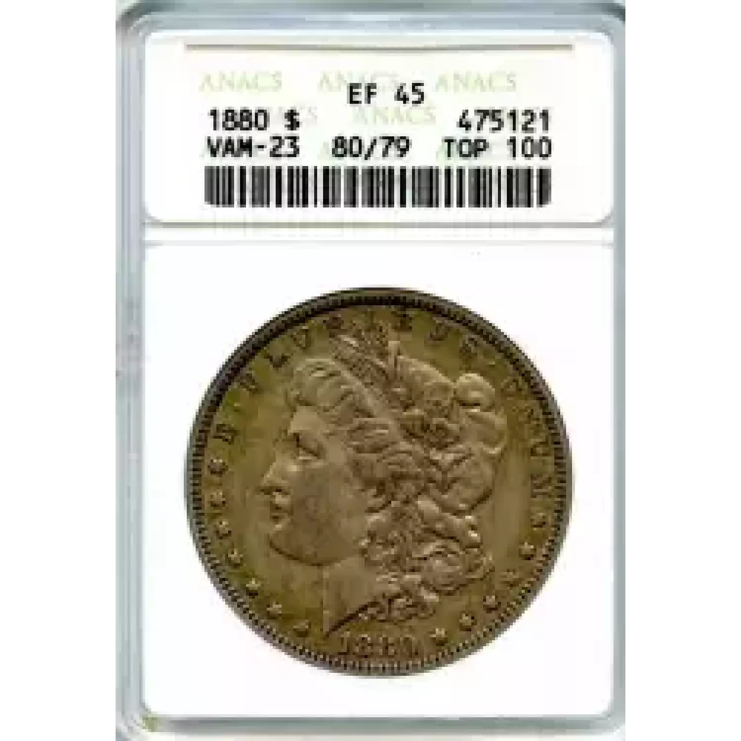 506293 | 1879-EF-45 Morgan Silver Dollar ANACS XF-45 | ANACS | XF-45 | Sold: 12/10/2013 | $57.07 |