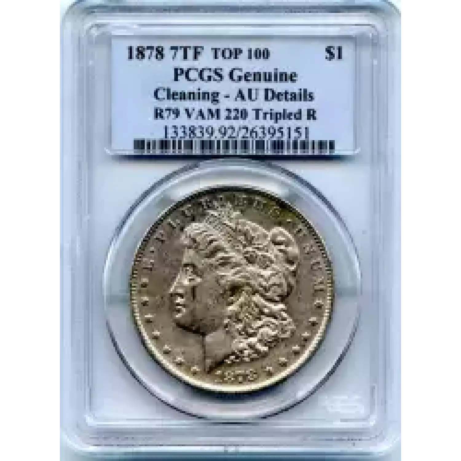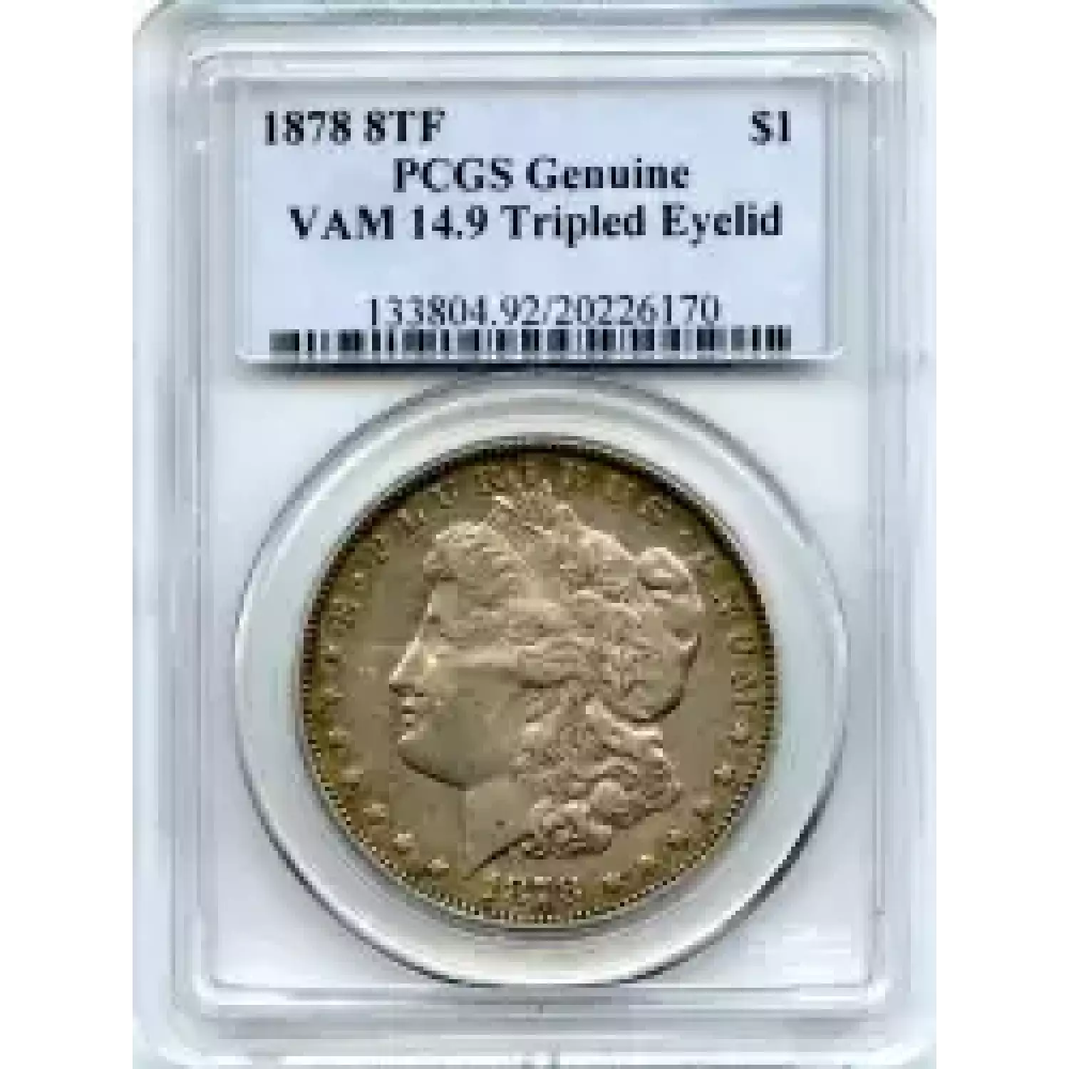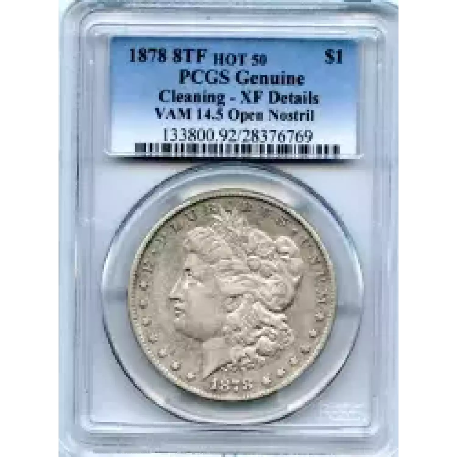 506946 | 1878-Genuine (92 - Cleaning) Morgan Silver Dollar PCGS Genuine (92 - Cleaning) | PCGS | Genuine (92 - Cleaning) | Sold: 29/09/2013 | $150 |