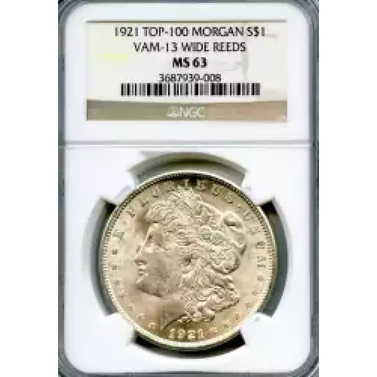 506854 | 1921-MS-63 Morgan Silver Dollar NGC MS-63 | NGC | MS-63 | Sold: 13/08/2014 | $175 |