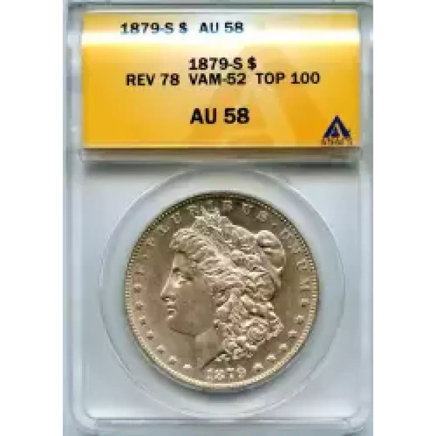 506912 | 1879-AU-58 Morgan Silver Dollar ANACS AU-58 | ANACS | AU-58 | Sold: 07/10/2013 | $73 |