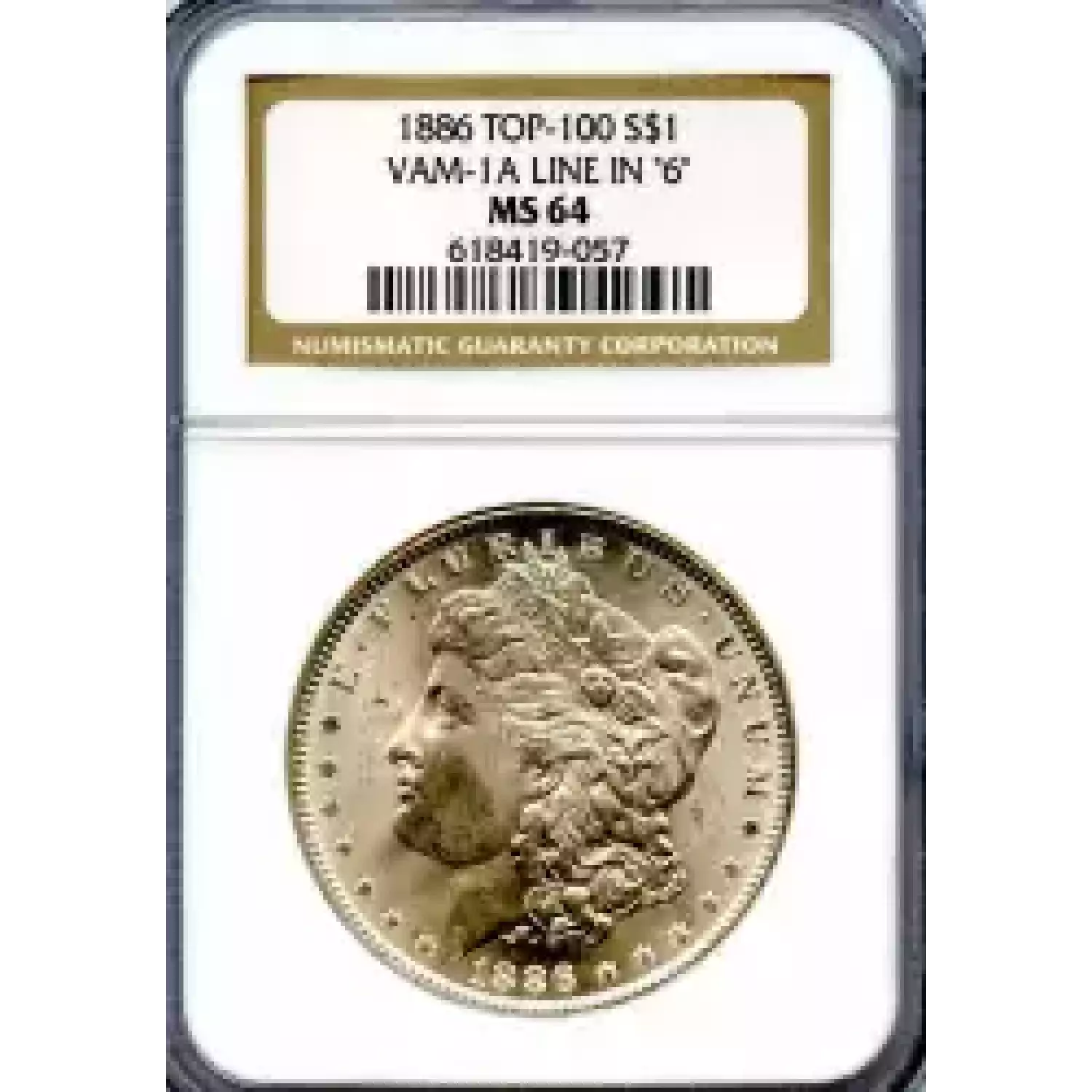 507010 | 1886-MS-64 Morgan Silver Dollar PCGS MS-64 | PCGS | MS-64 | Sold: 20/09/2013 | $70 |