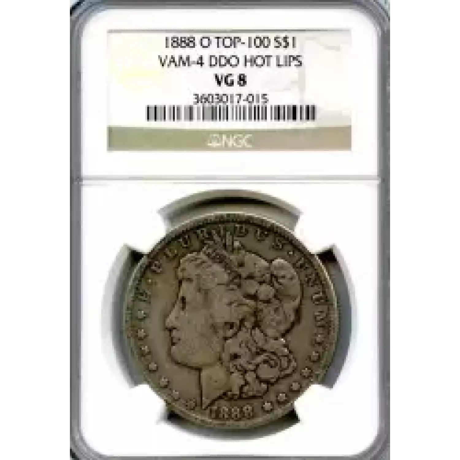 507022 | 1888-VG-8 Morgan Silver Dollar NGC VG-8 | NGC | VG-8 | Sold: 23/01/2014 | $90 |
