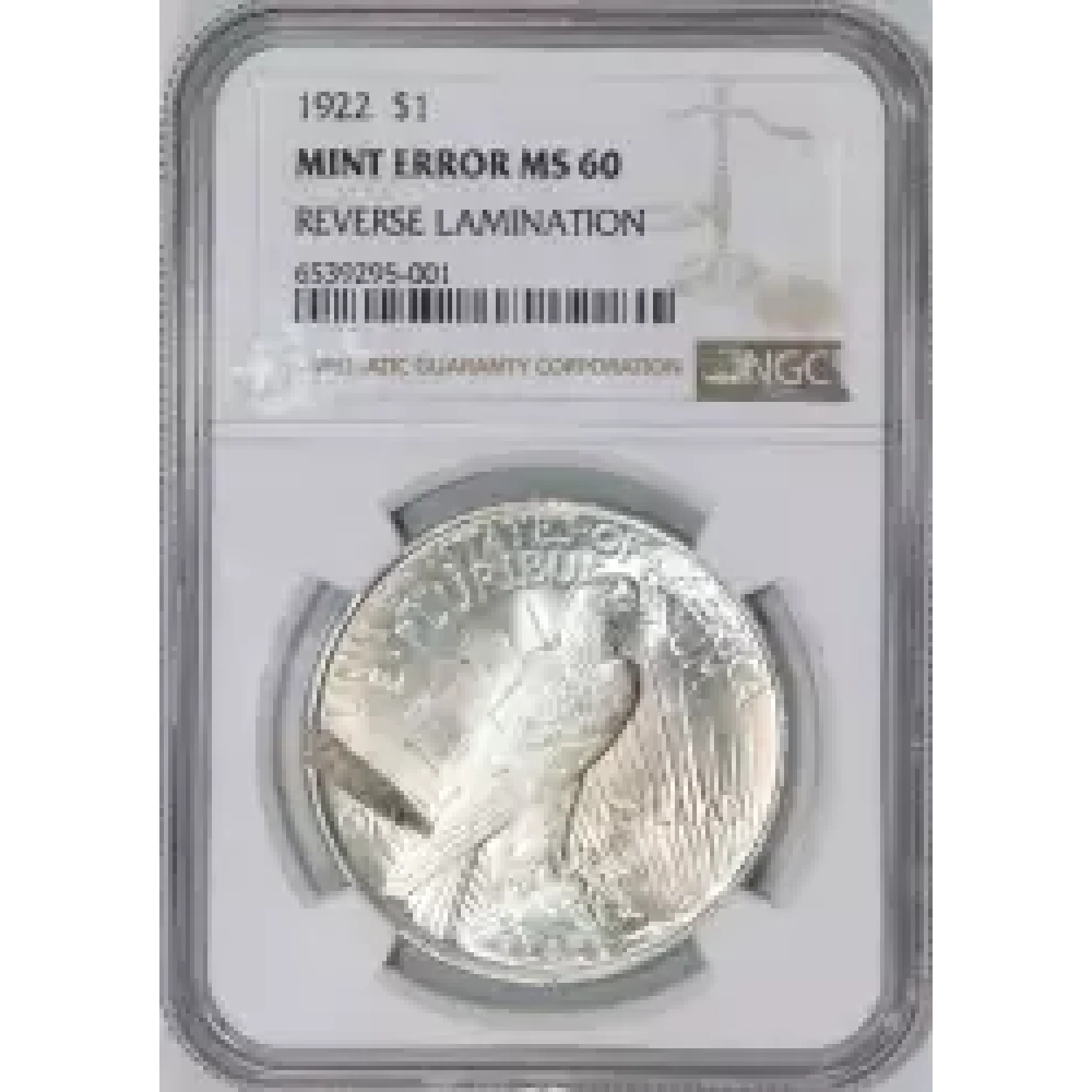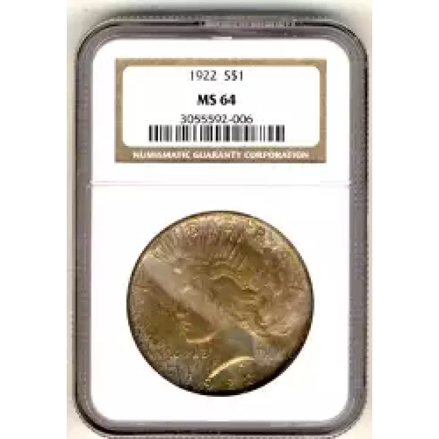 500725 | 1922 Peace Silver Dollar NGC MS-60 | NGC | MS-60 | Sold: 01/06/2022 | $150 |