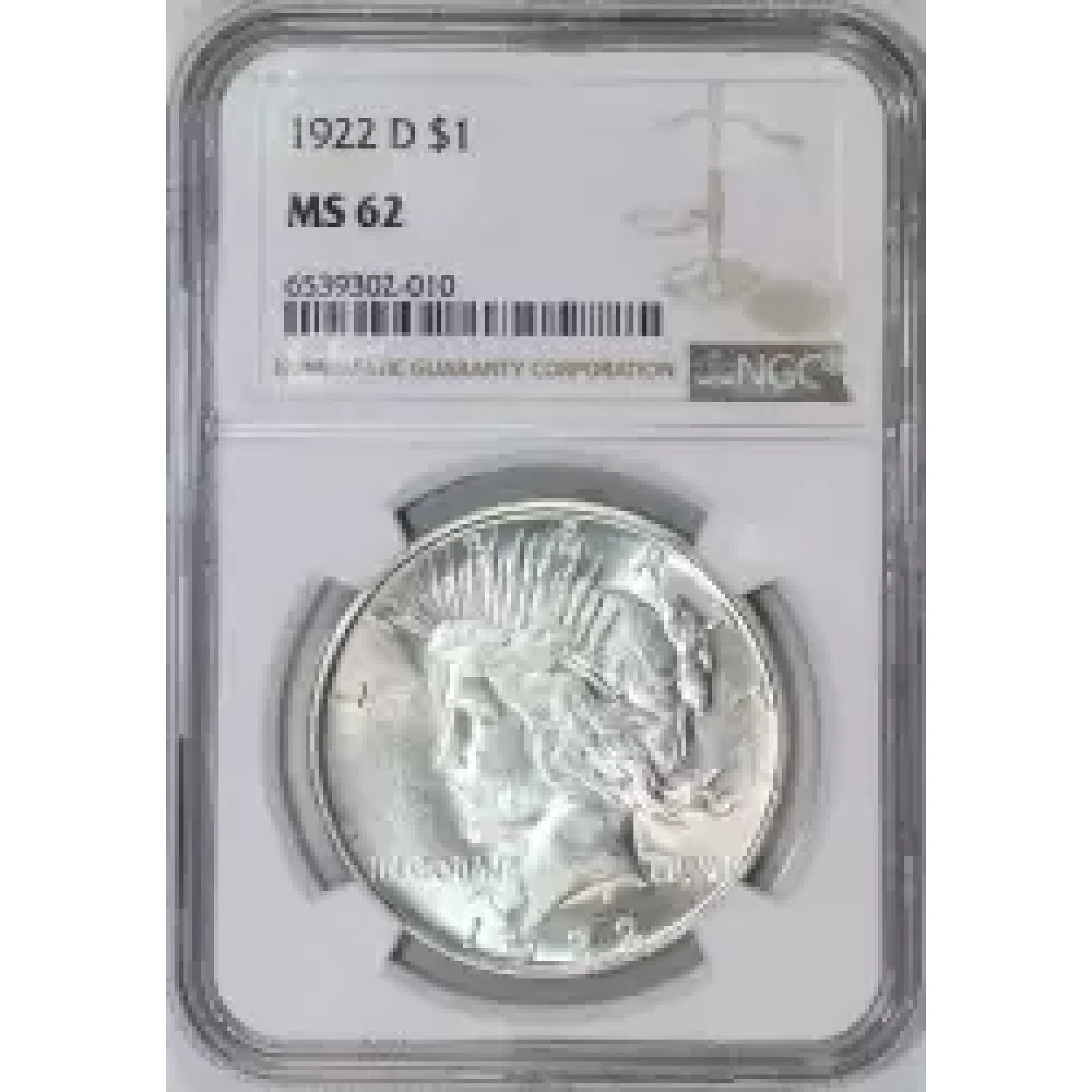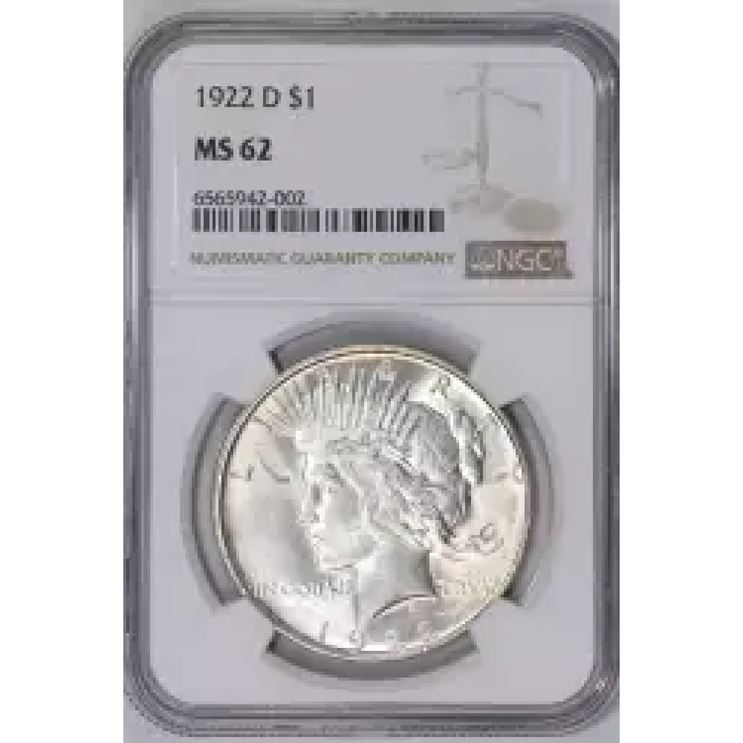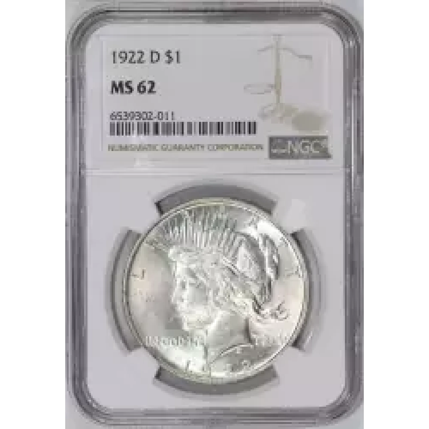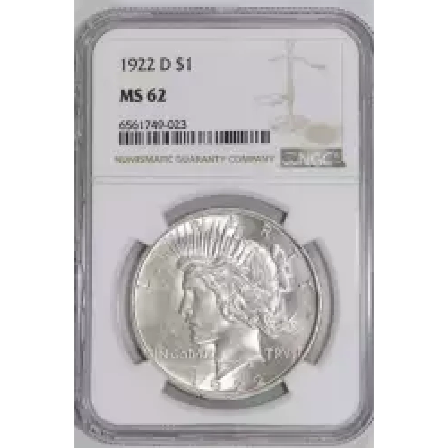 500729 | 1922-D Peace Silver Dollar NGC MS-62 | NGC | MS-62 | Sold: 01/03/2022 | $100 |