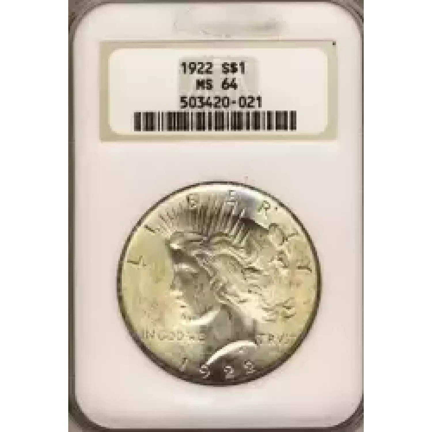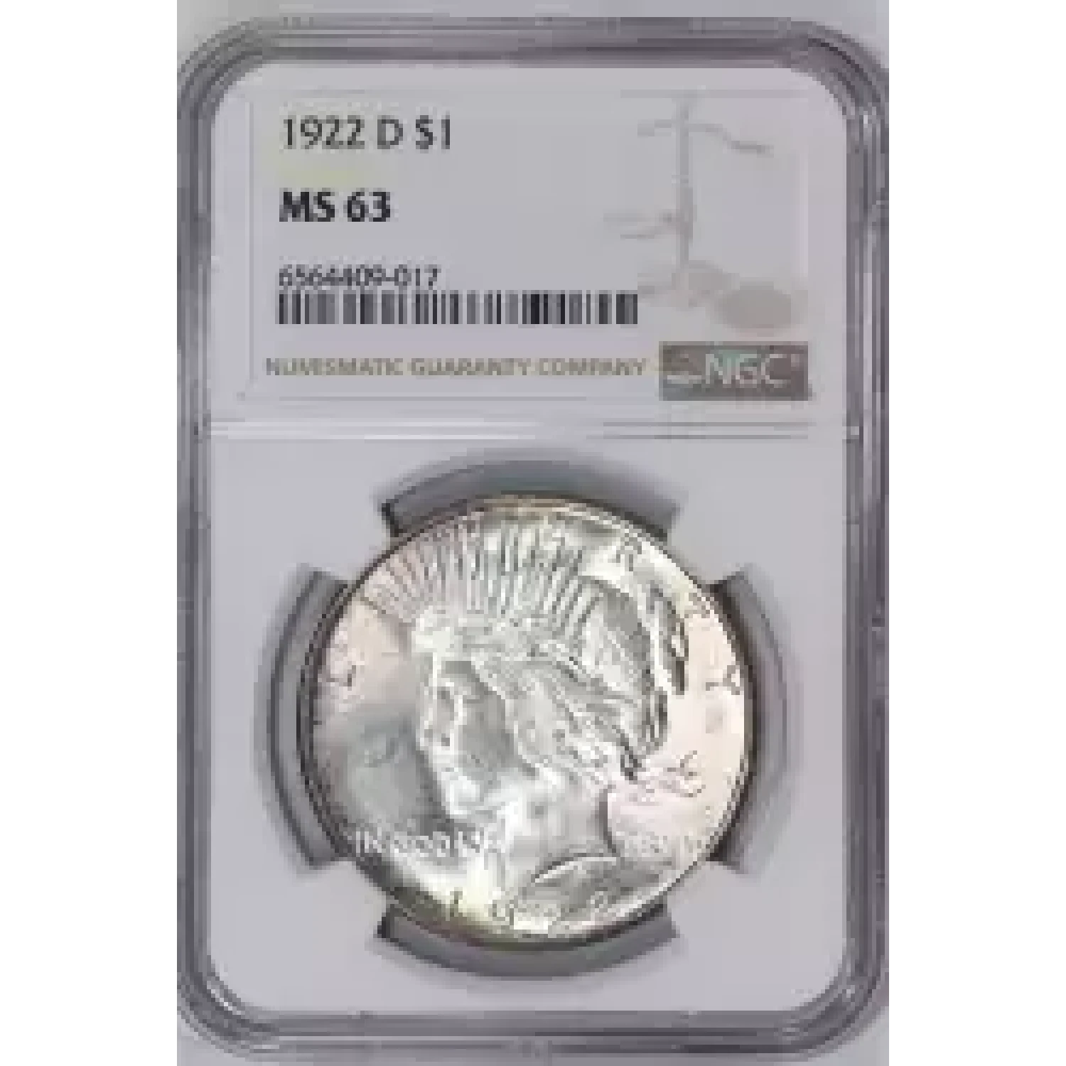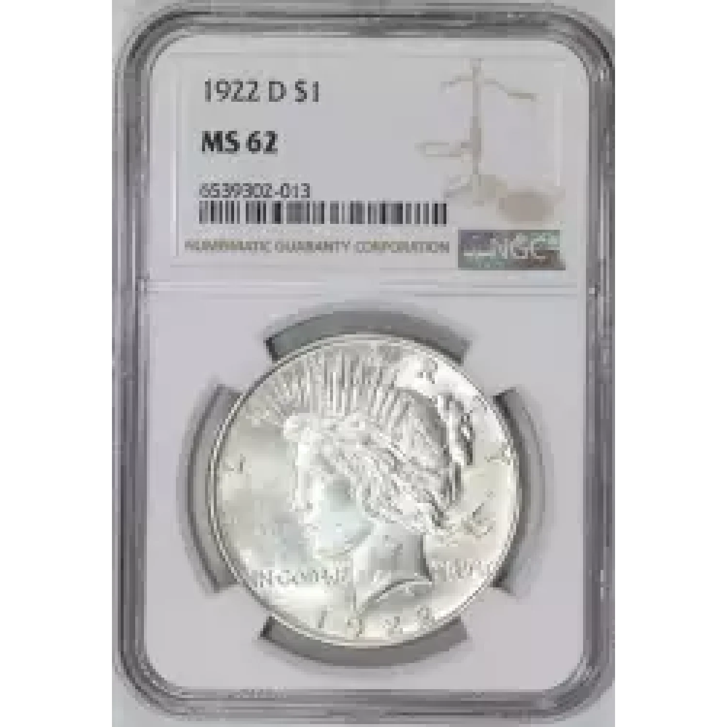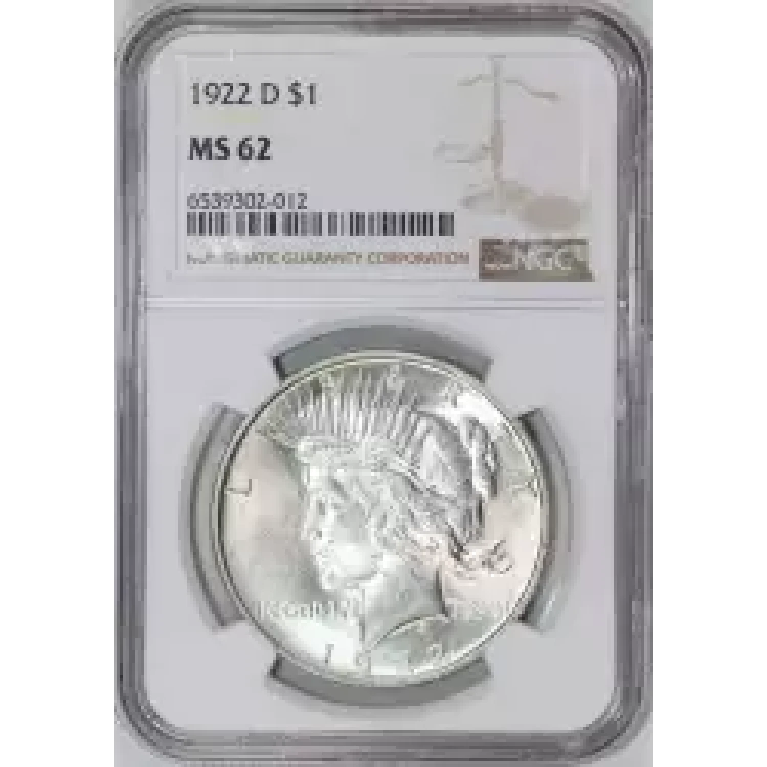 500729 | 1922-D Peace Silver Dollar NGC MS-62 | NGC | MS-62 | Sold: 01/03/2022 | $100 |