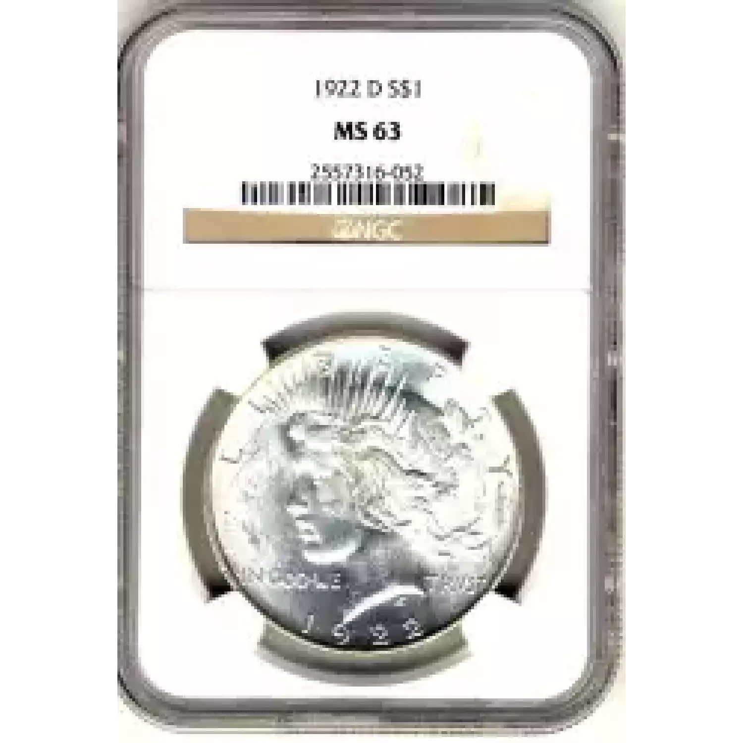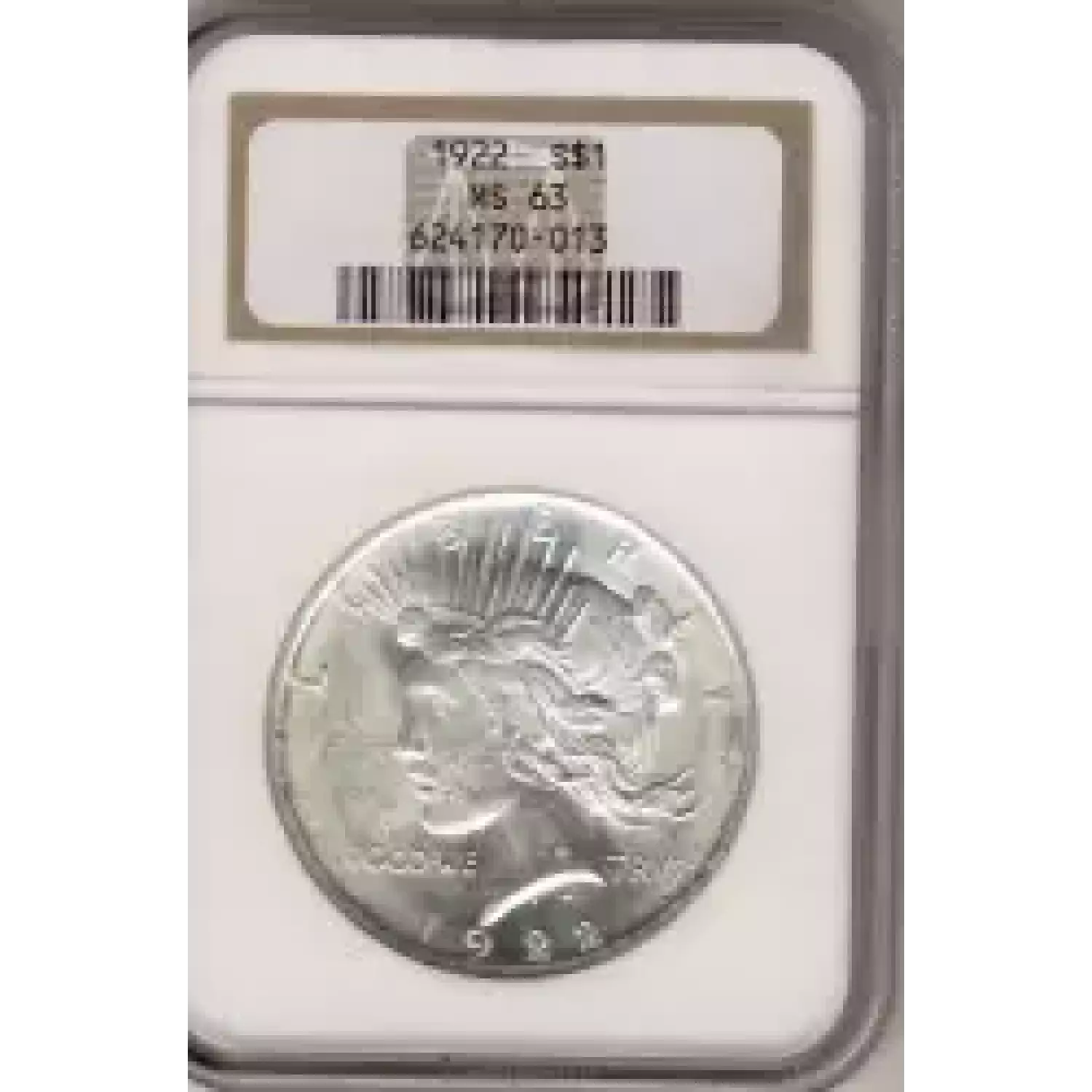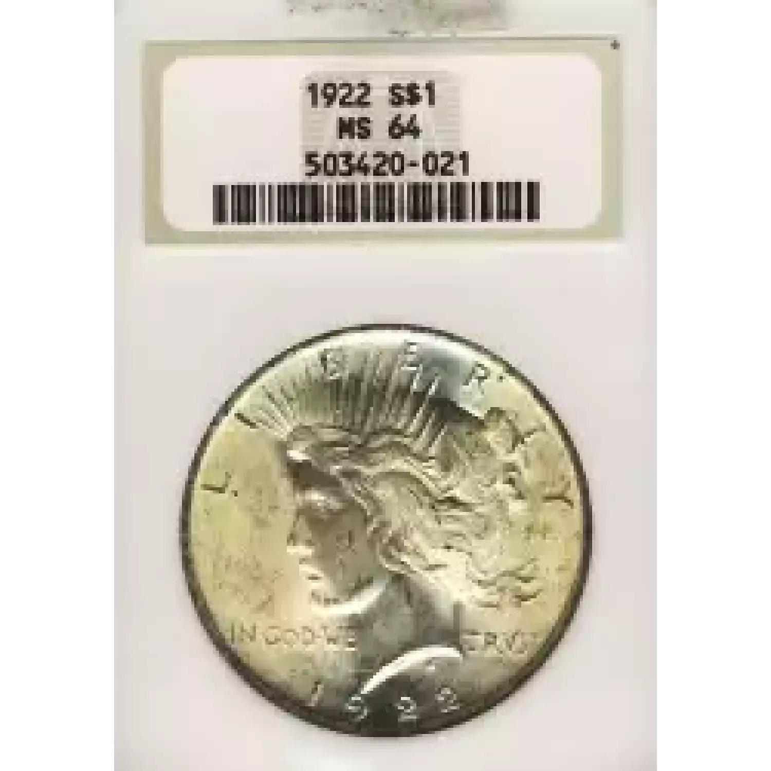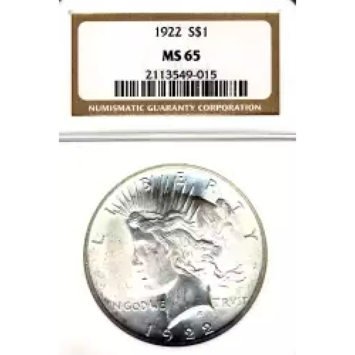 500729 | 1922-D Peace Silver Dollar NGC MS-62 | NGC | MS-62 | Sold: 01/03/2022 | $100 |