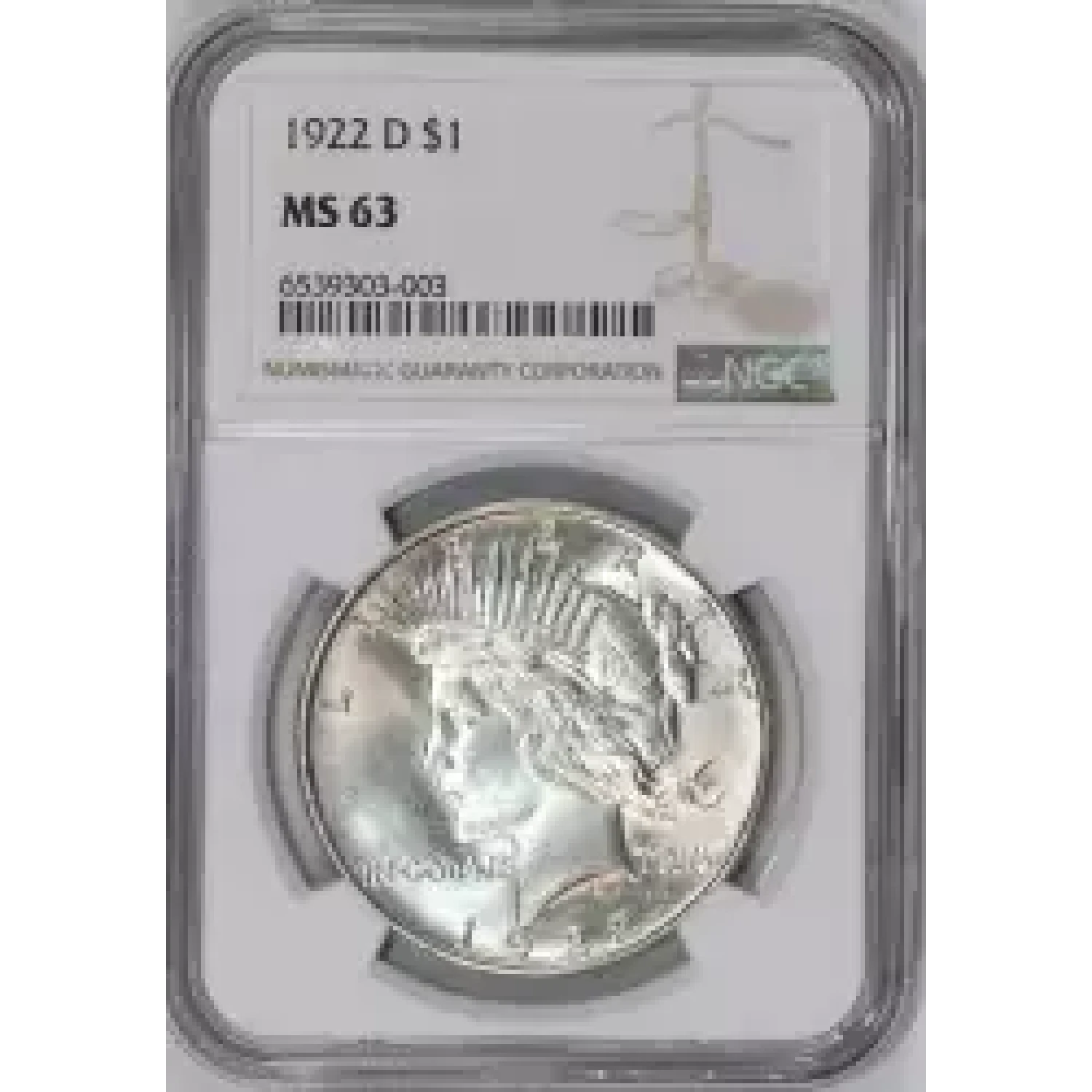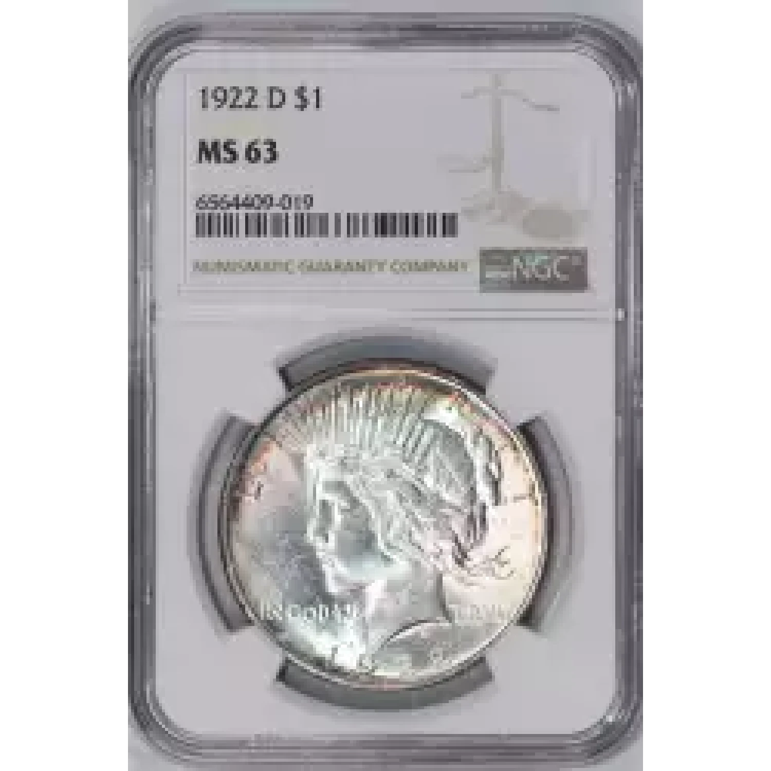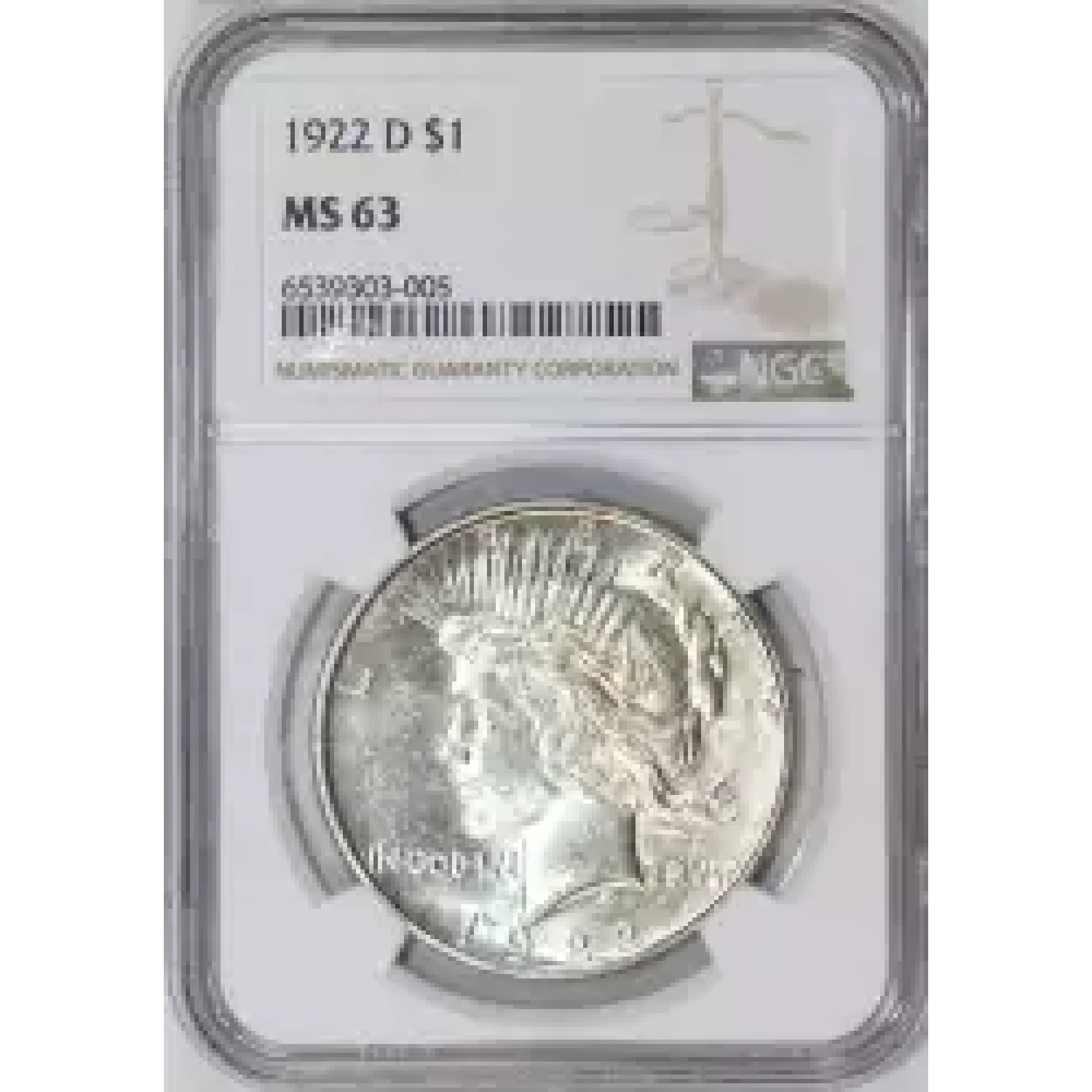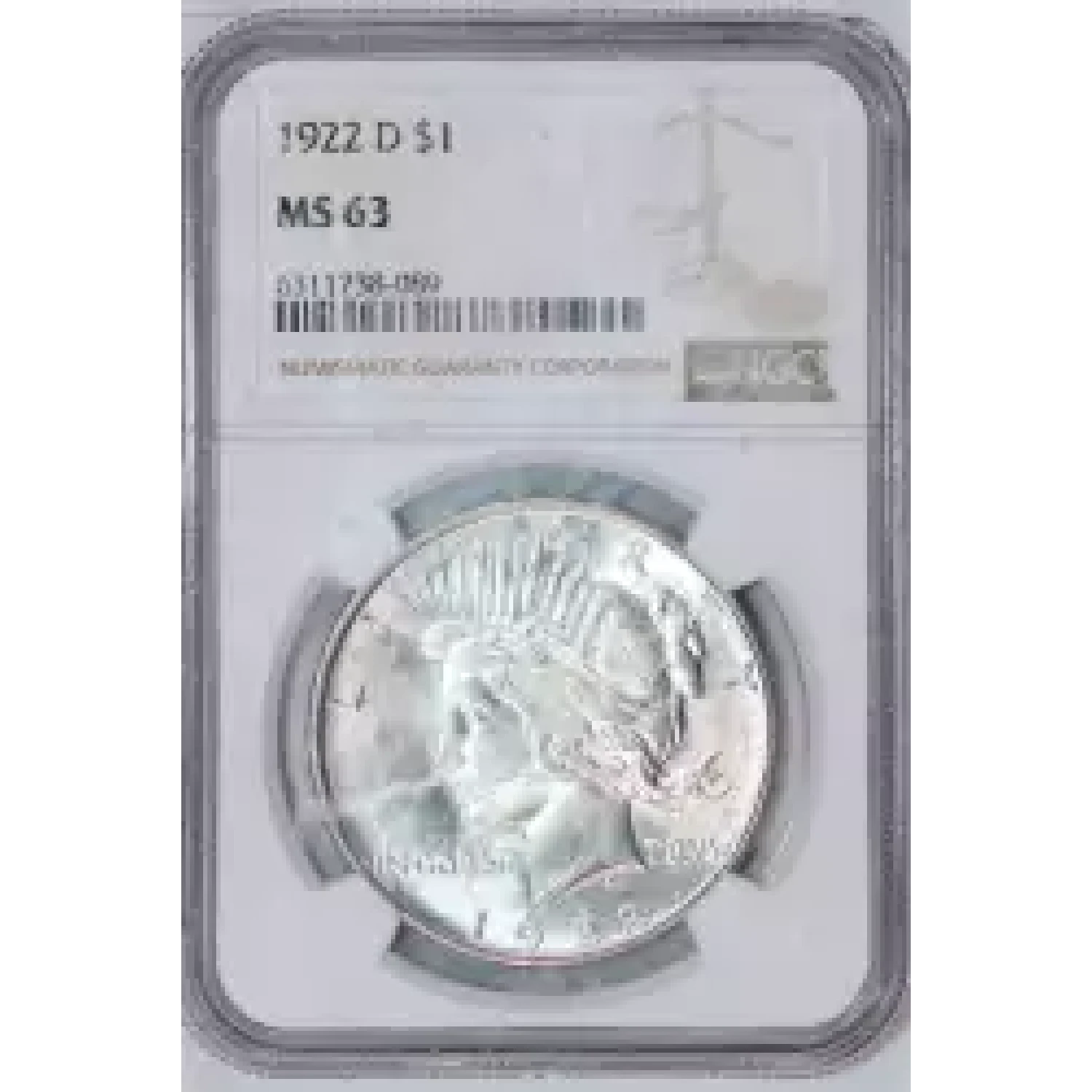 500729 | 1922-D Peace Silver Dollar NGC MS-62 | NGC | MS-62 | Sold: 01/03/2022 | $100 |