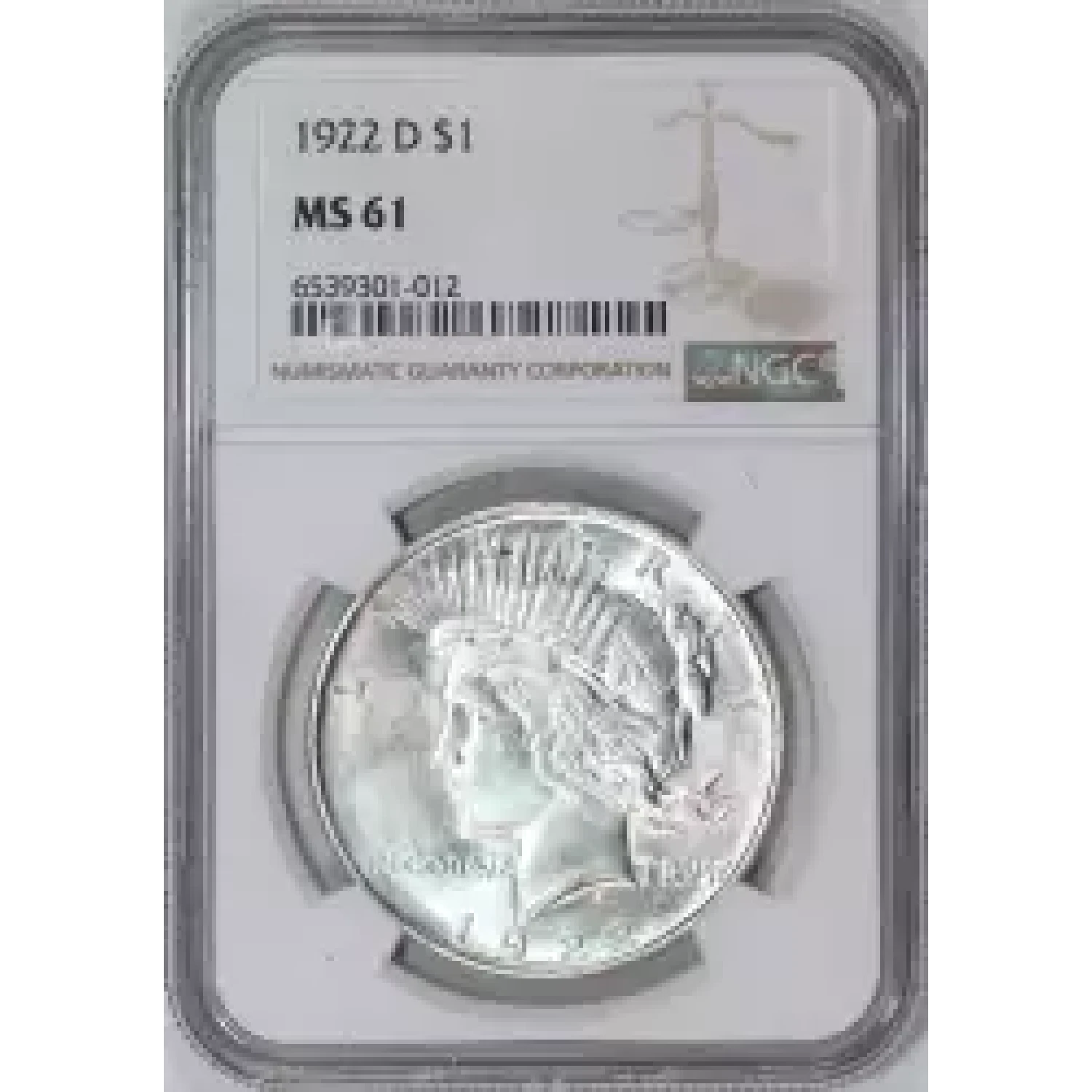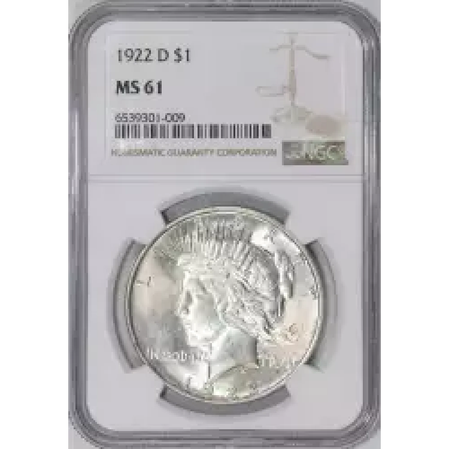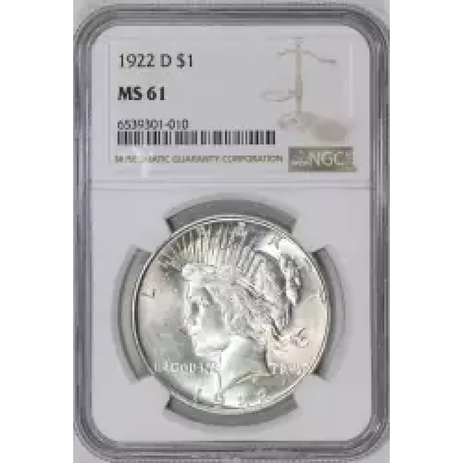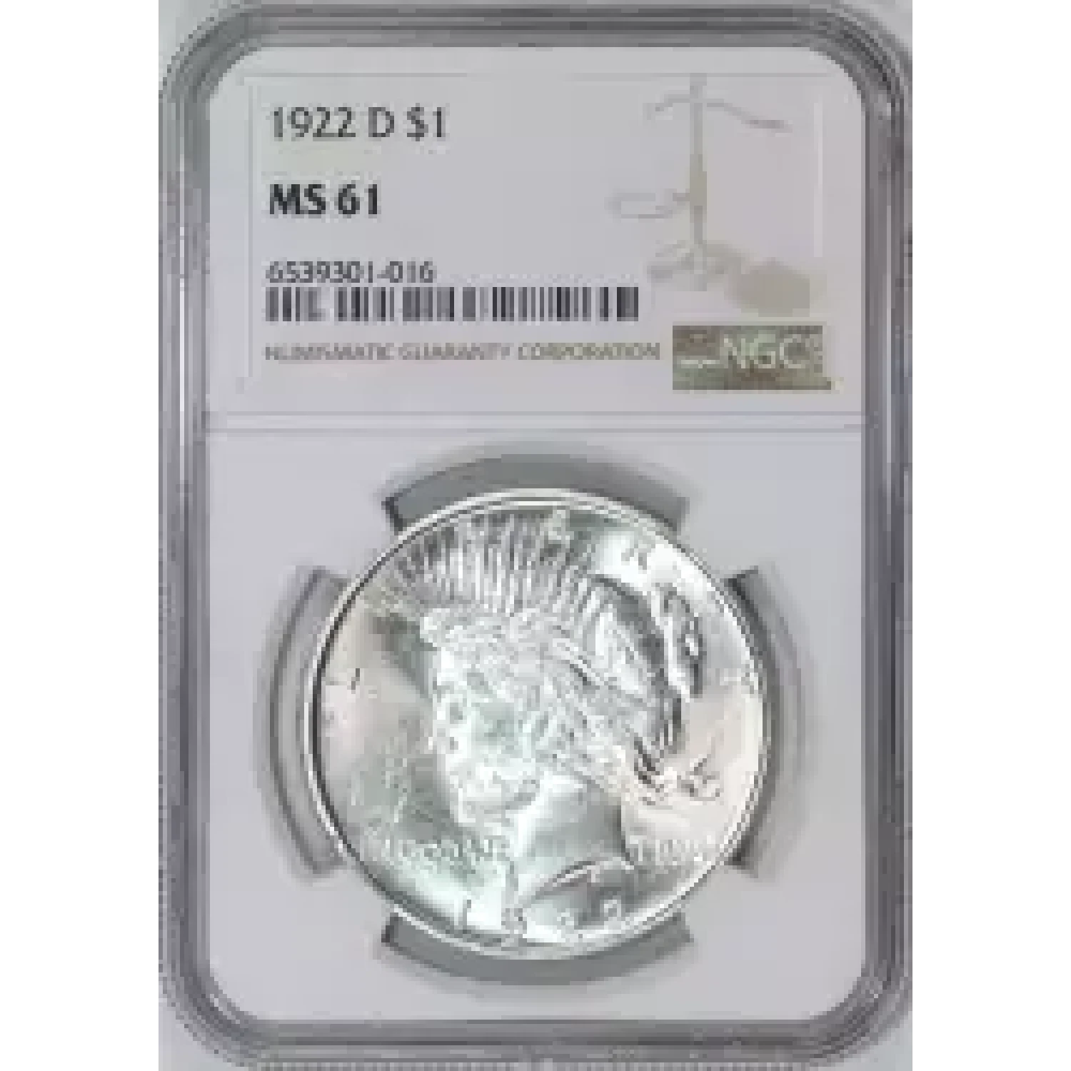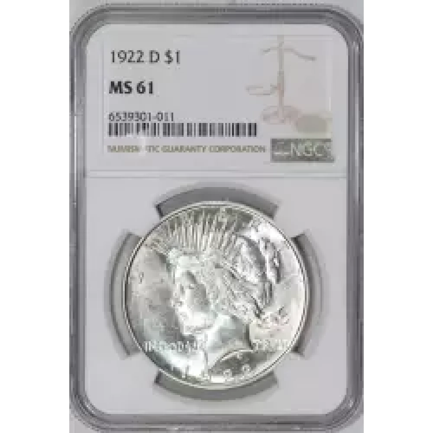 500736 | 1922-D Peace Silver Dollar NGC MS-61 | NGC | MS-61 | Sold: 28/02/2022 | $85 |