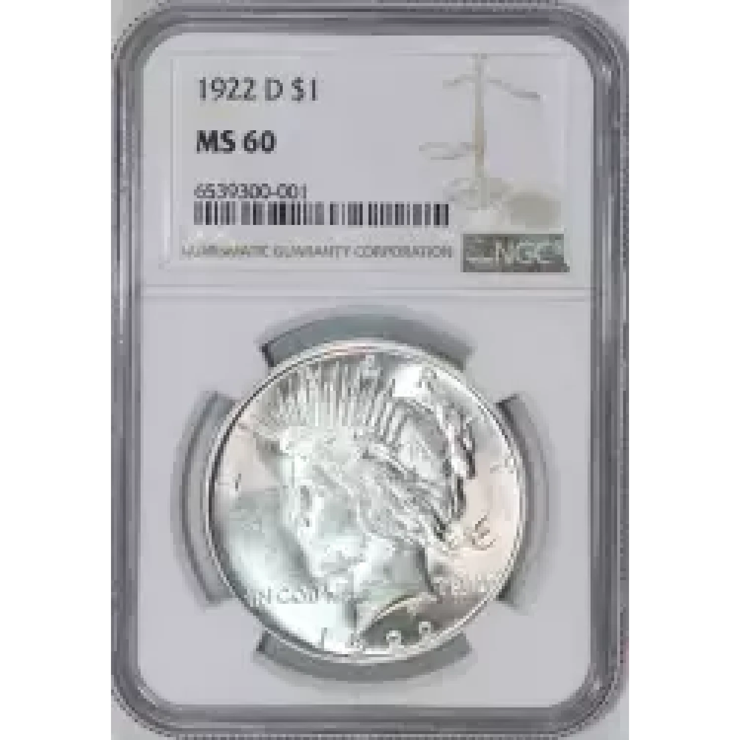 500739 | 1922-D Peace Silver Dollar NGC MS-60 | NGC | MS-60 | Sold: 26/10/2023 | $80 |