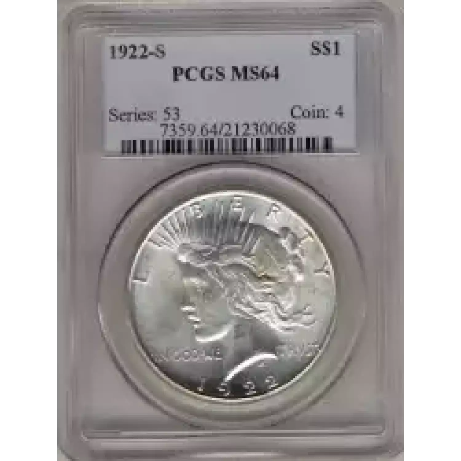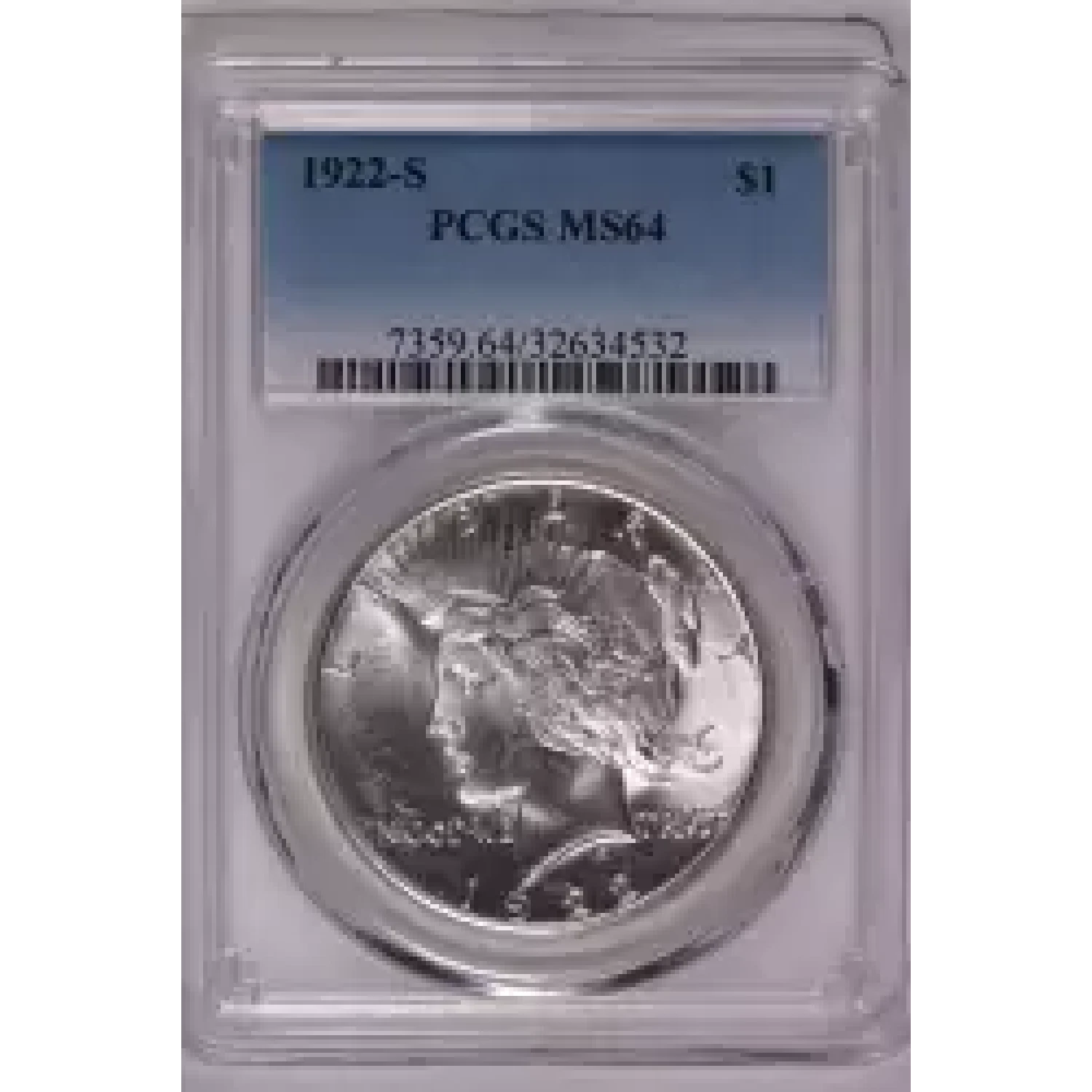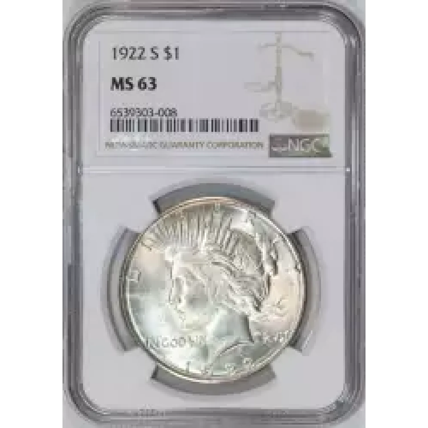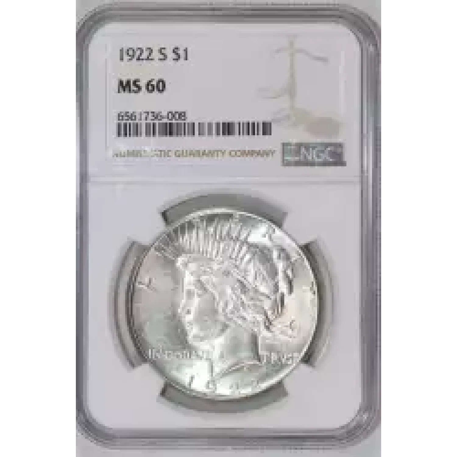 500743 | 1922-S Peace Silver Dollar NGC MS-62 | NGC | MS-62 | Sold: 01/03/2022 | $90 |