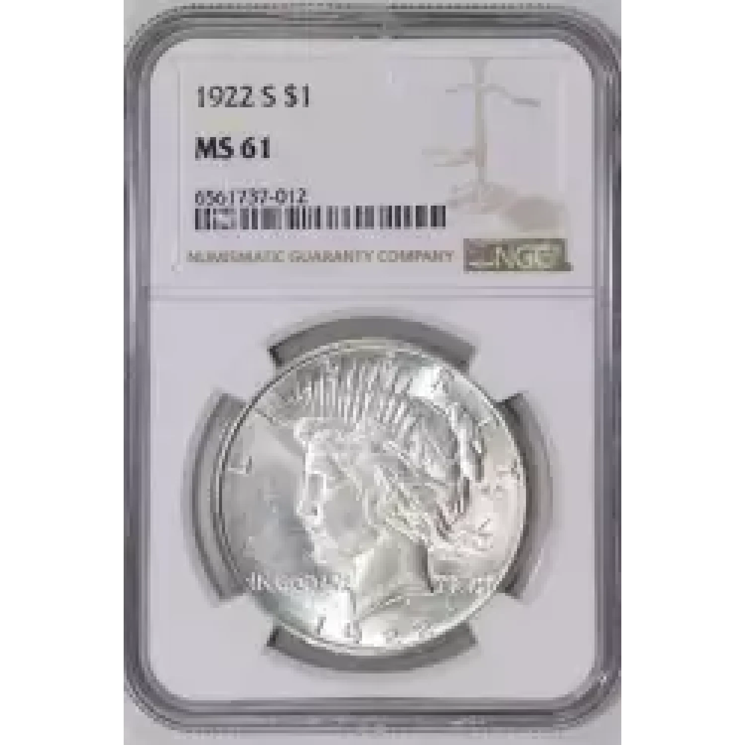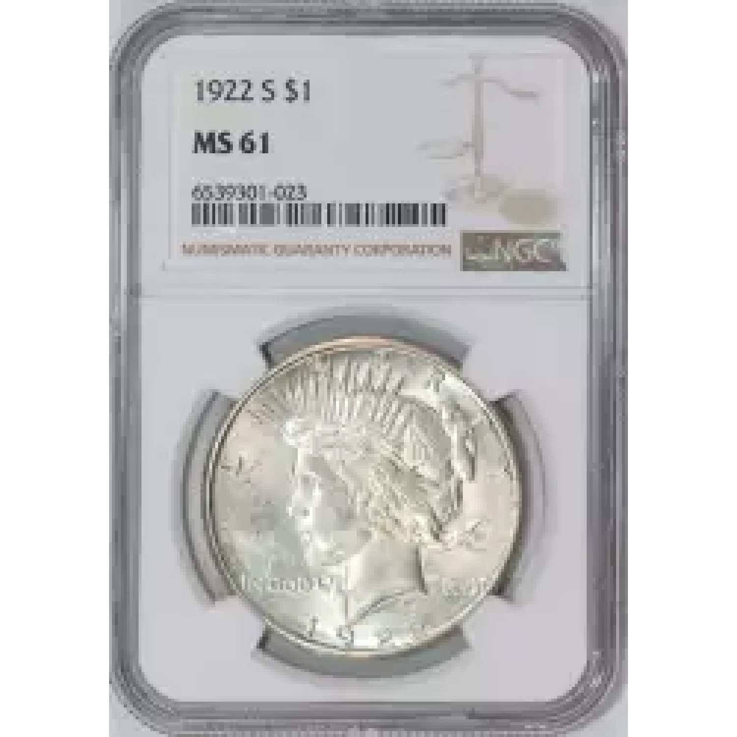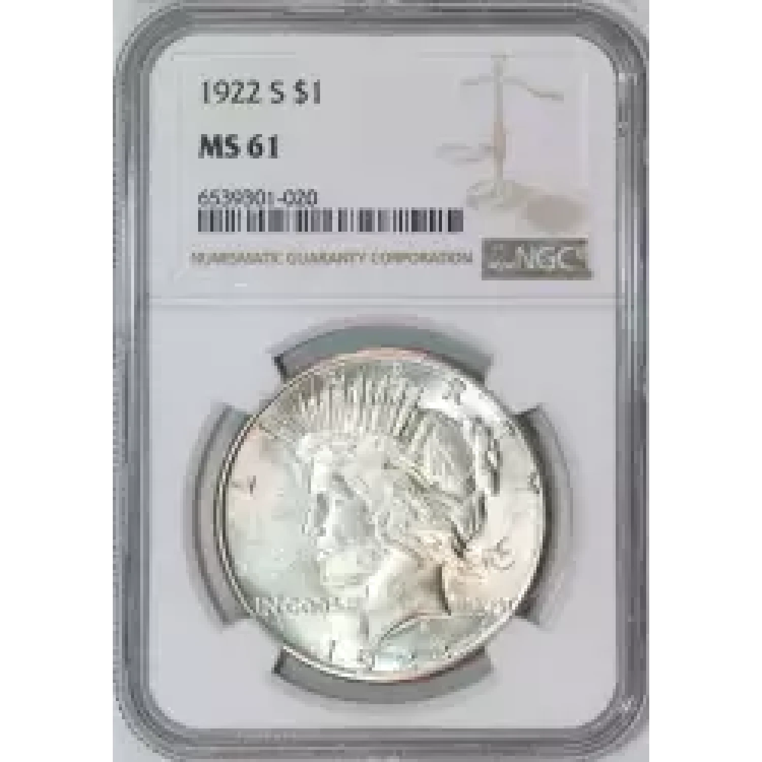500747 | 1922-S Peace Silver Dollar NGC MS-61 | NGC | MS-61 | Sold: 01/03/2022 | $80 |