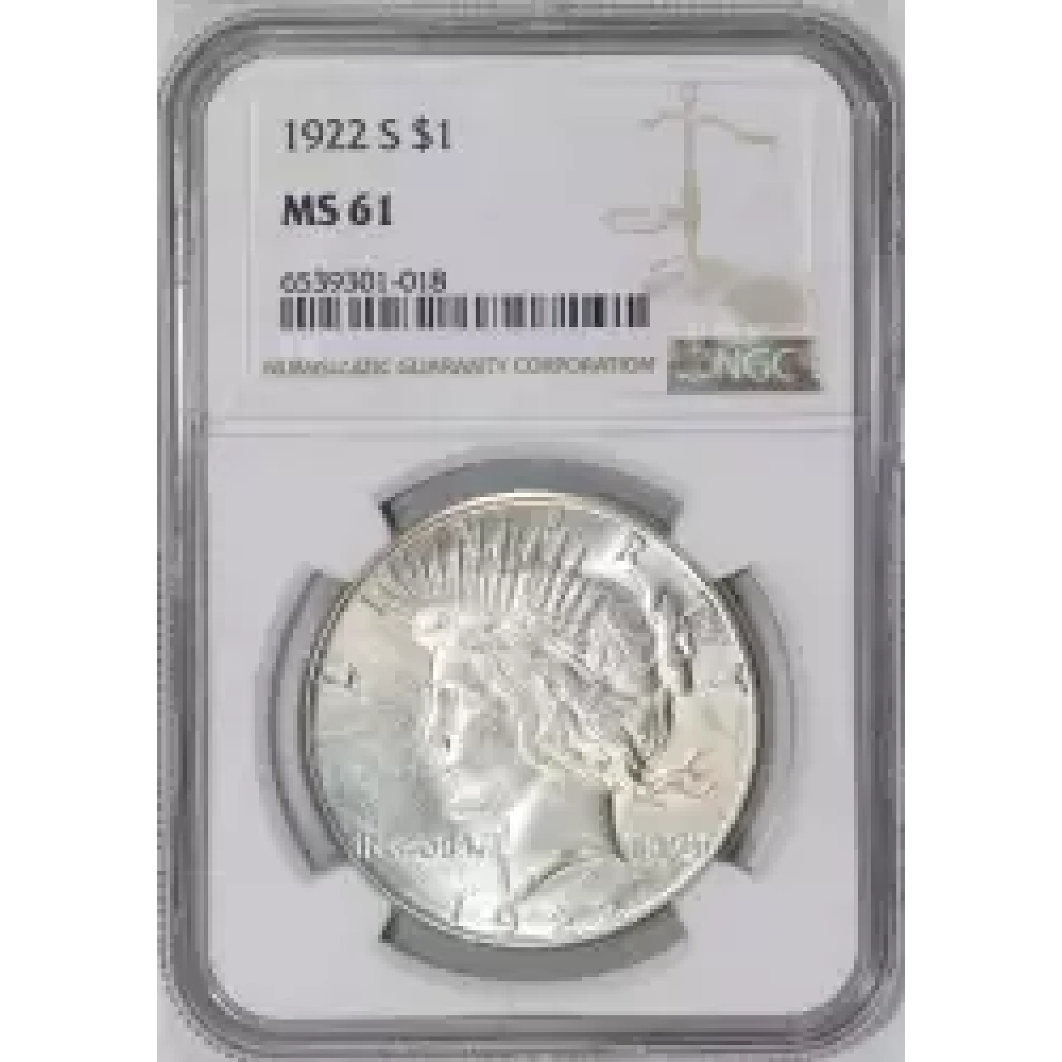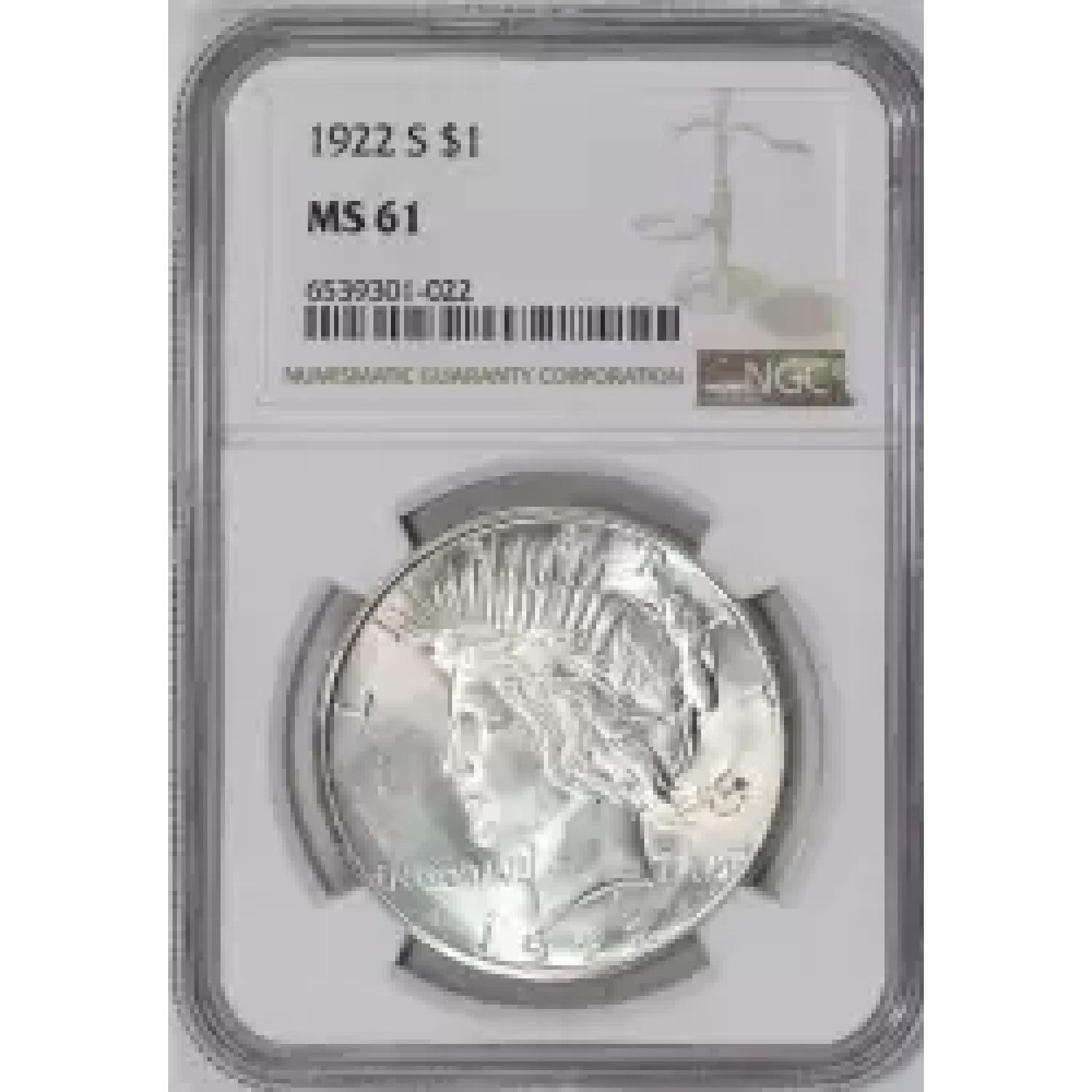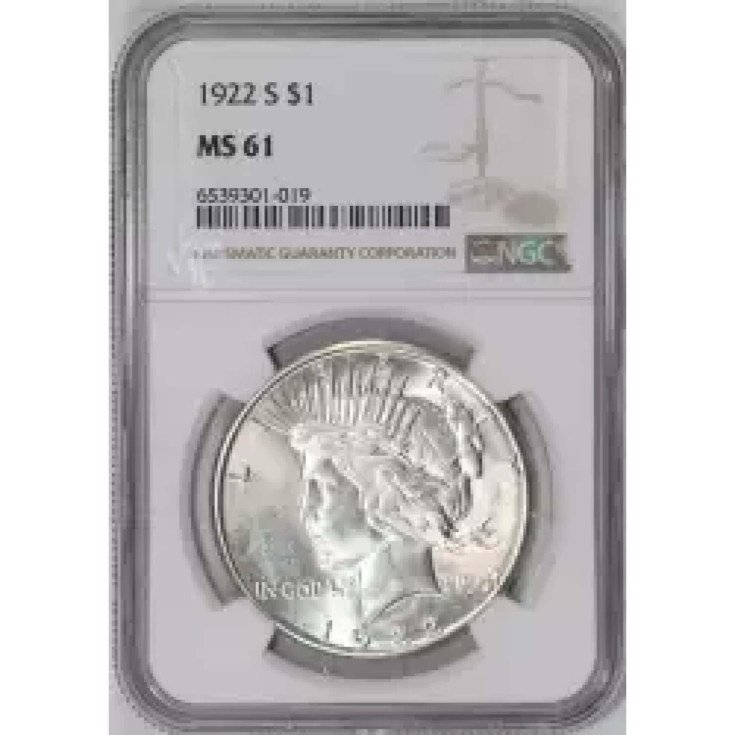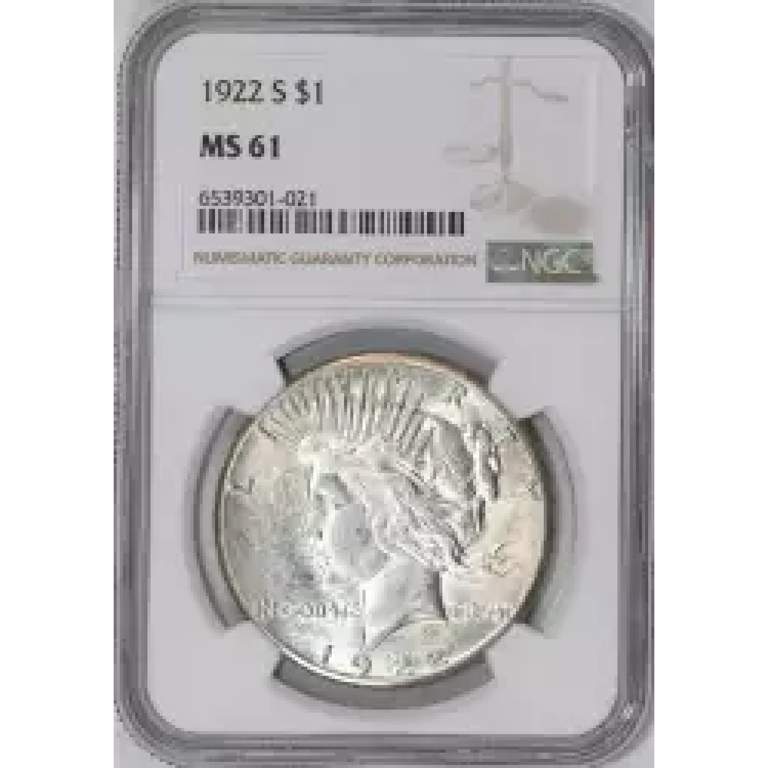 500747 | 1922-S Peace Silver Dollar NGC MS-61 | NGC | MS-61 | Sold: 01/03/2022 | $80 |
