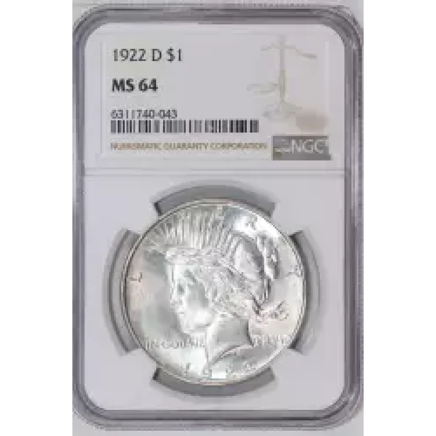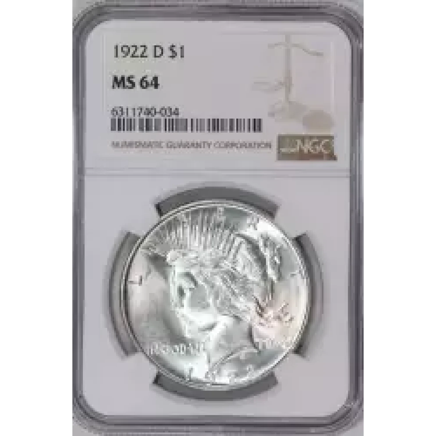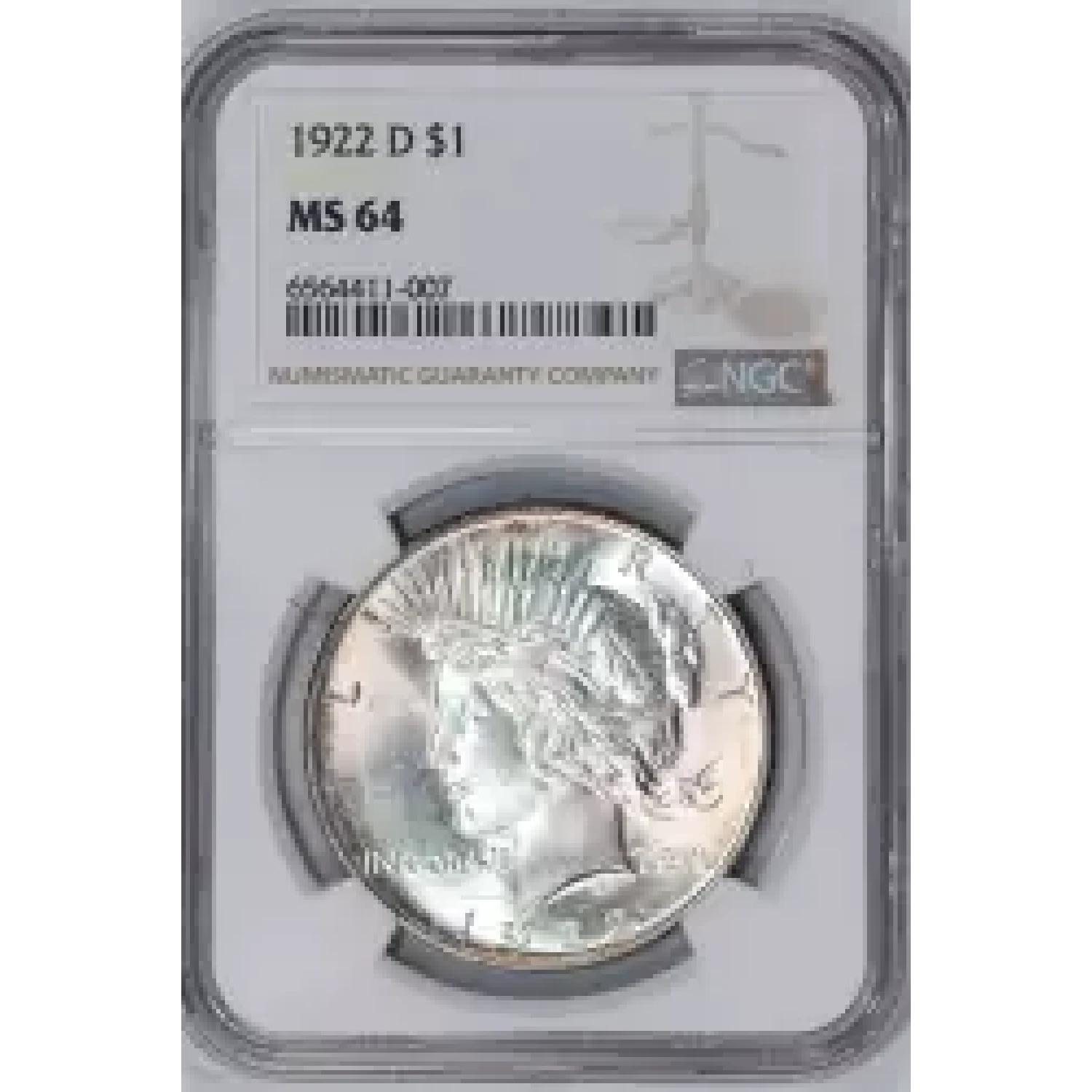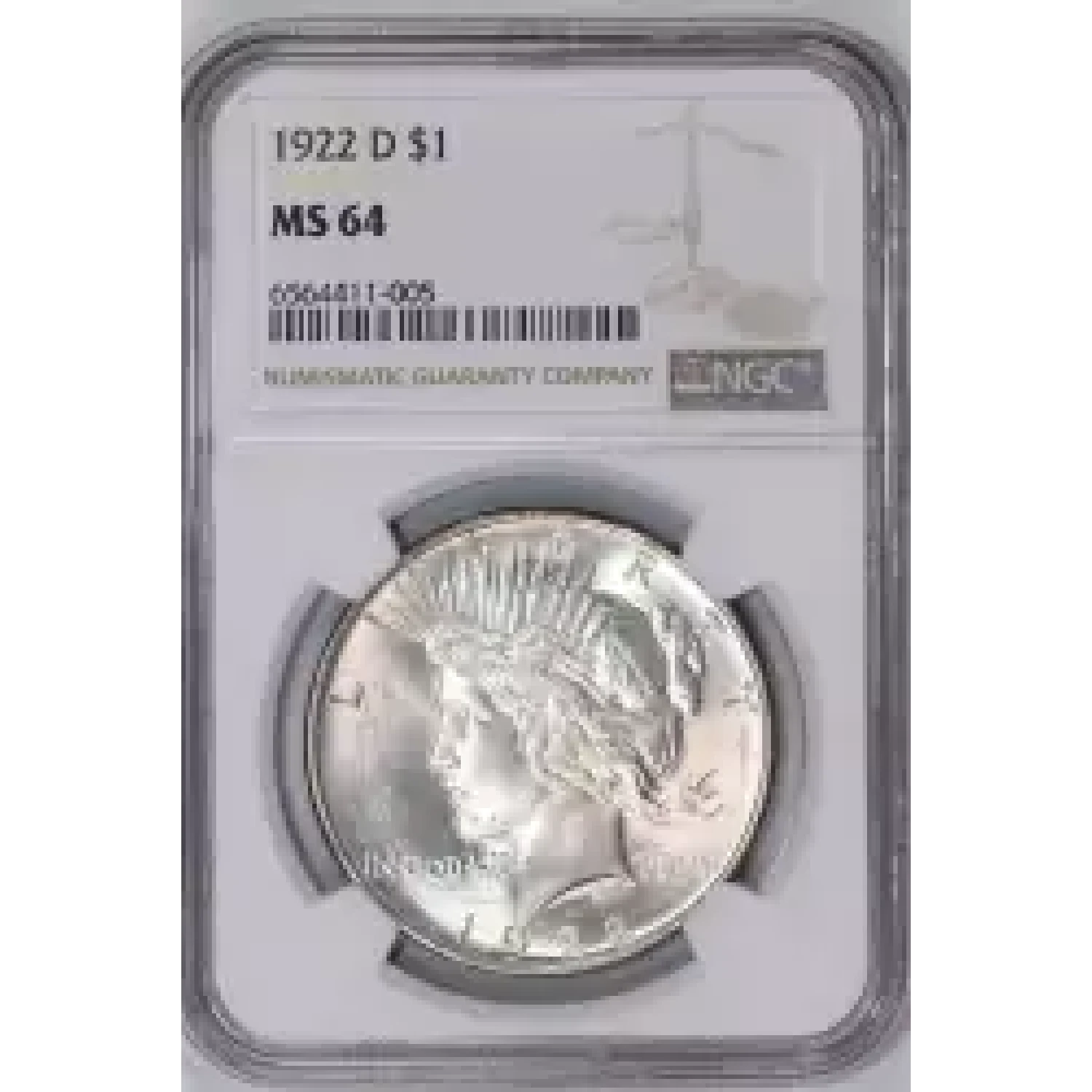 500905 | 1922-D Peace Silver Dollar NGC MS-64 | NGC | MS-64 | Sold: 15/03/2022 | $205 |