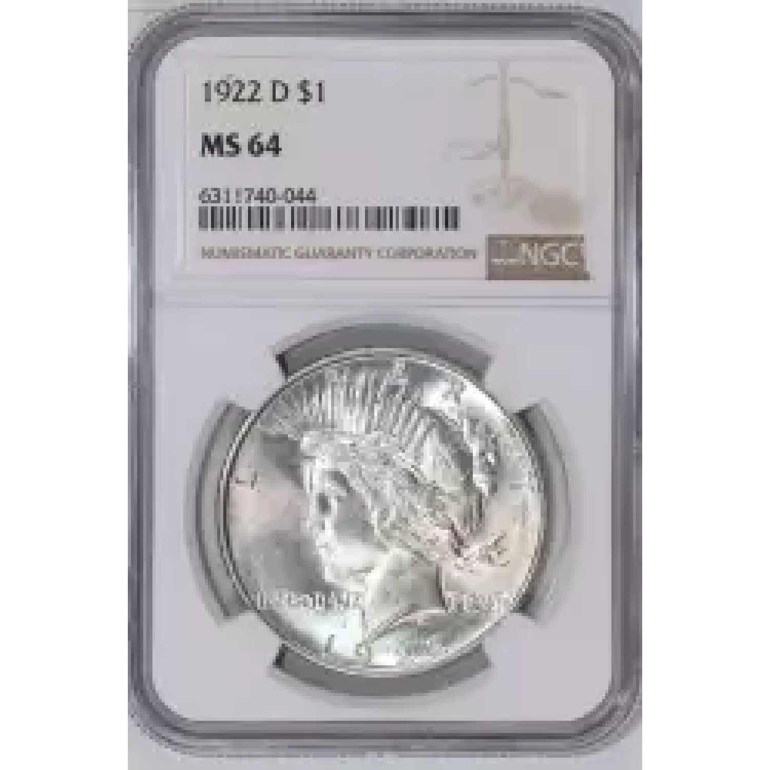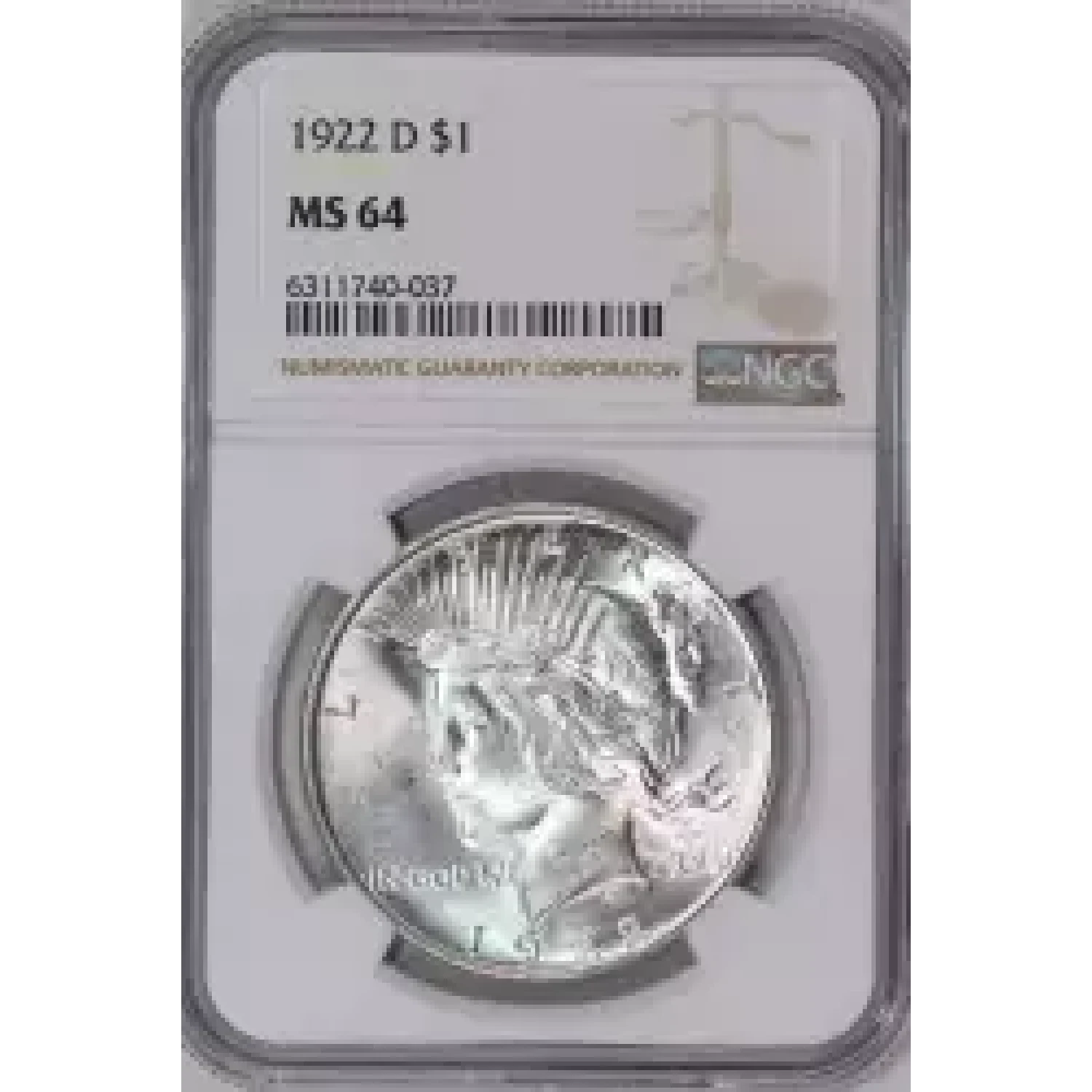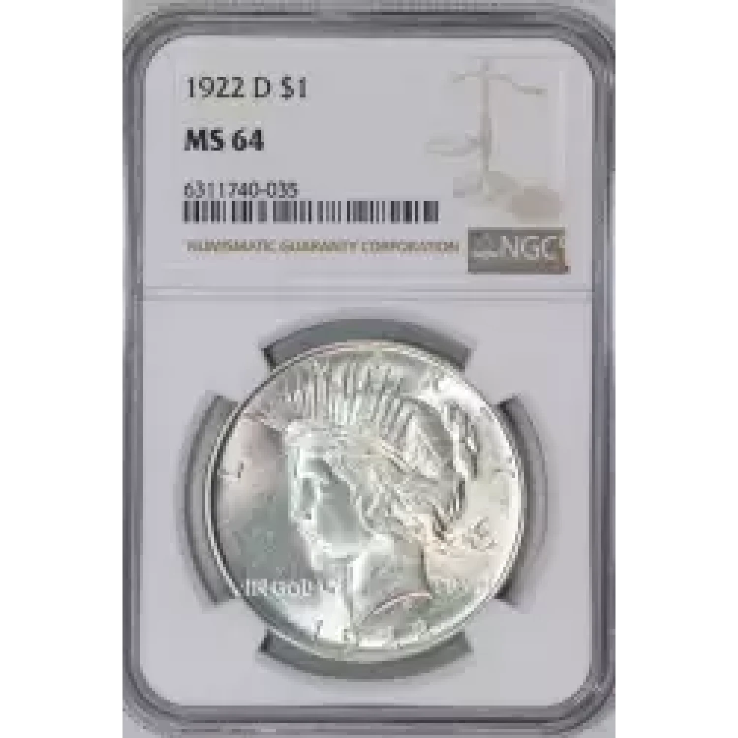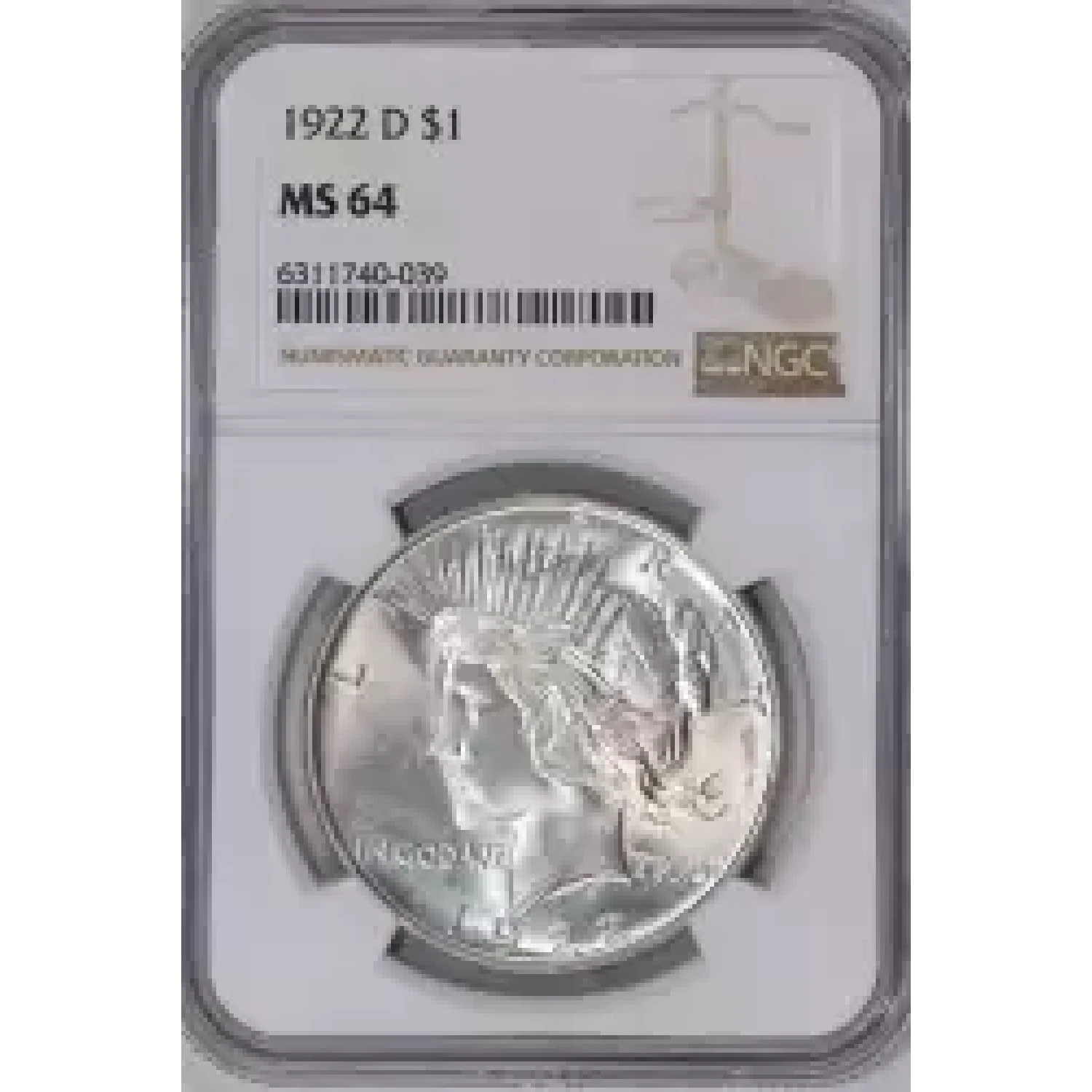 500905 | 1922-D Peace Silver Dollar NGC MS-64 | NGC | MS-64 | Sold: 15/03/2022 | $205 |