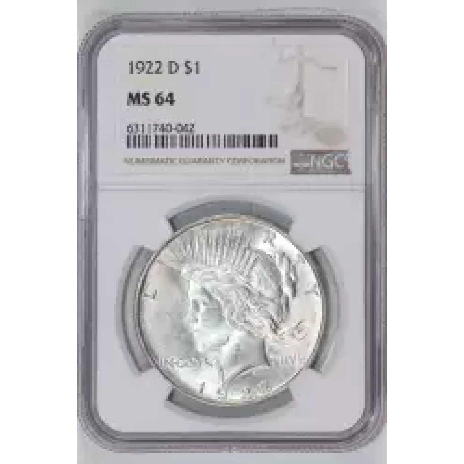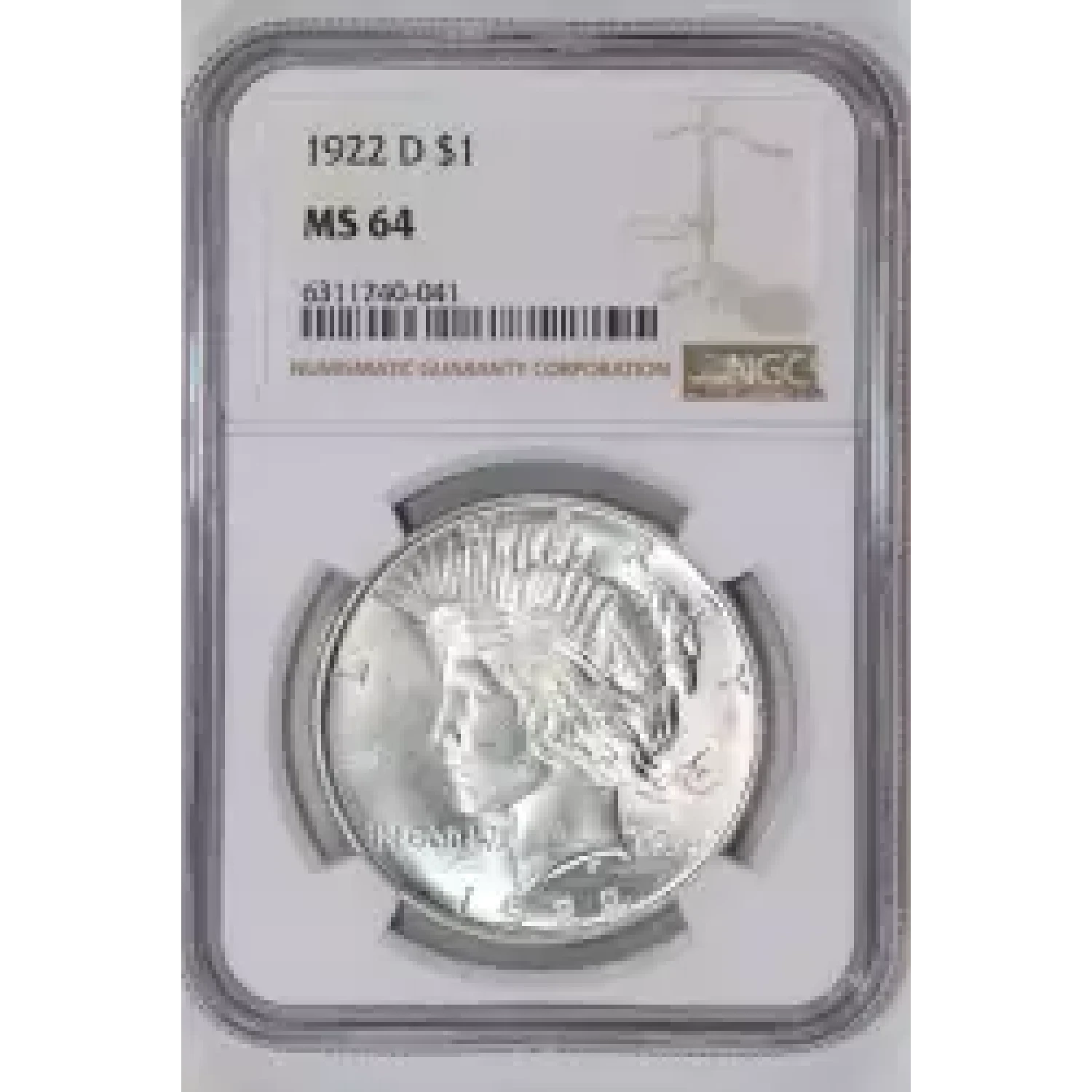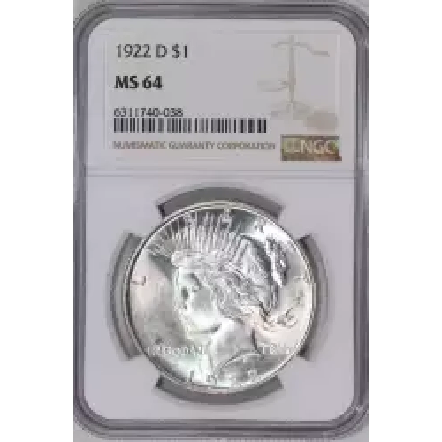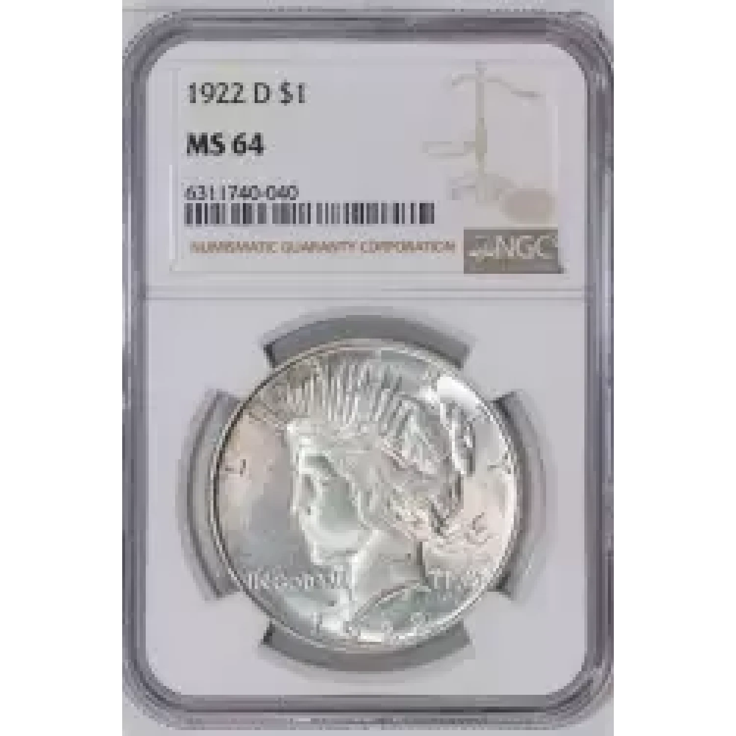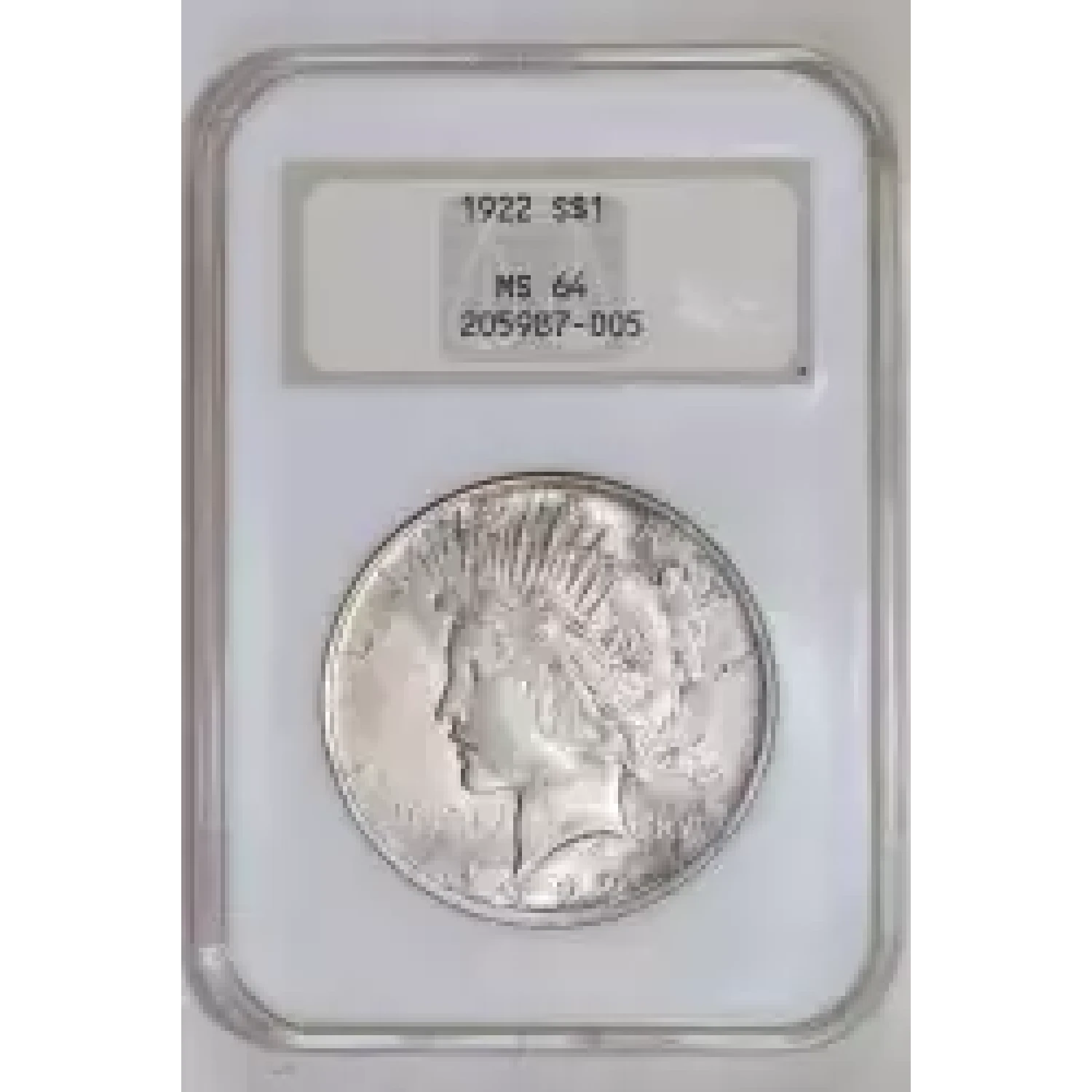 500905 | 1922-D Peace Silver Dollar NGC MS-64 | NGC | MS-64 | Sold: 15/03/2022 | $205 |