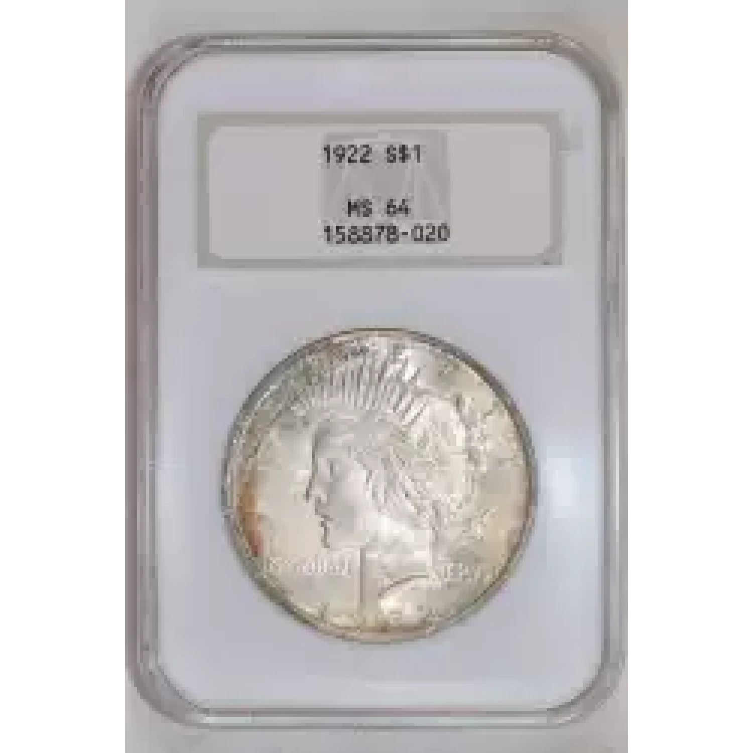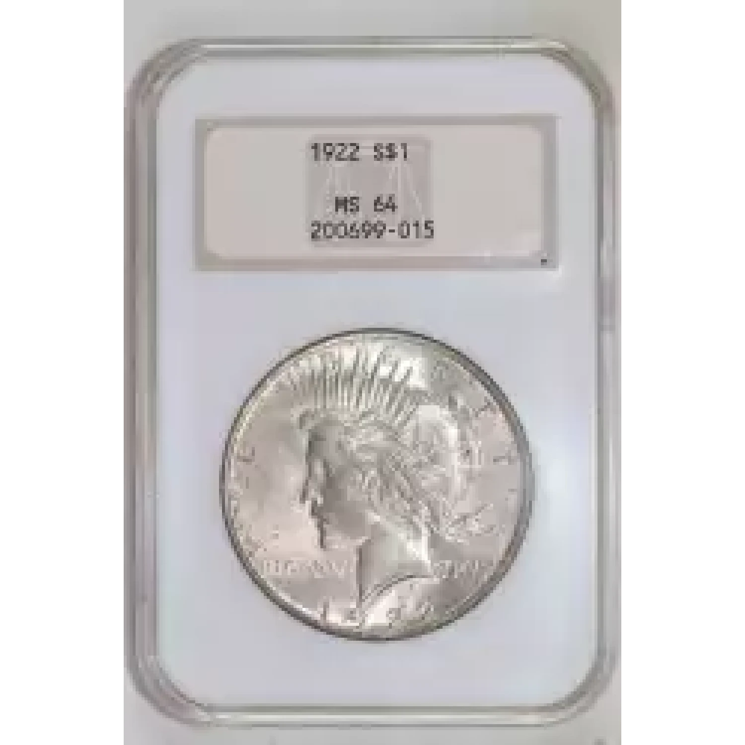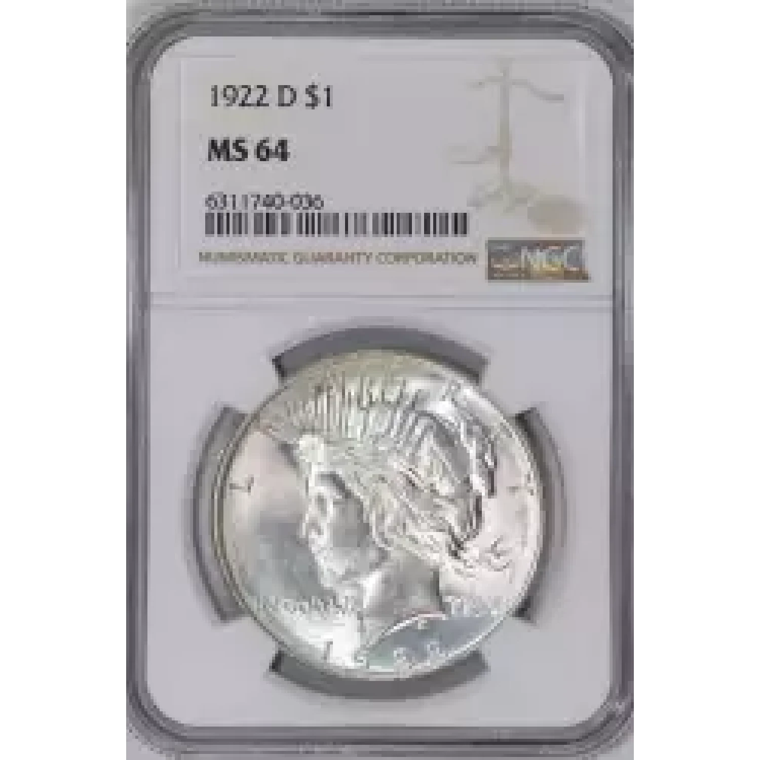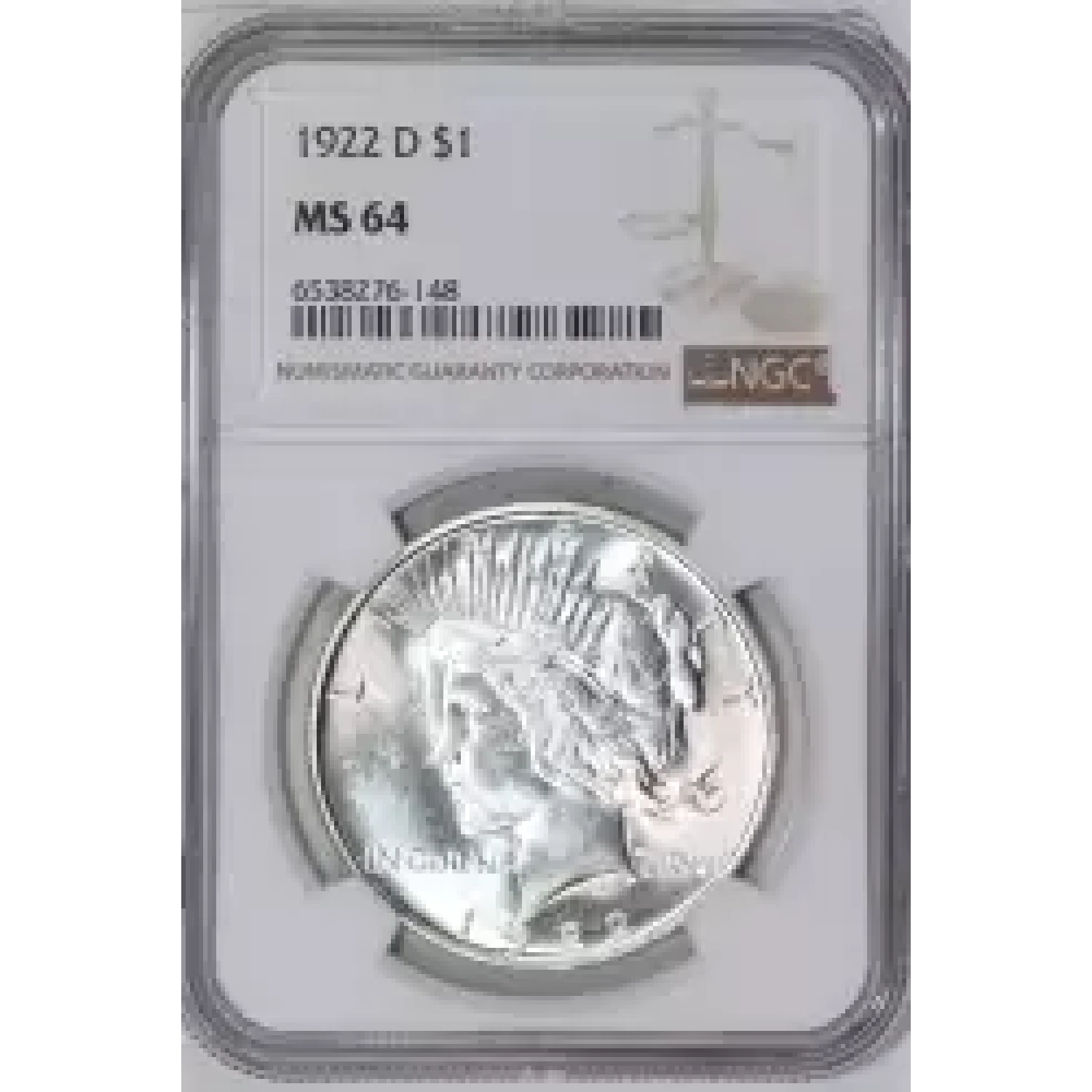 500905 | 1922-D Peace Silver Dollar NGC MS-64 | NGC | MS-64 | Sold: 15/03/2022 | $205 |