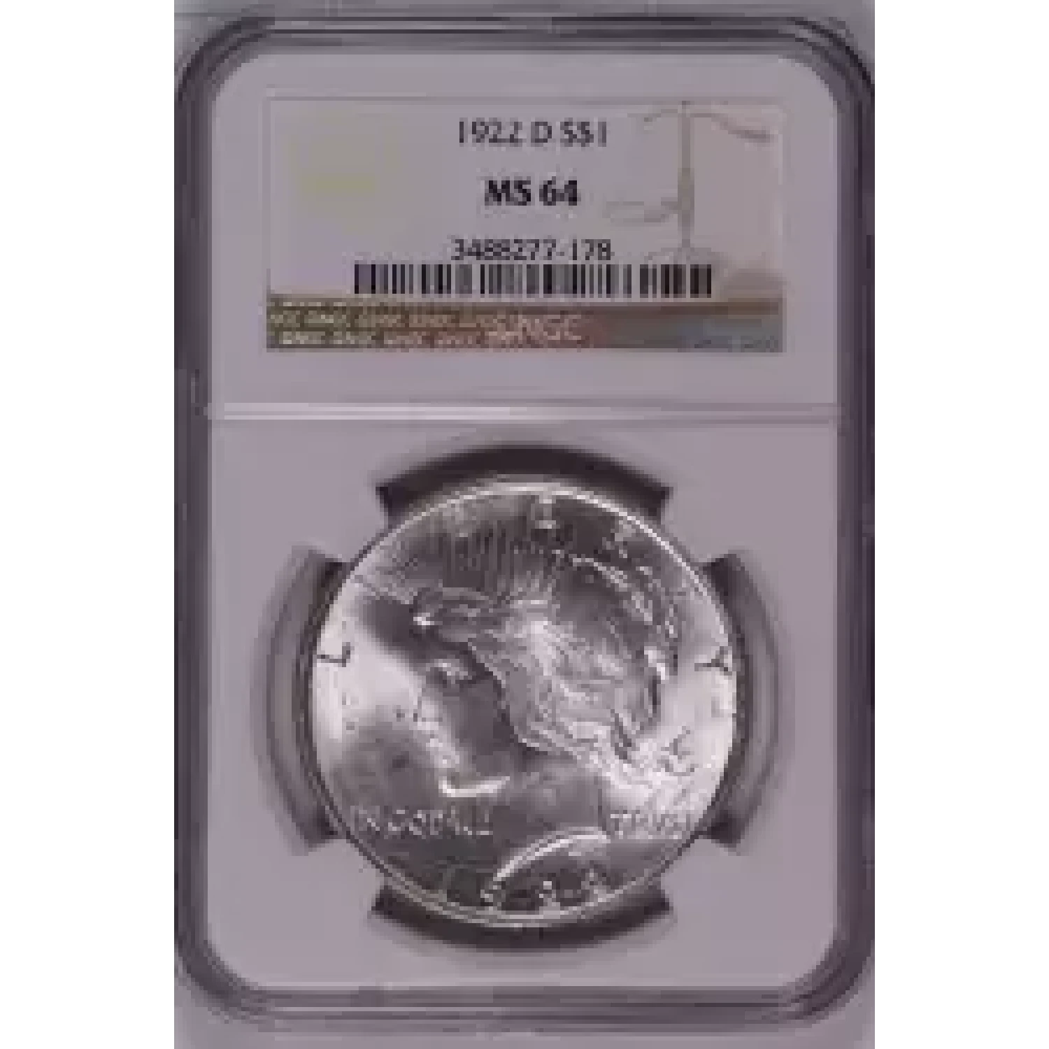 500906 | 1922-D Peace Silver Dollar NGC MS-64 | NGC | MS-64 | Sold: 16/03/2022 | $205 |