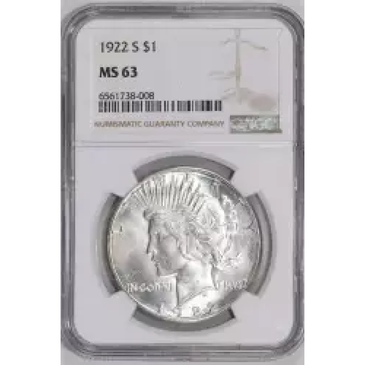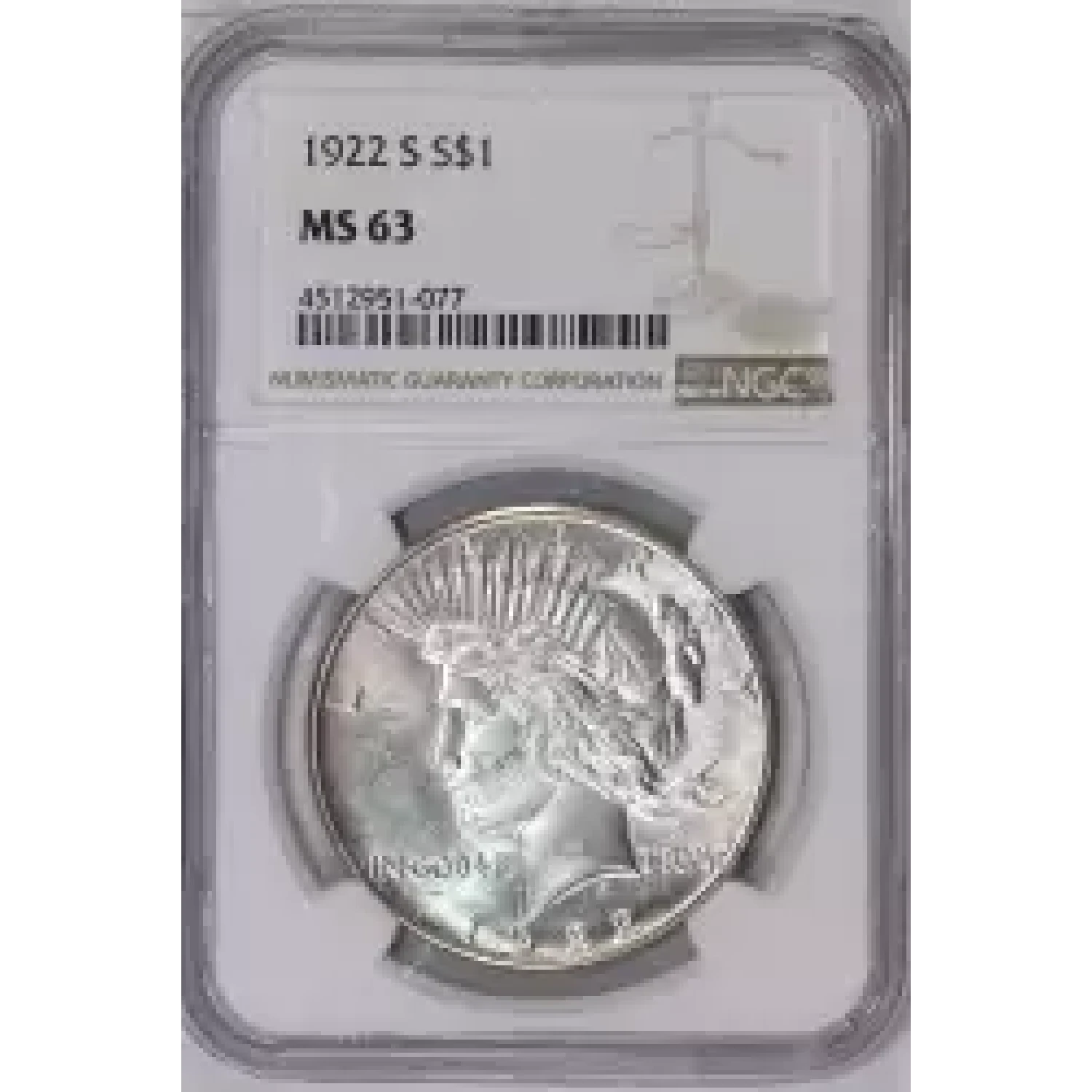 500740 | 1922-S Peace Silver Dollar NGC MS-63 | NGC | MS-63 | Sold: 01/03/2022 | $115 |