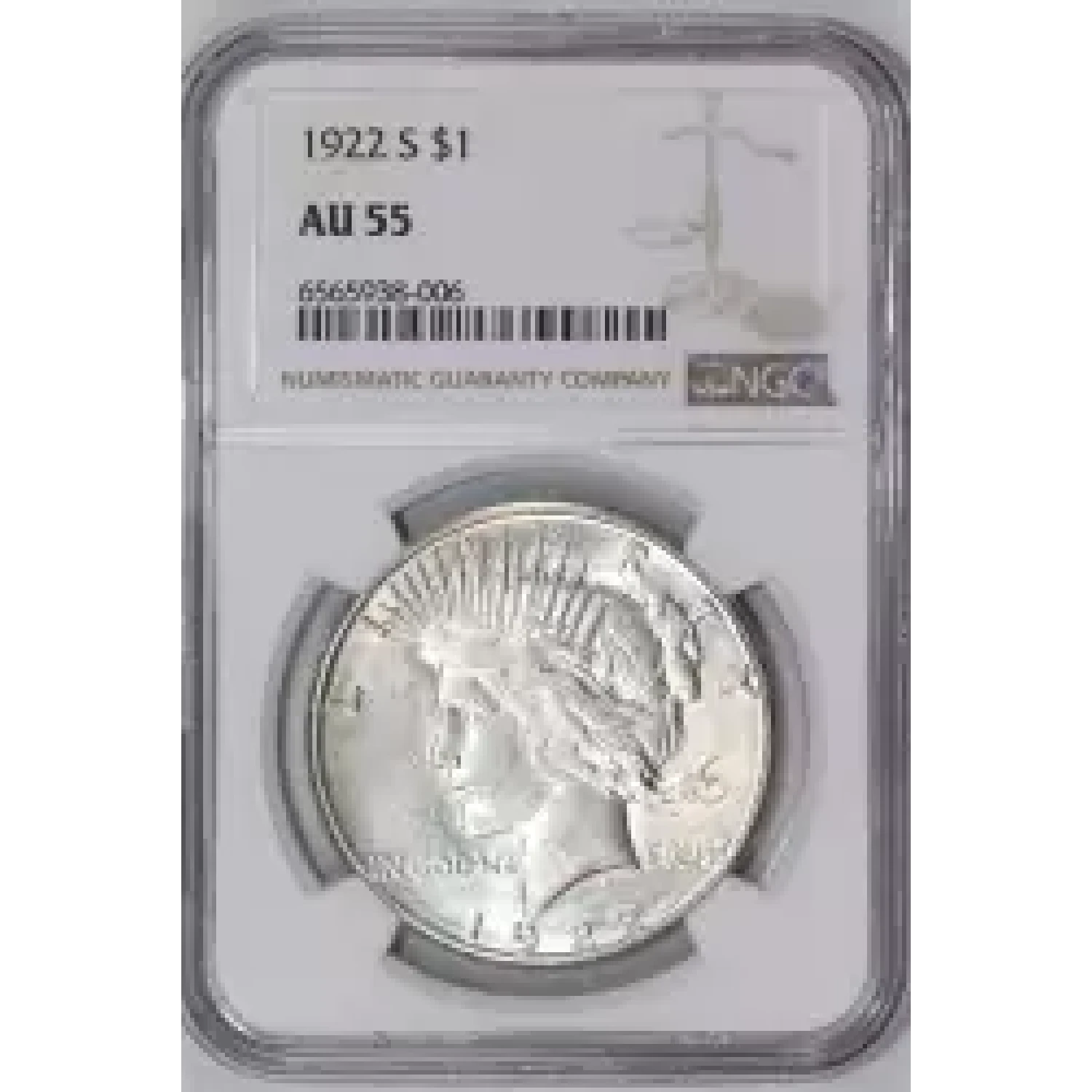 500741 | 1922-S Peace Silver Dollar NGC MS-62 | NGC | MS-62 | Sold: 01/03/2022 | $90 |