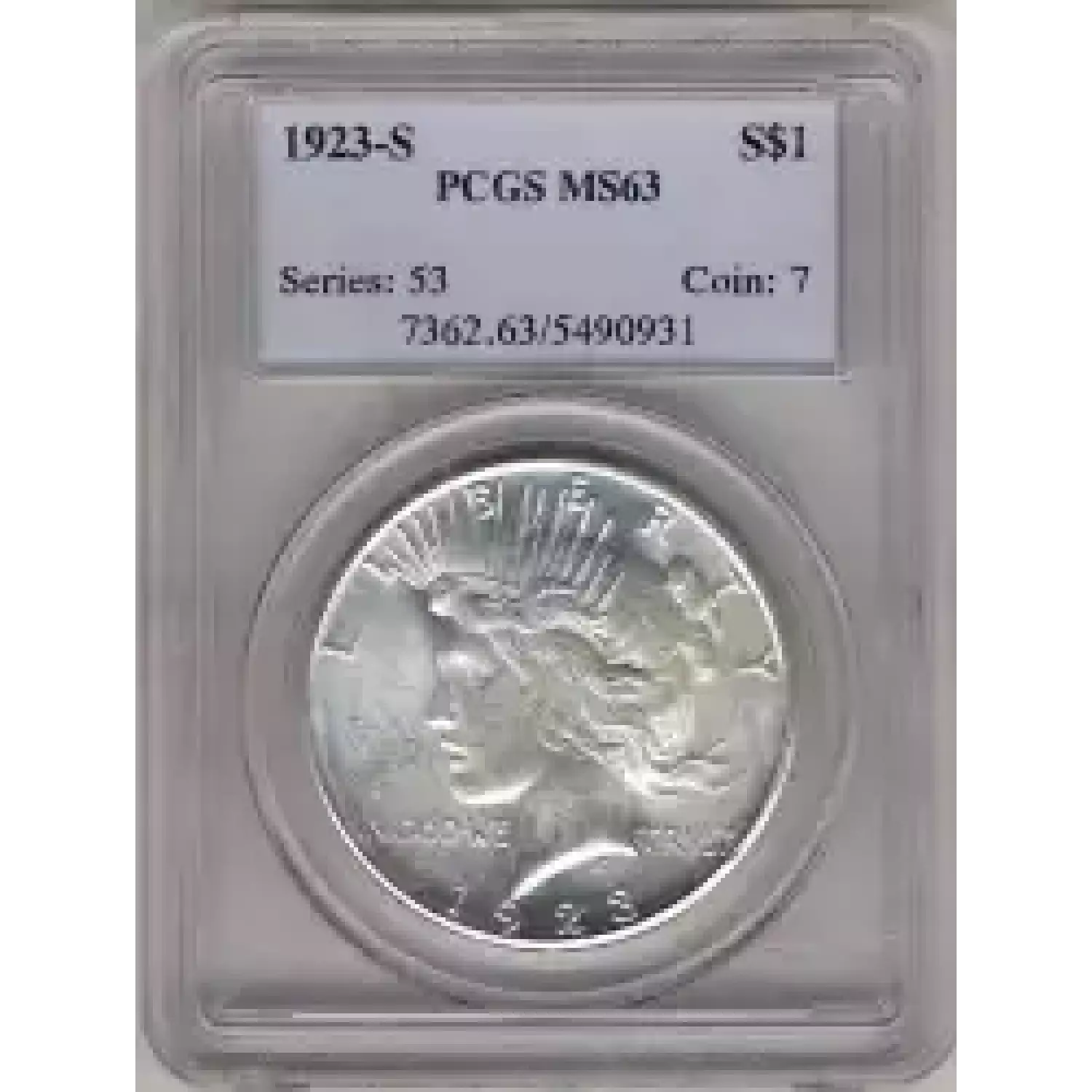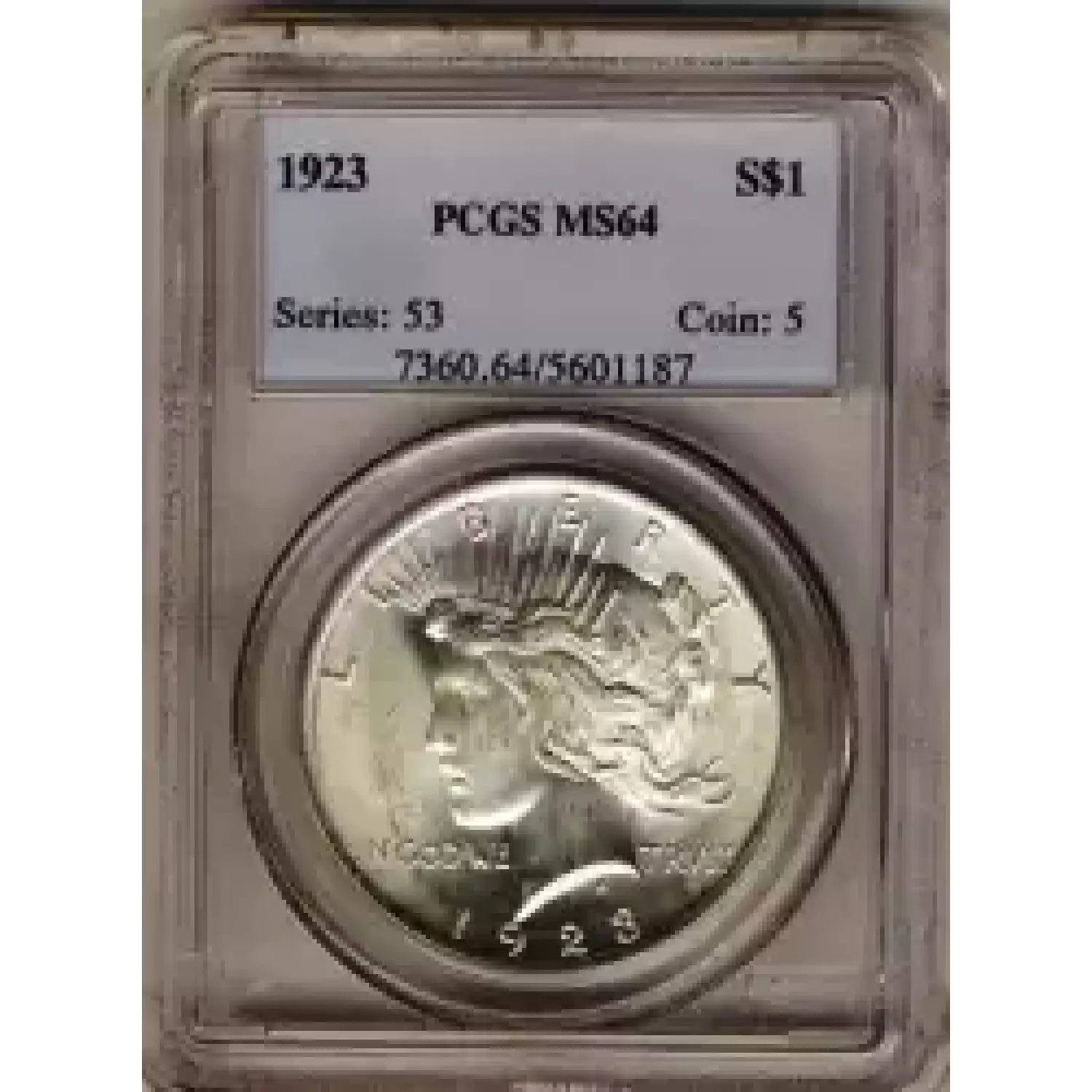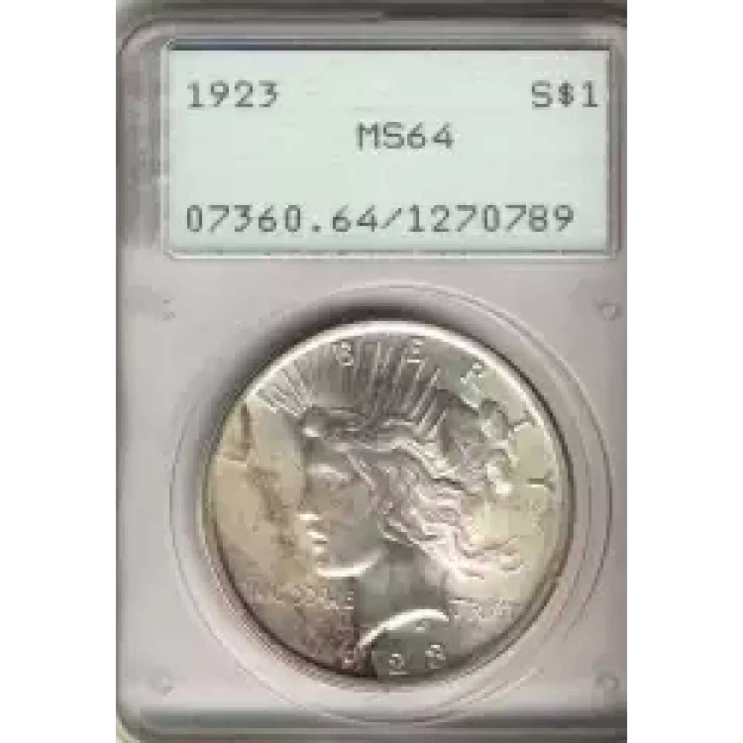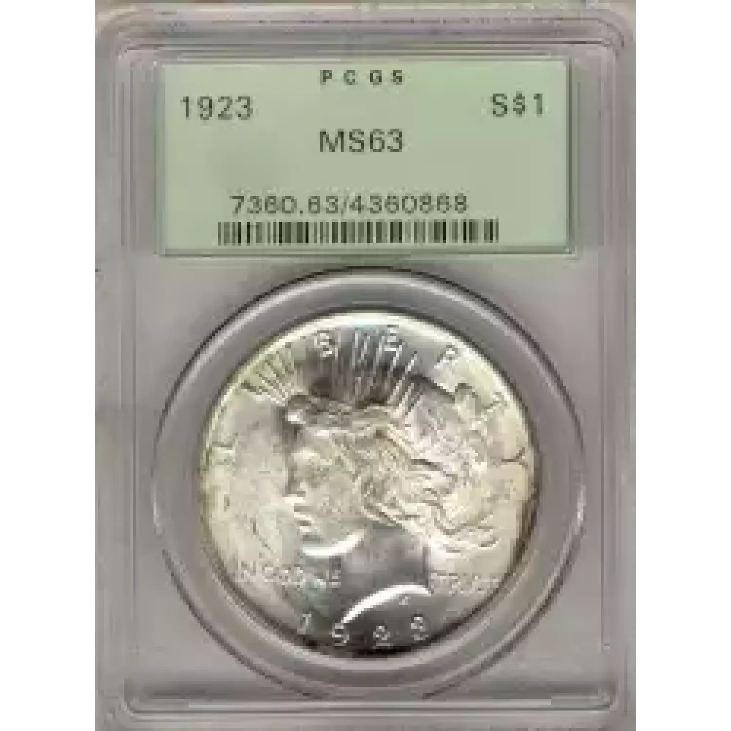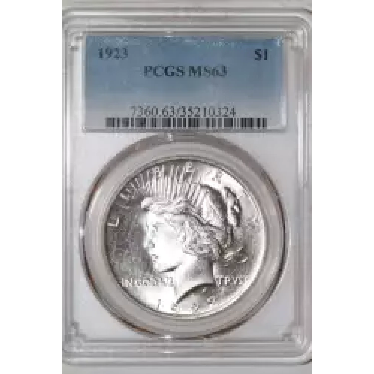 505262 | 1923-MS-63 Peace Silver Dollar PCGS MS-63 | PCGS | MS-63 | Sold: 12/10/2011 | $60 |