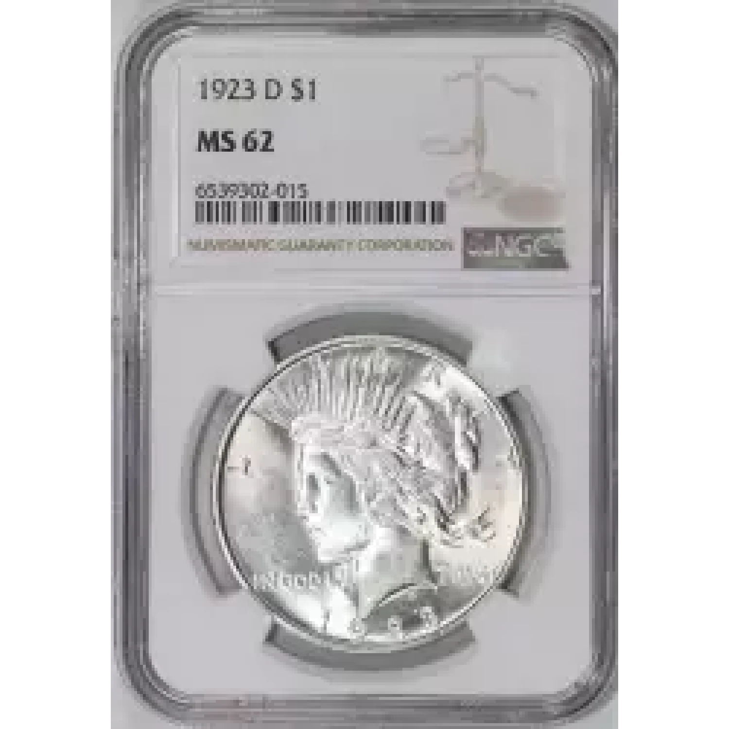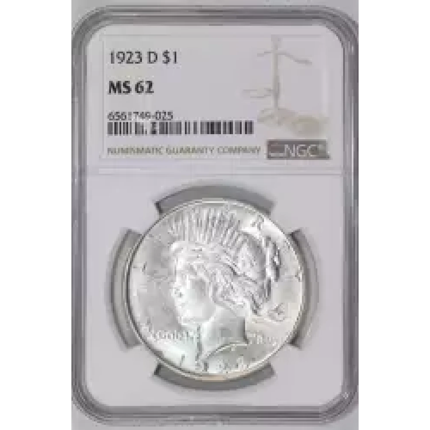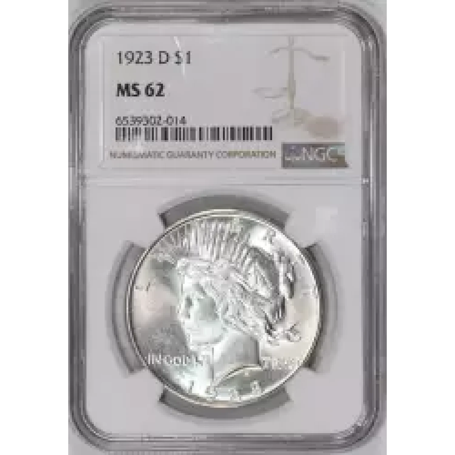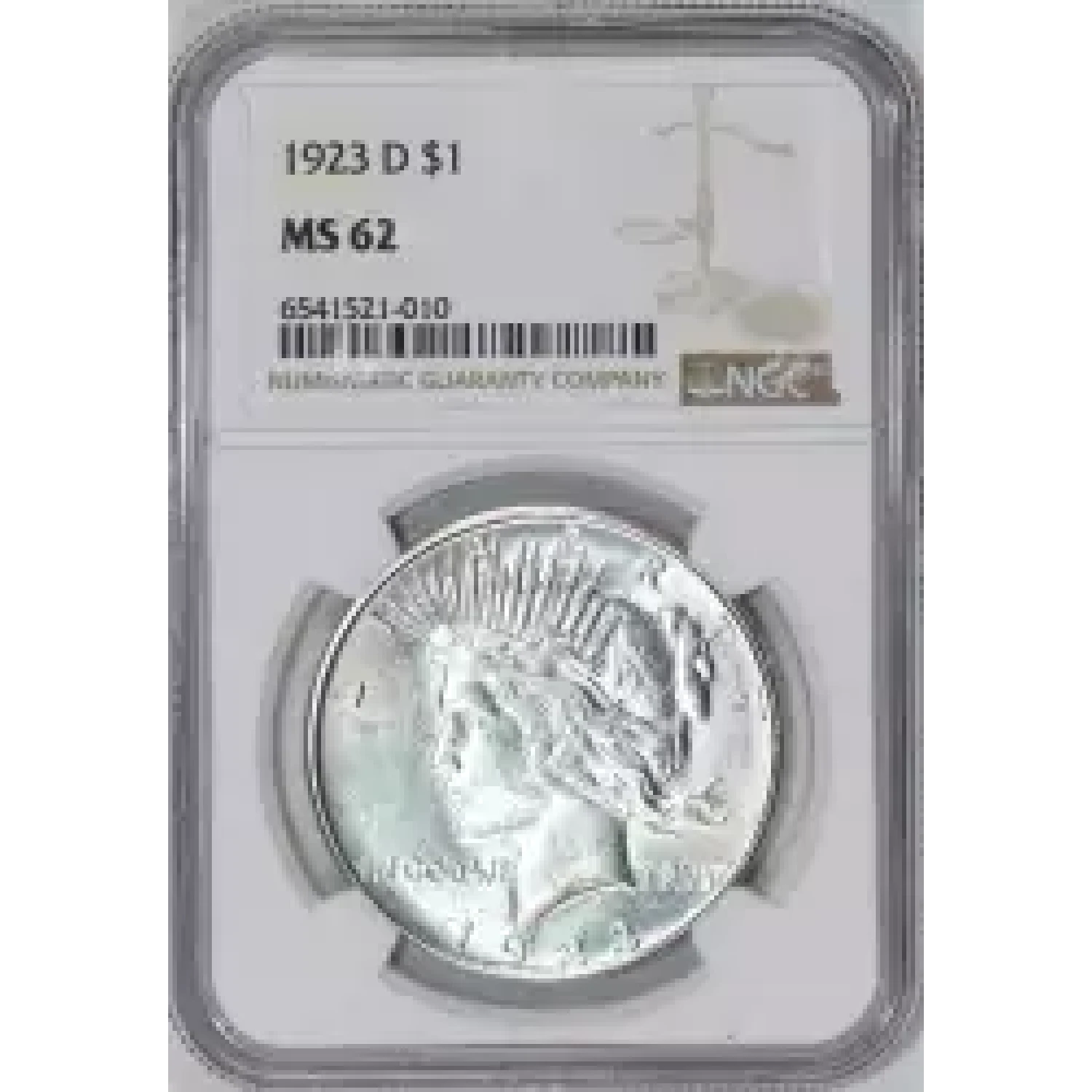 500752 | 1923-D Peace Silver Dollar NGC MS-62 | NGC | MS-62 | Sold: 01/03/2022 | $175 |