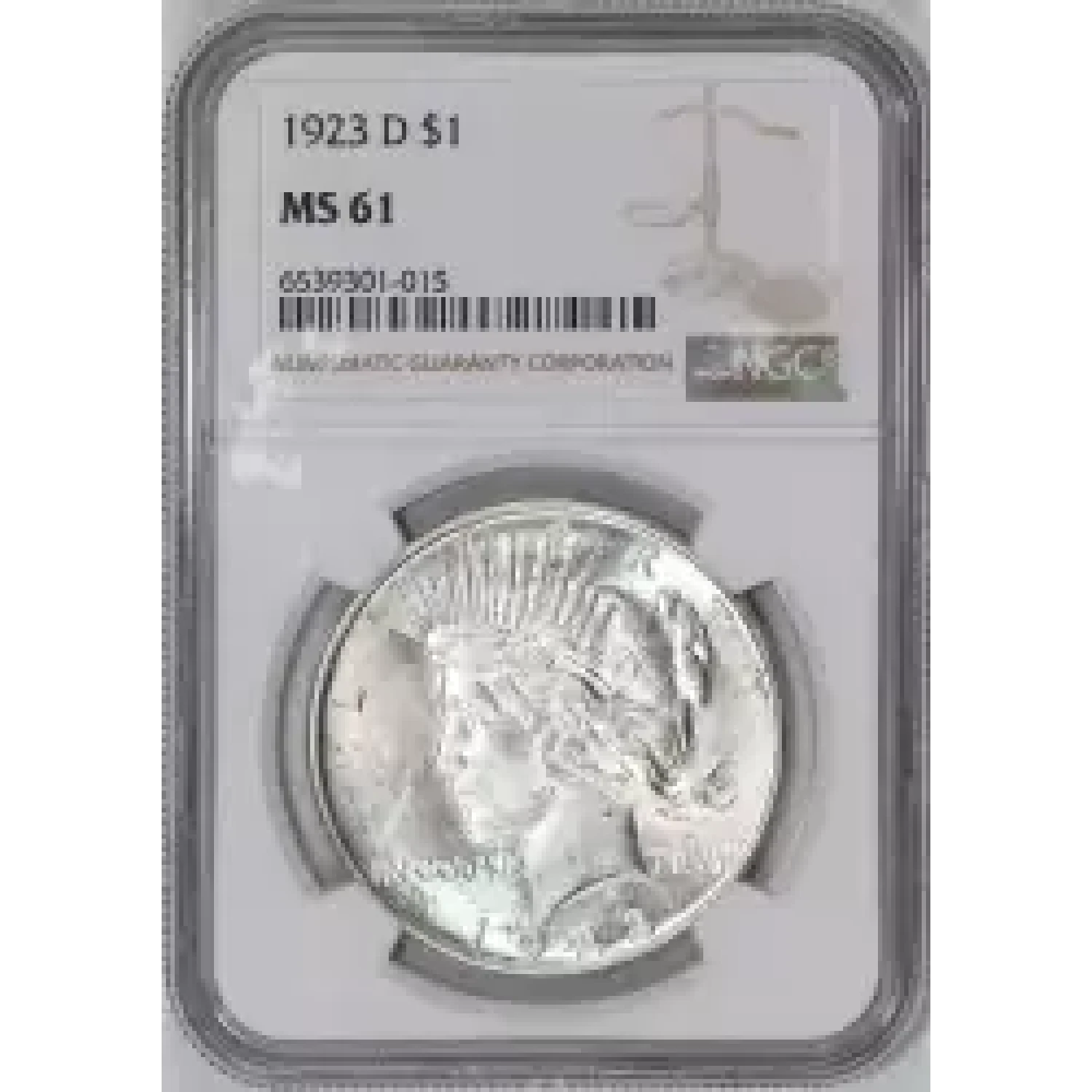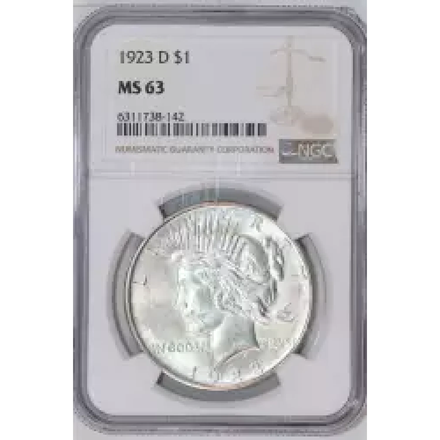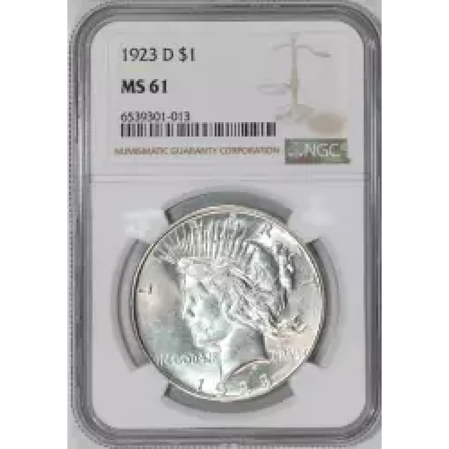 500756 | 1923-D Peace Silver Dollar NGC MS-61 | NGC | MS-61 | Sold: 01/03/2022 | $165 |