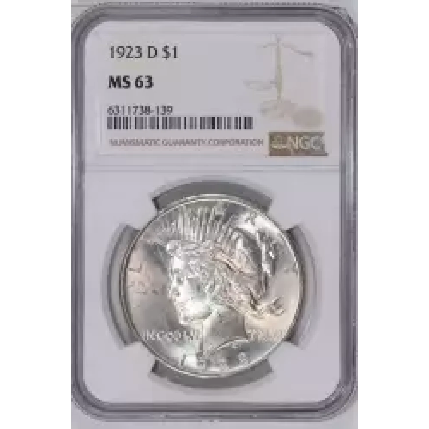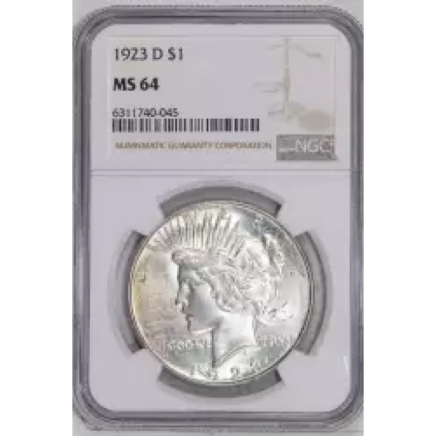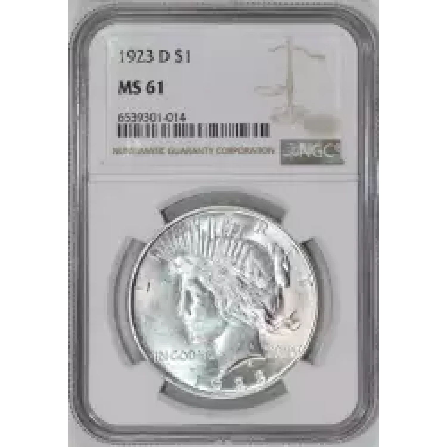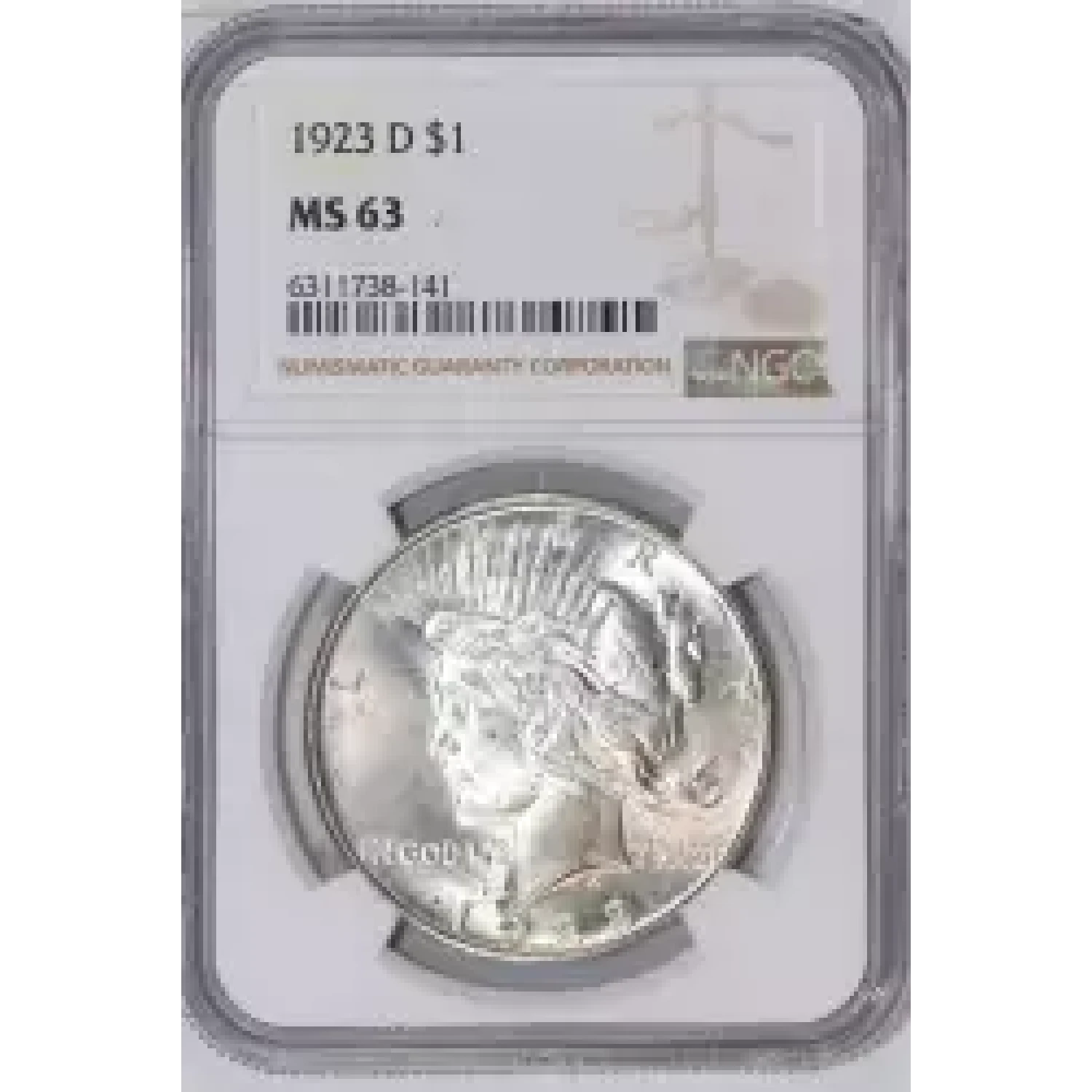 500756 | 1923-D Peace Silver Dollar NGC MS-61 | NGC | MS-61 | Sold: 01/03/2022 | $165 |