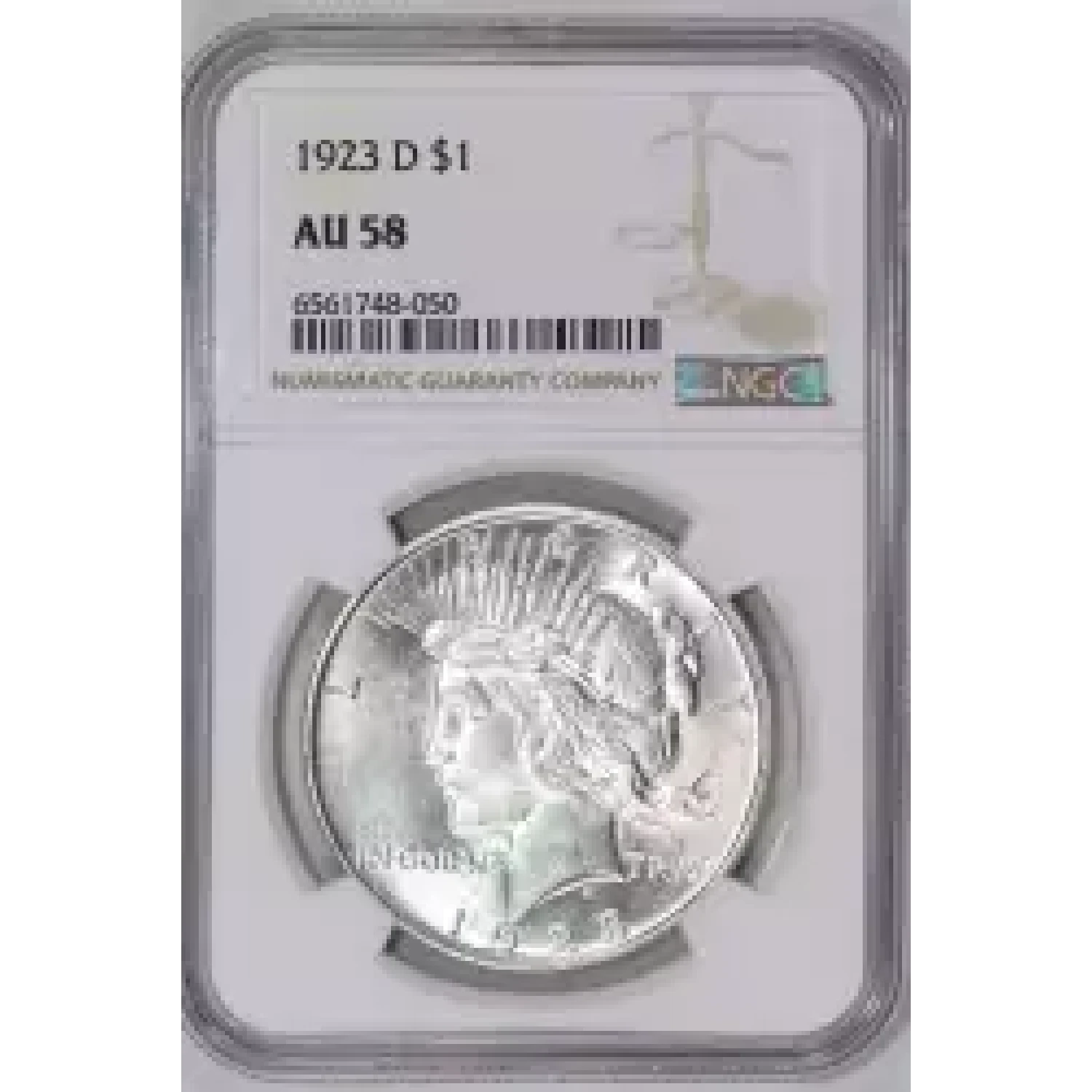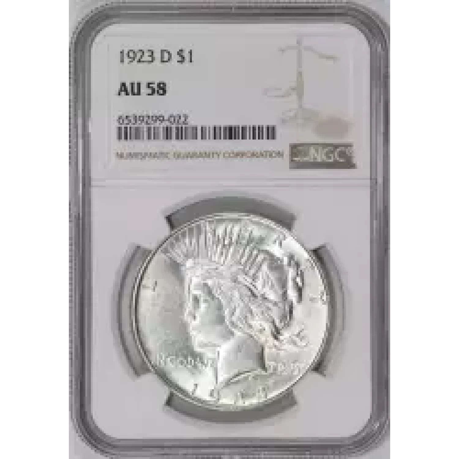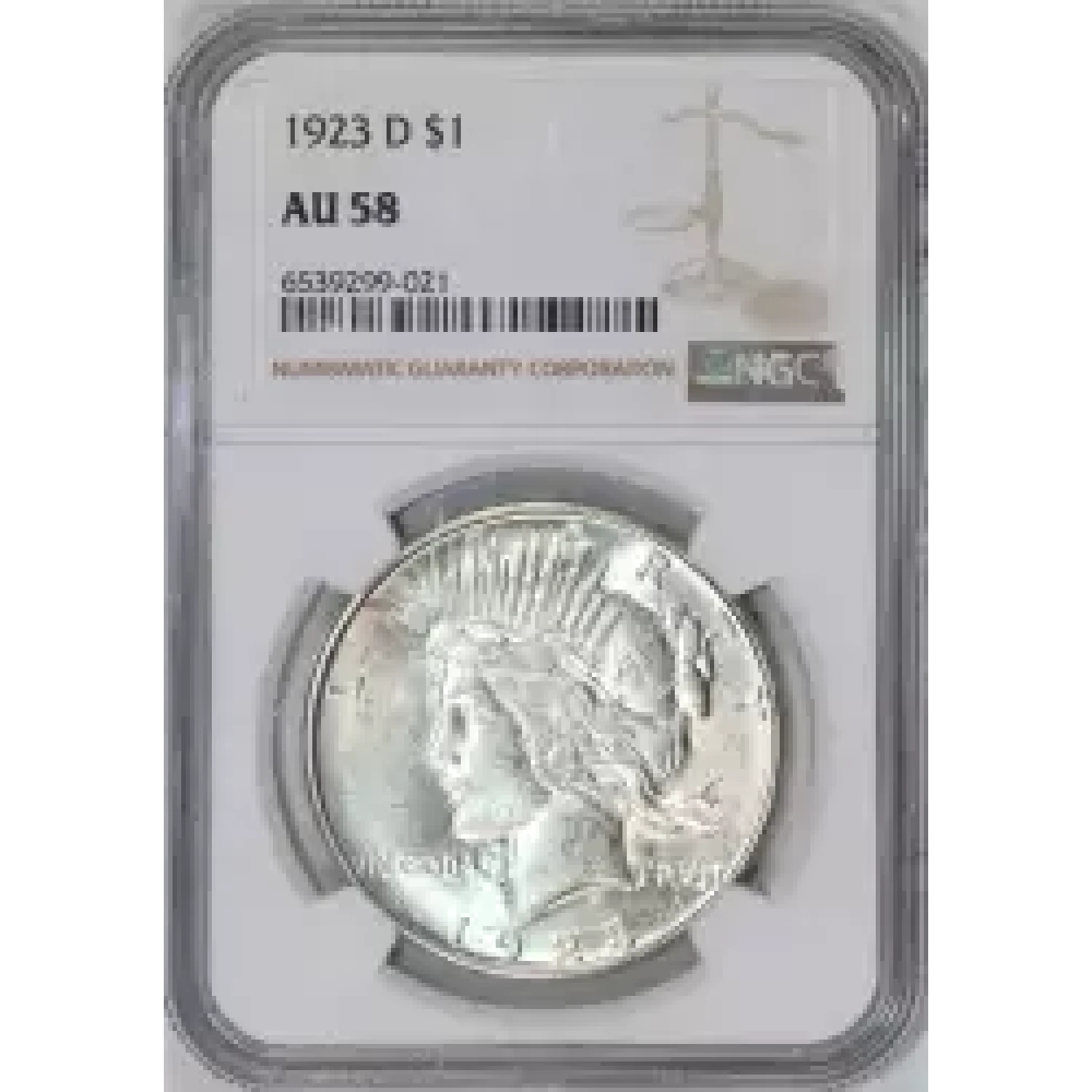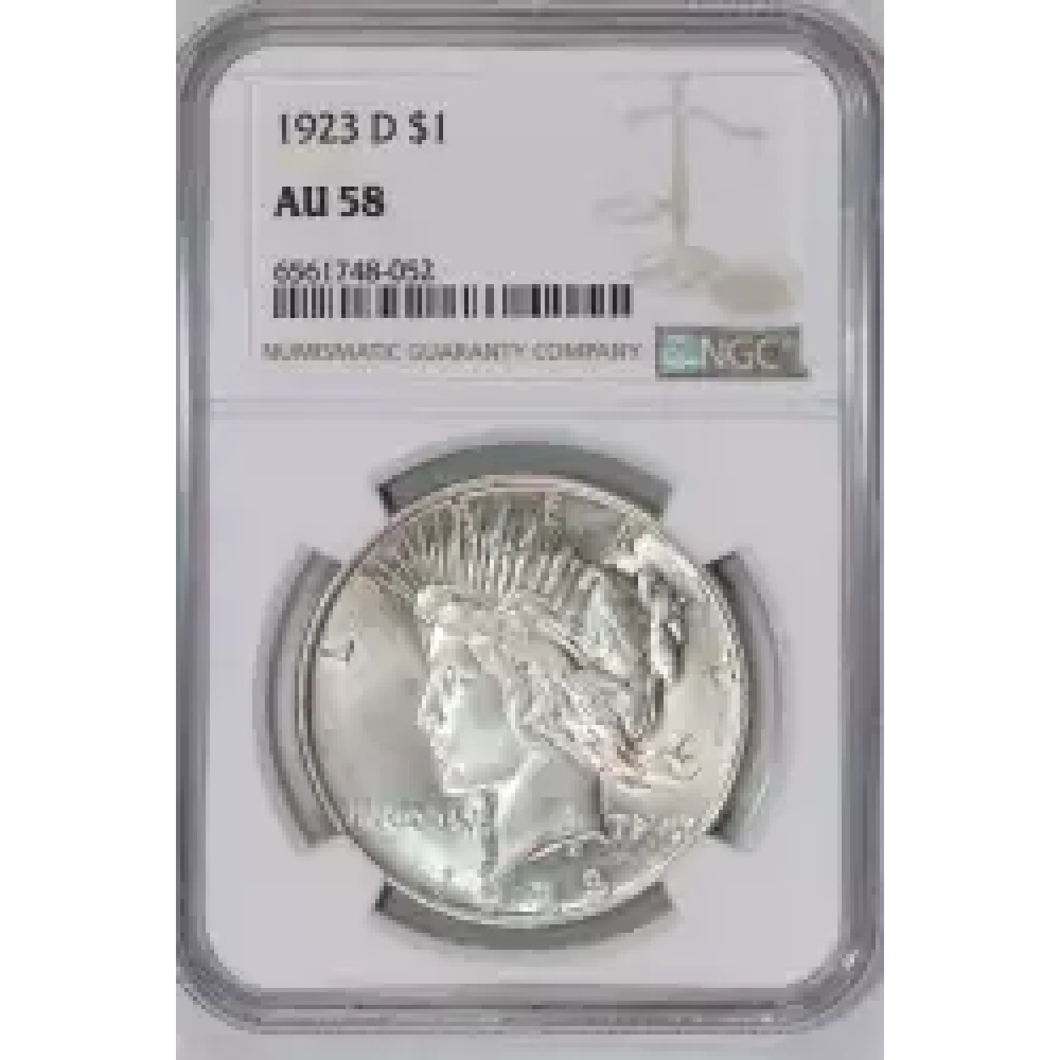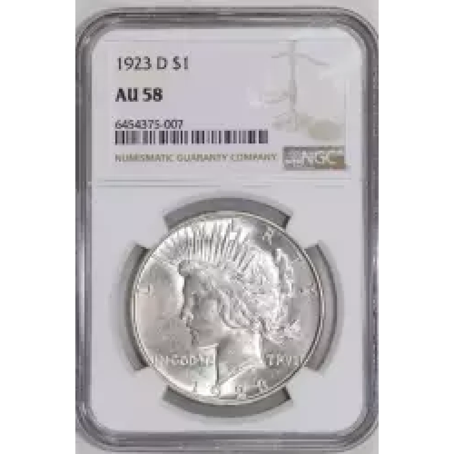 500760 | 1923-D Peace Silver Dollar NGC AU-58 | NGC | AU-58 | Sold: 01/03/2022 | $110 |