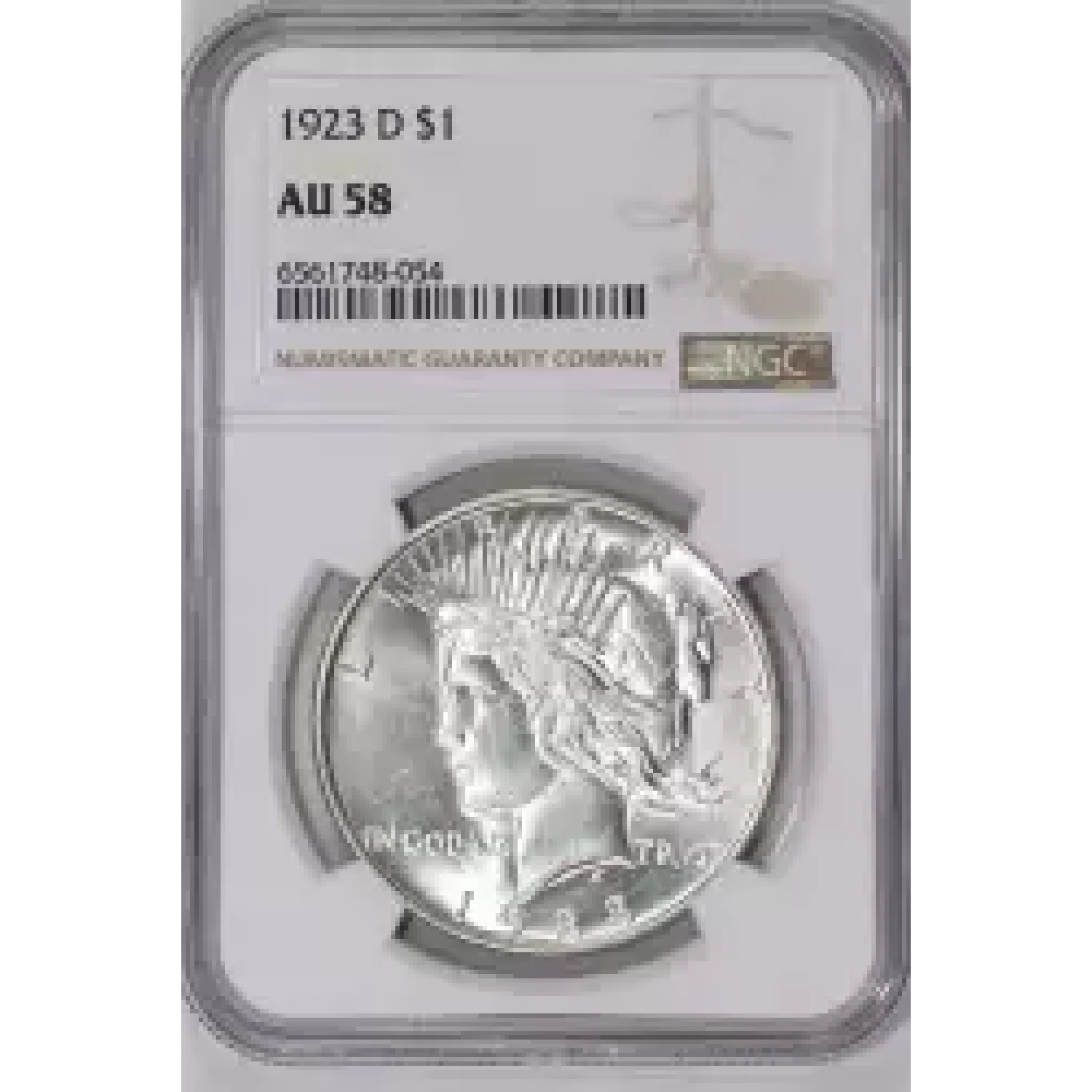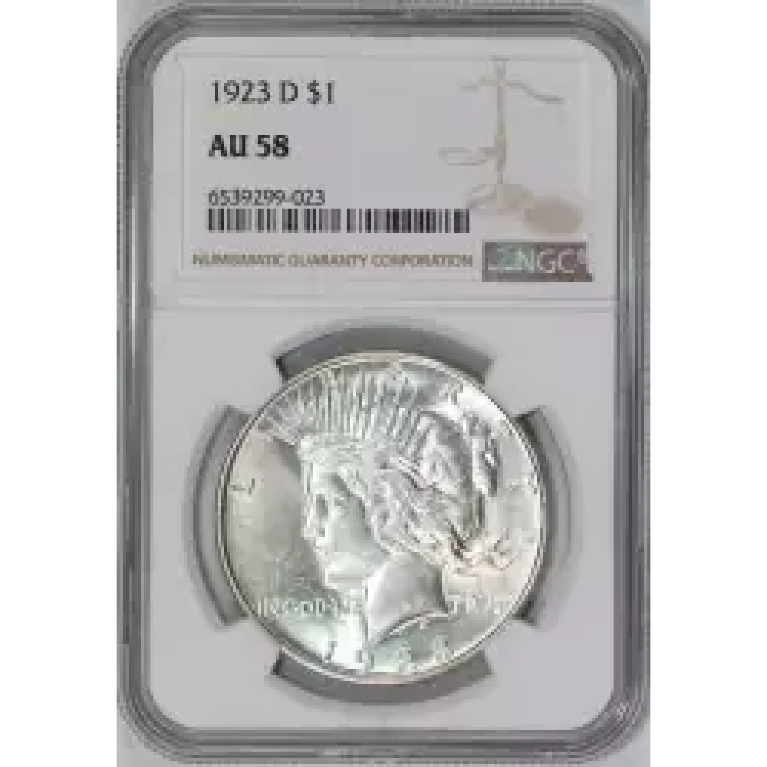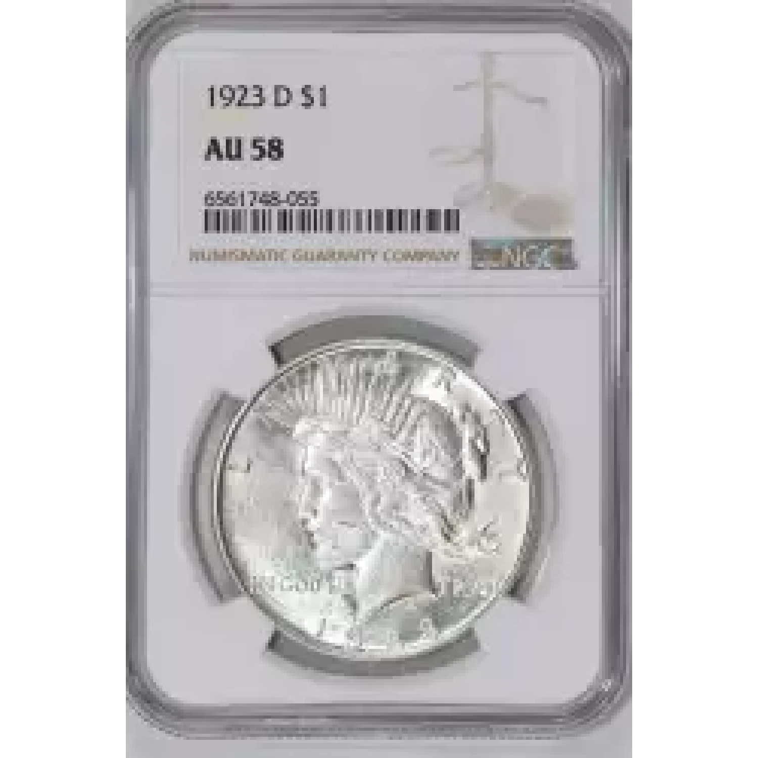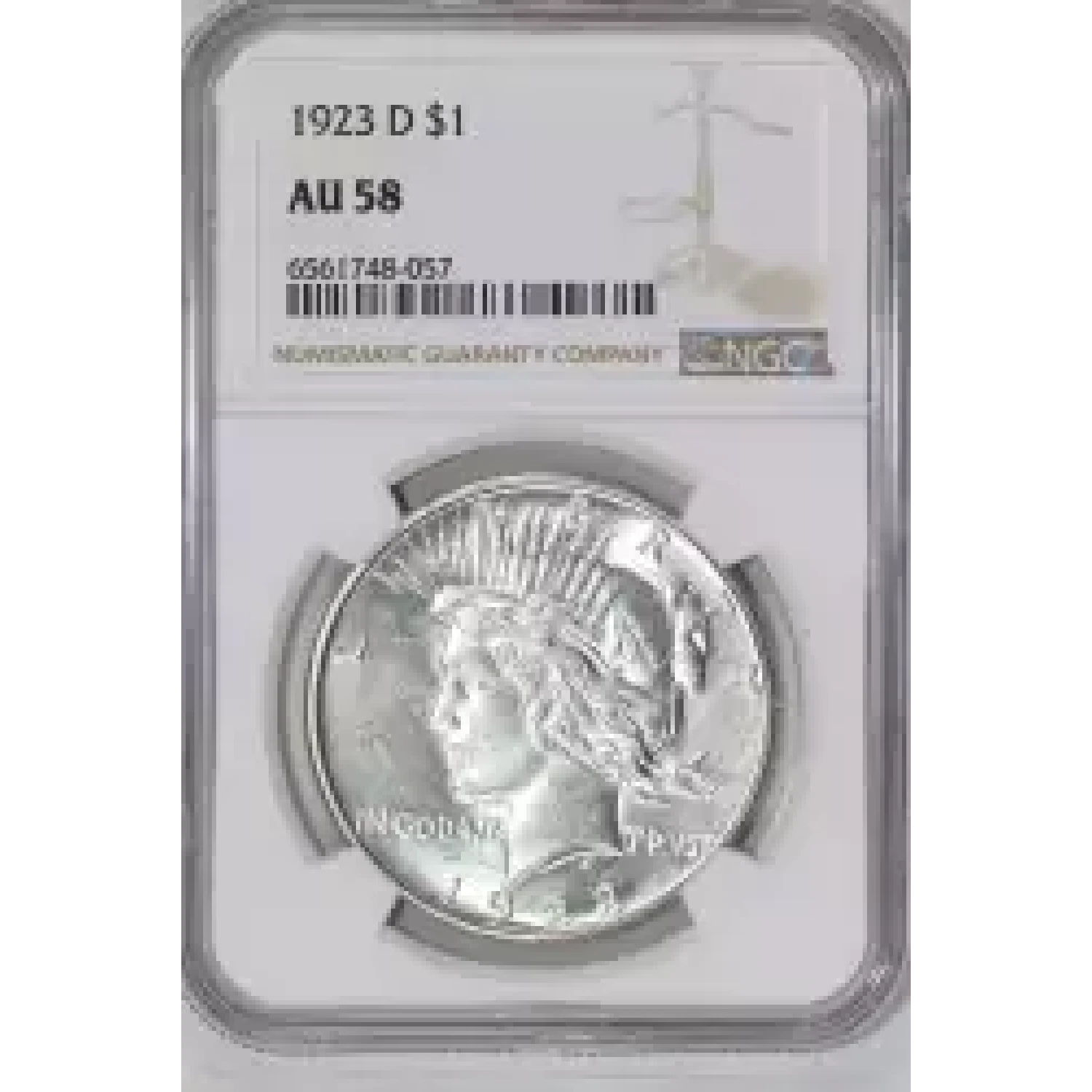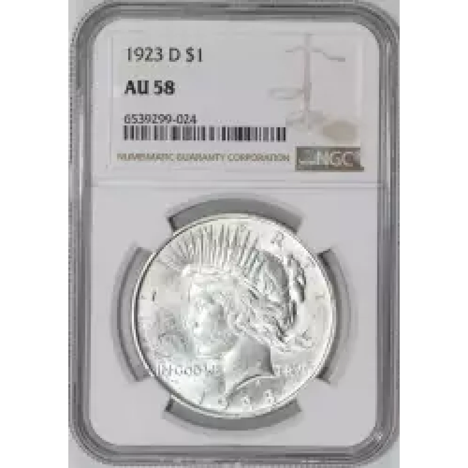 500760 | 1923-D Peace Silver Dollar NGC AU-58 | NGC | AU-58 | Sold: 01/03/2022 | $110 |