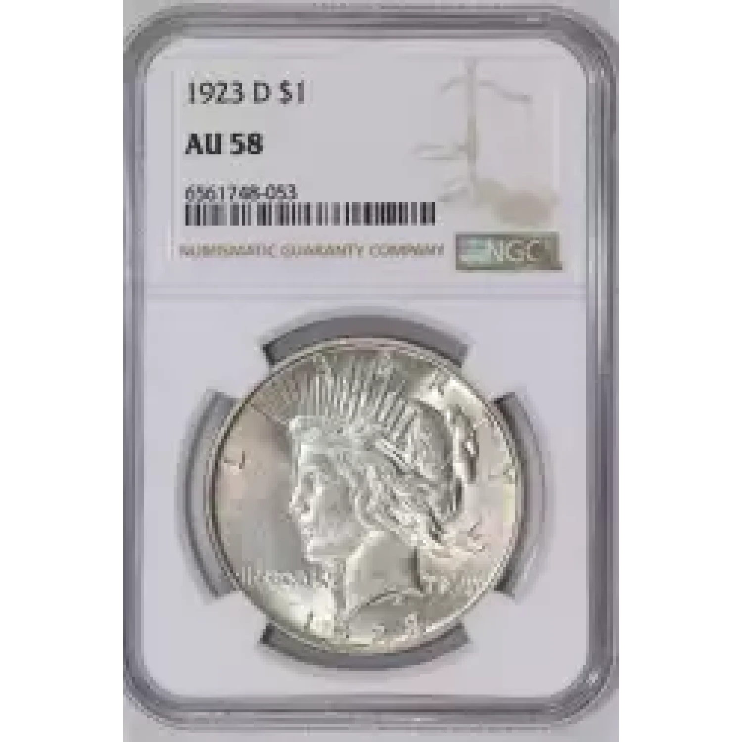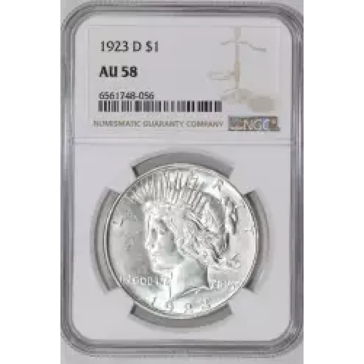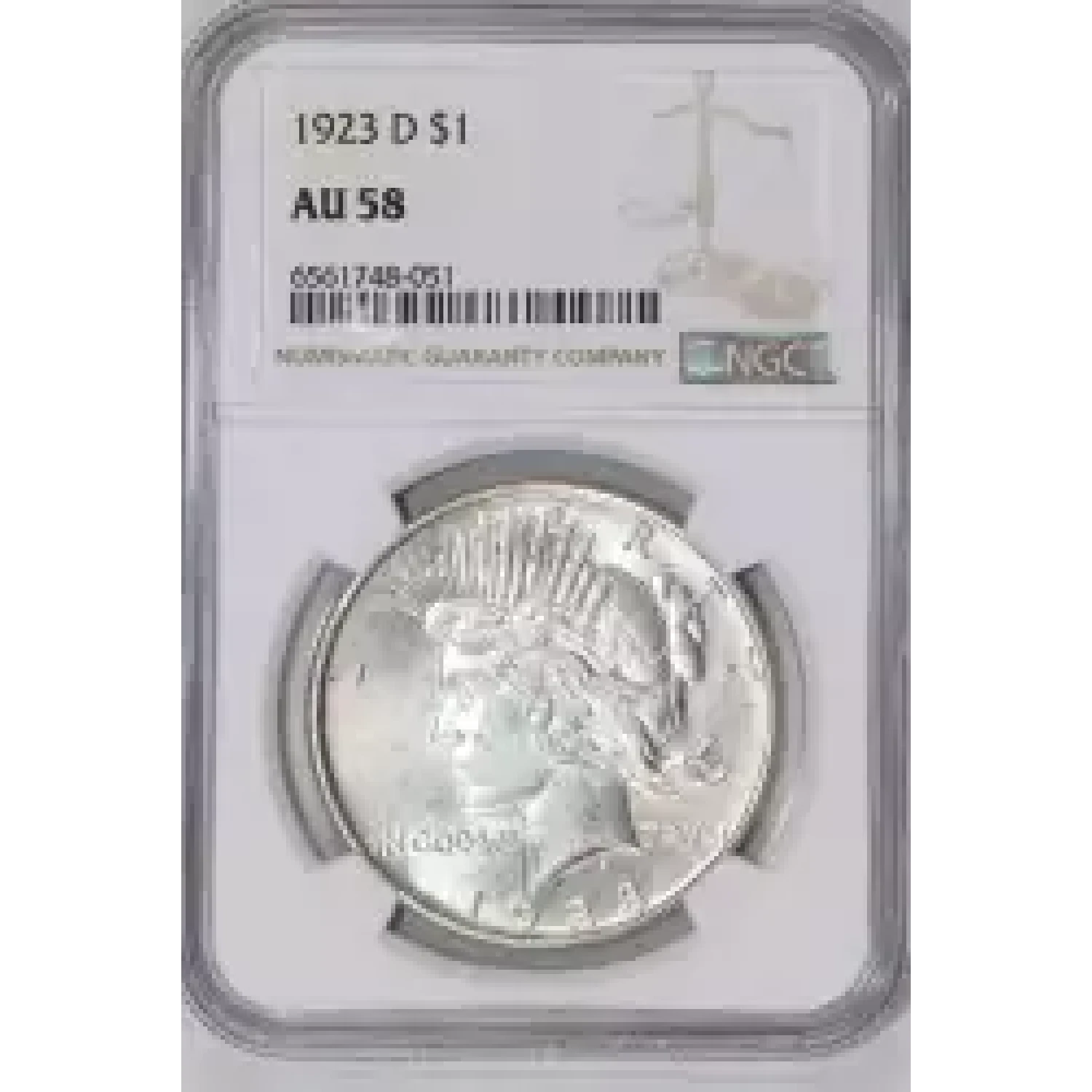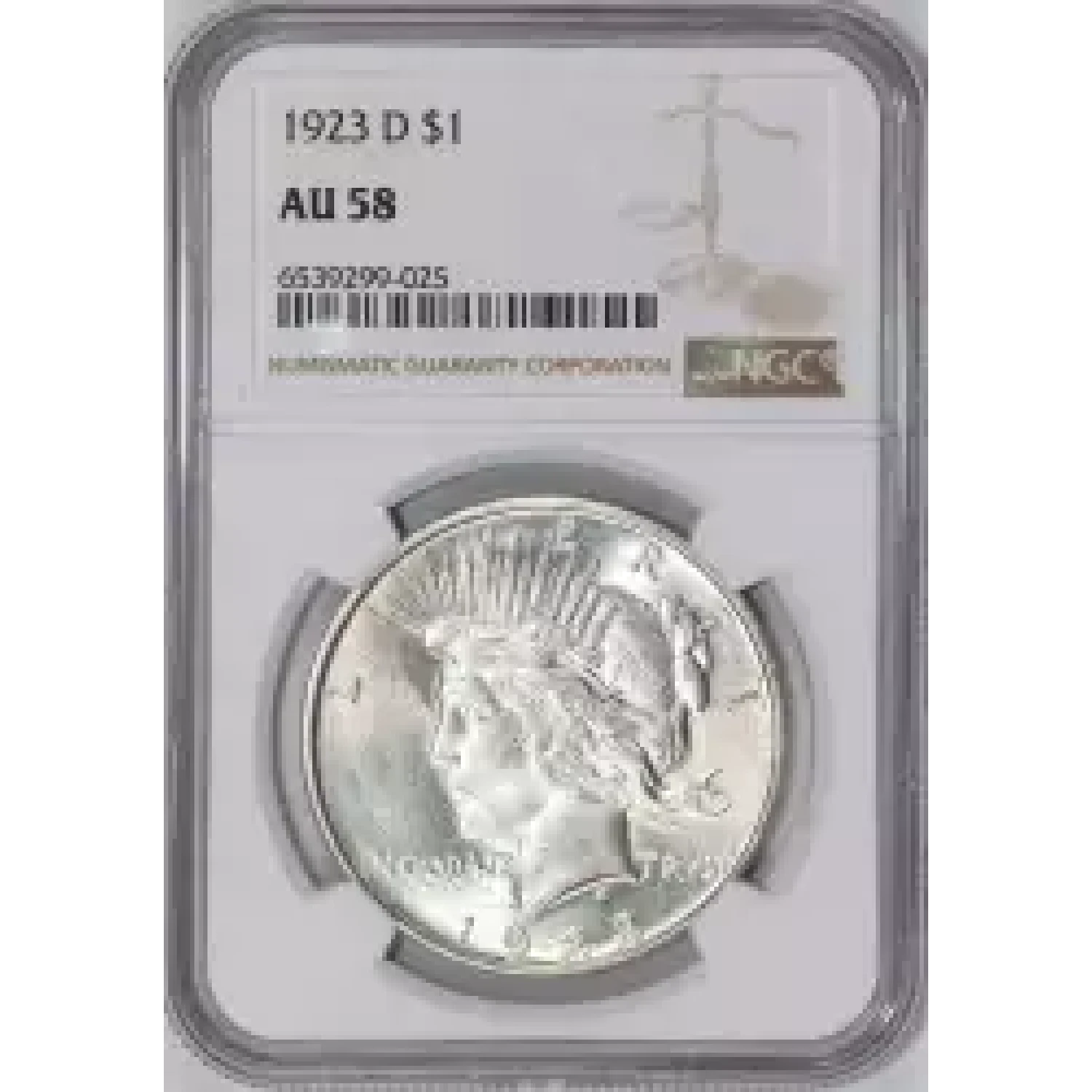 500759 | 1923-D Peace Silver Dollar NGC AU-58 | NGC | AU-58 | Sold: 01/03/2022 | $110 |