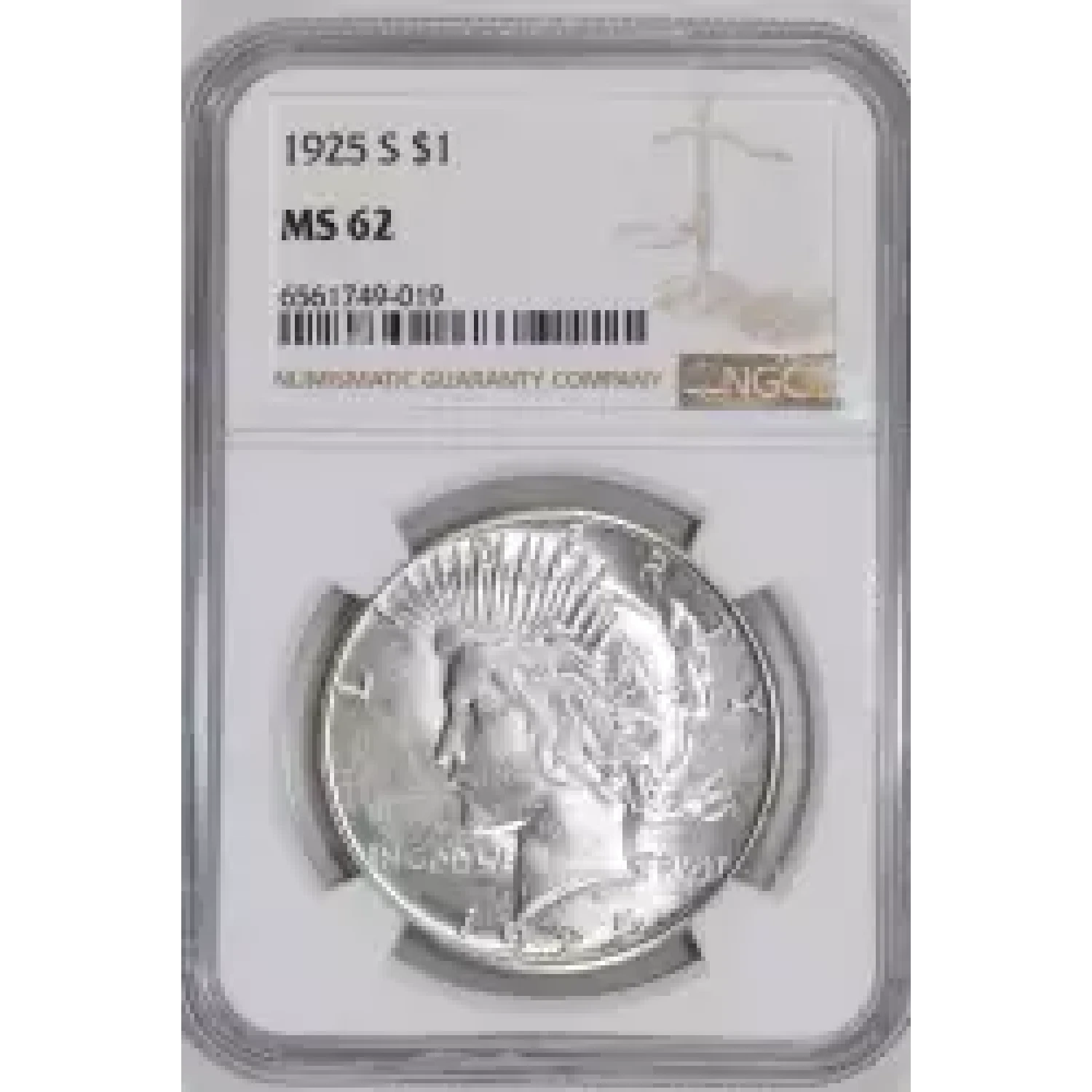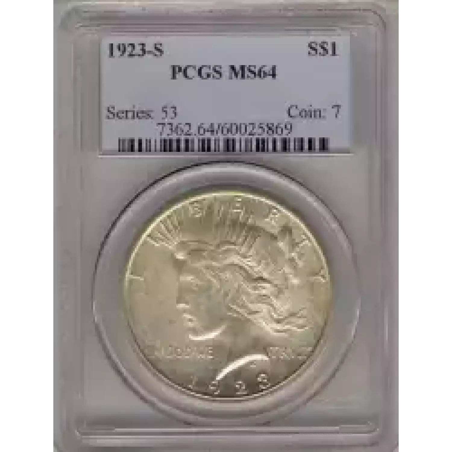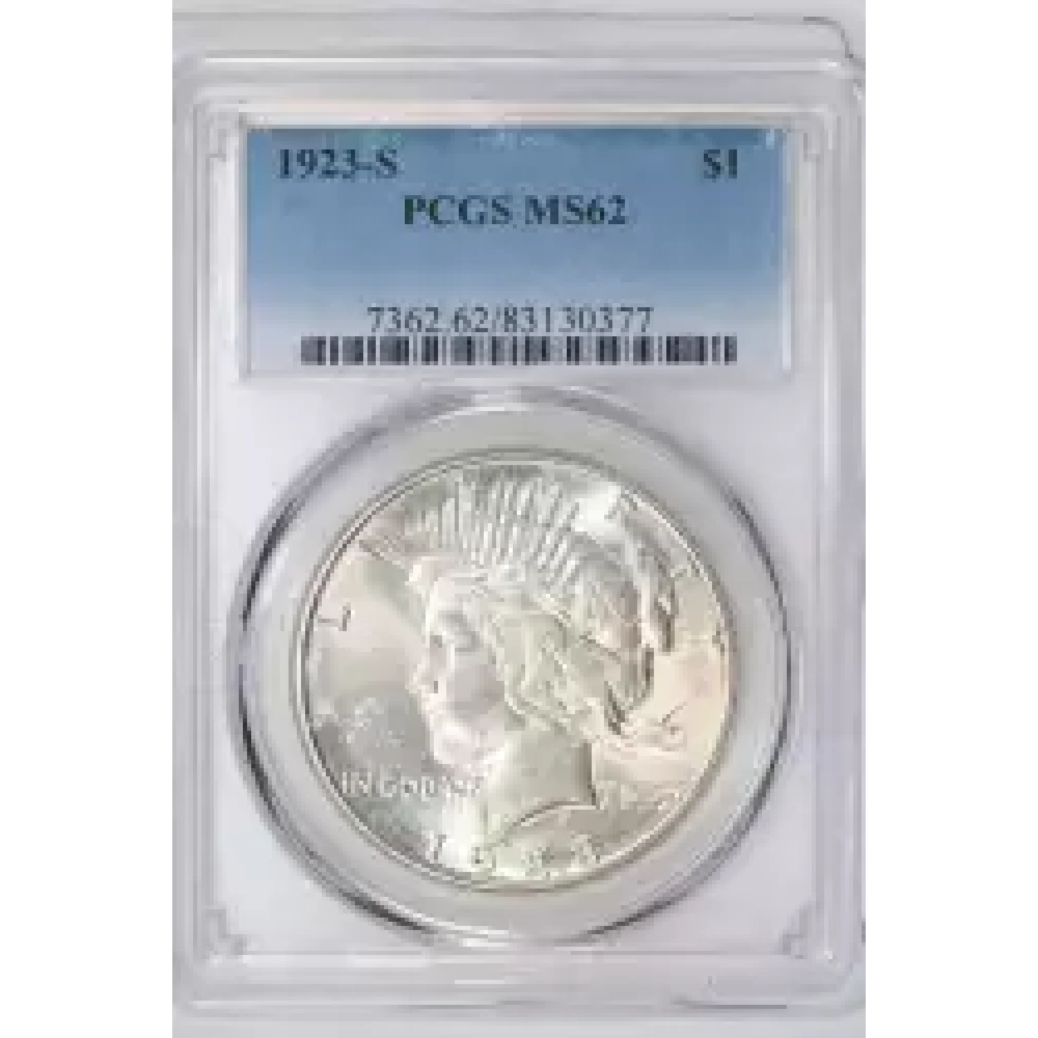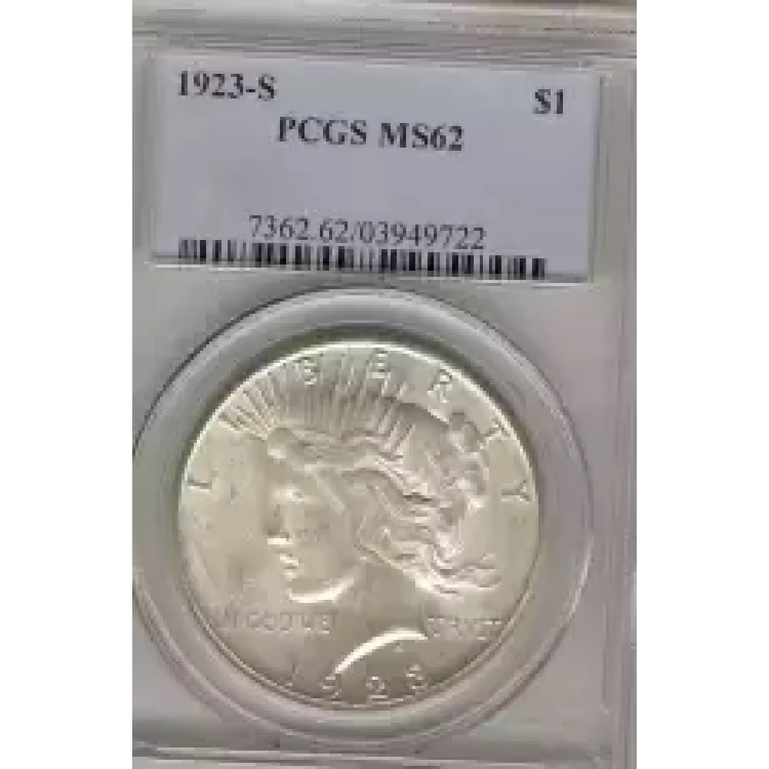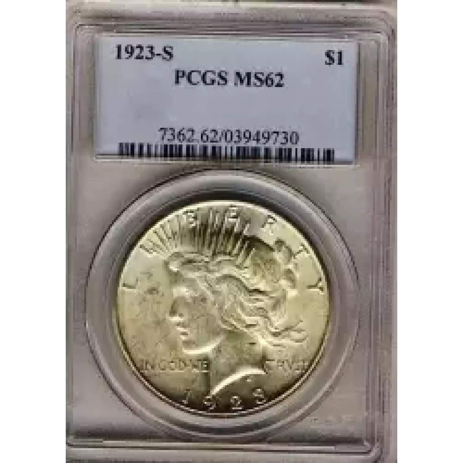 500765 | 1923-S Peace Silver Dollar NGC MS-62 | NGC | MS-62 | Sold: 01/03/2022 | $90 |