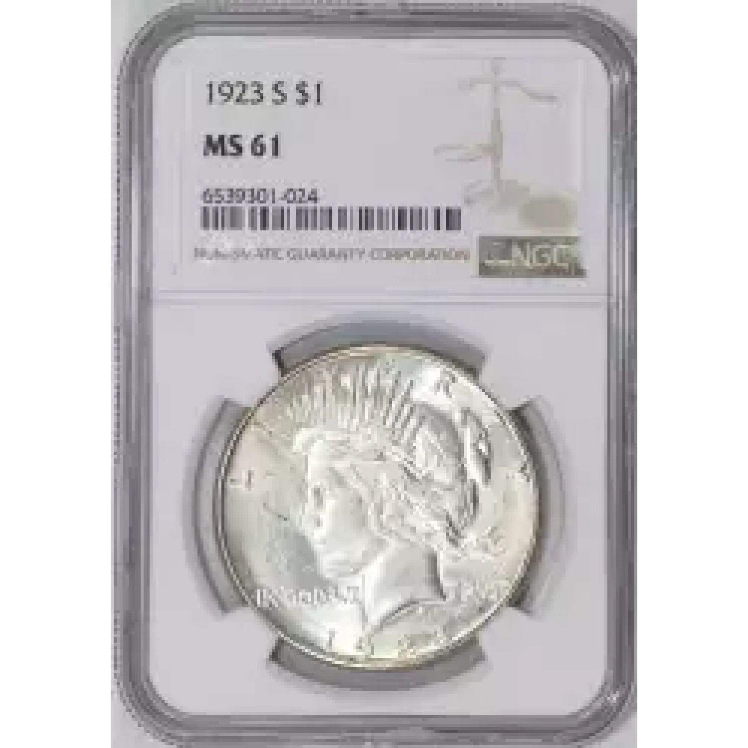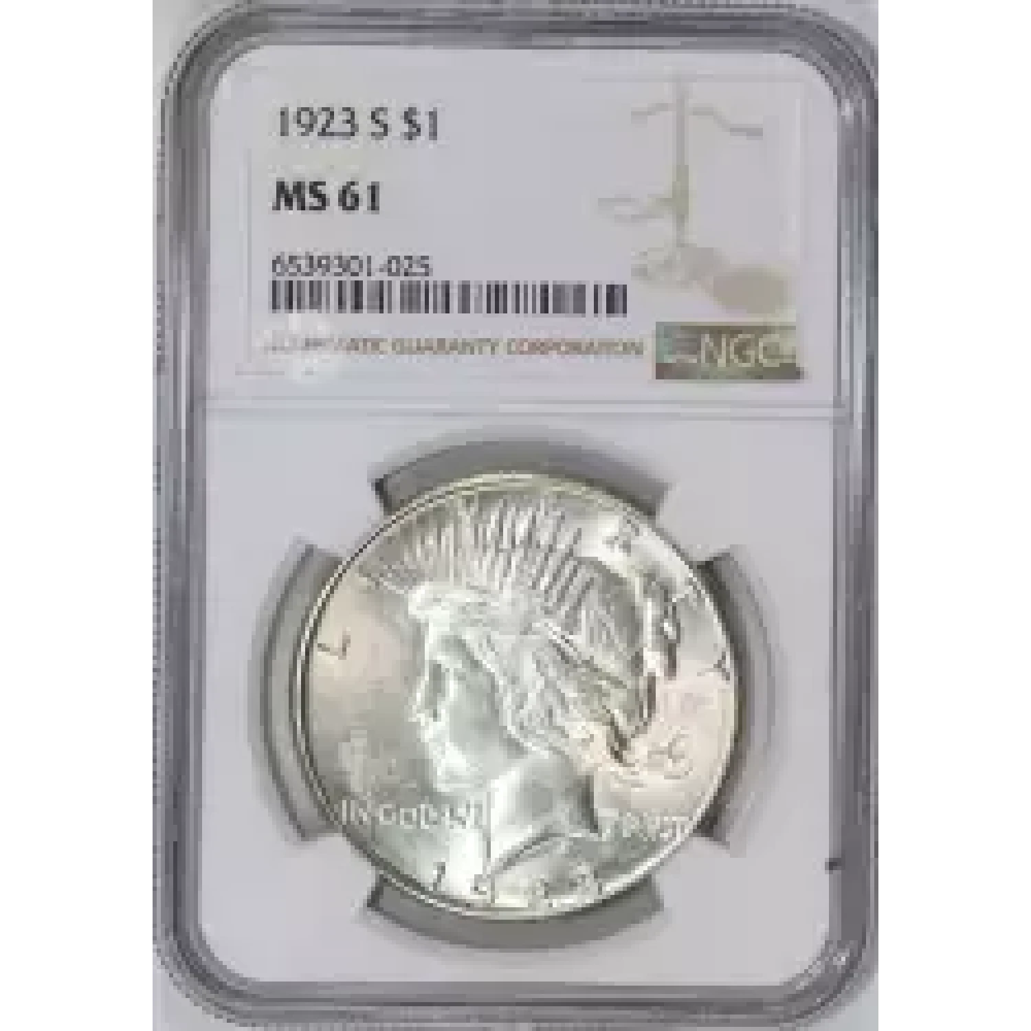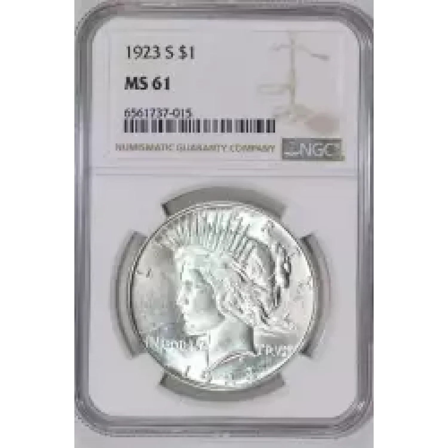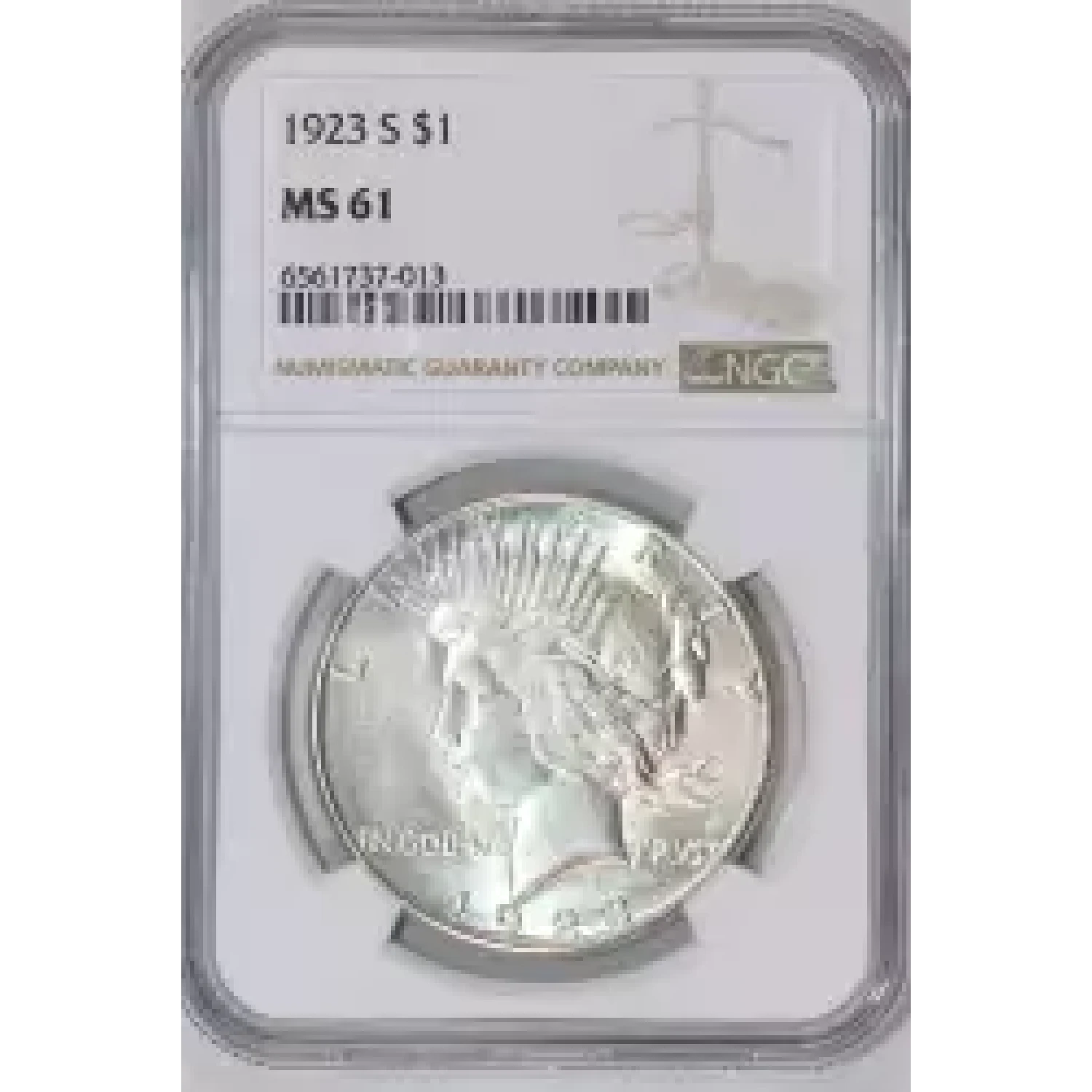 500769 | 1923-S Peace Silver Dollar NGC MS-61 | NGC | MS-61 | Sold: 01/03/2022 | $85 |