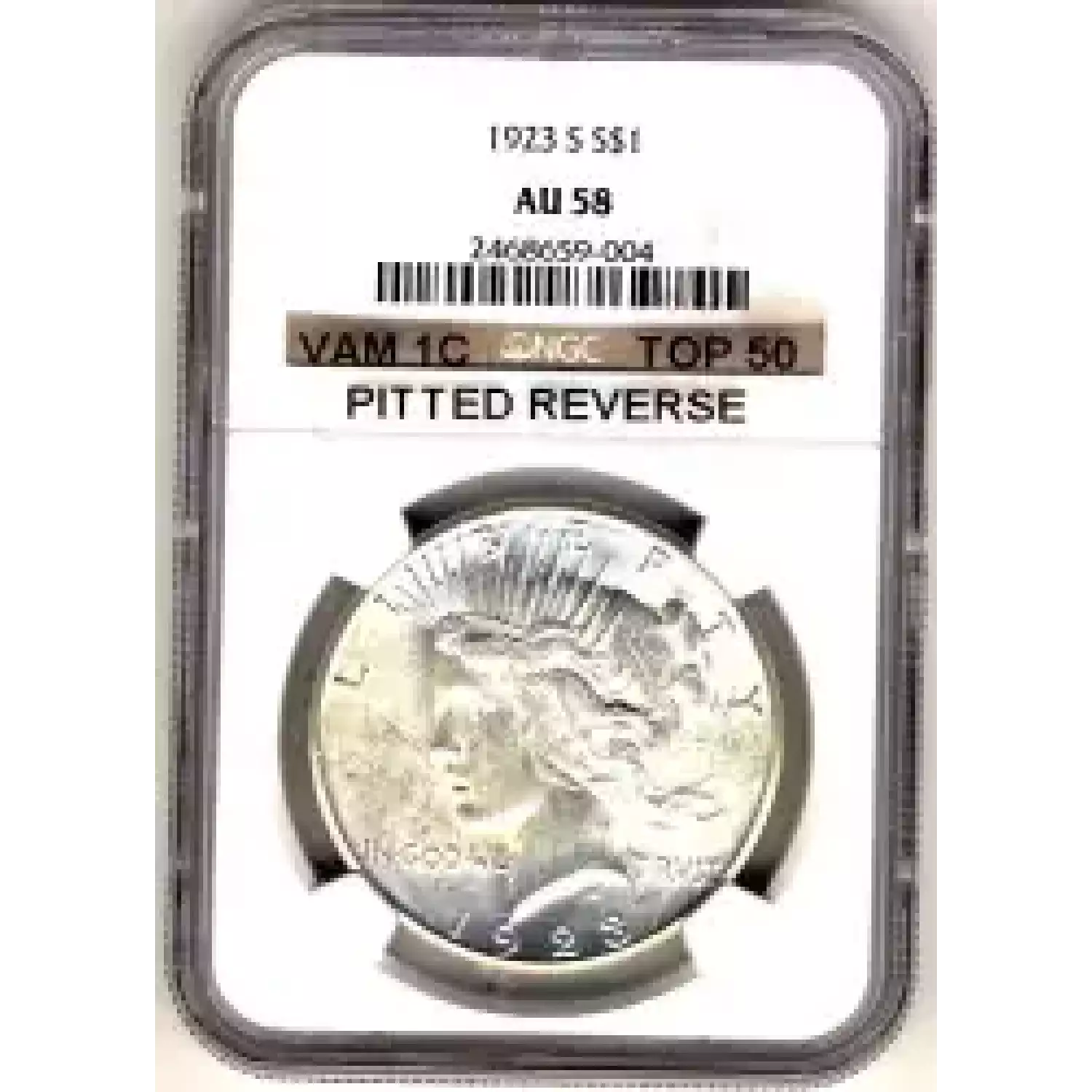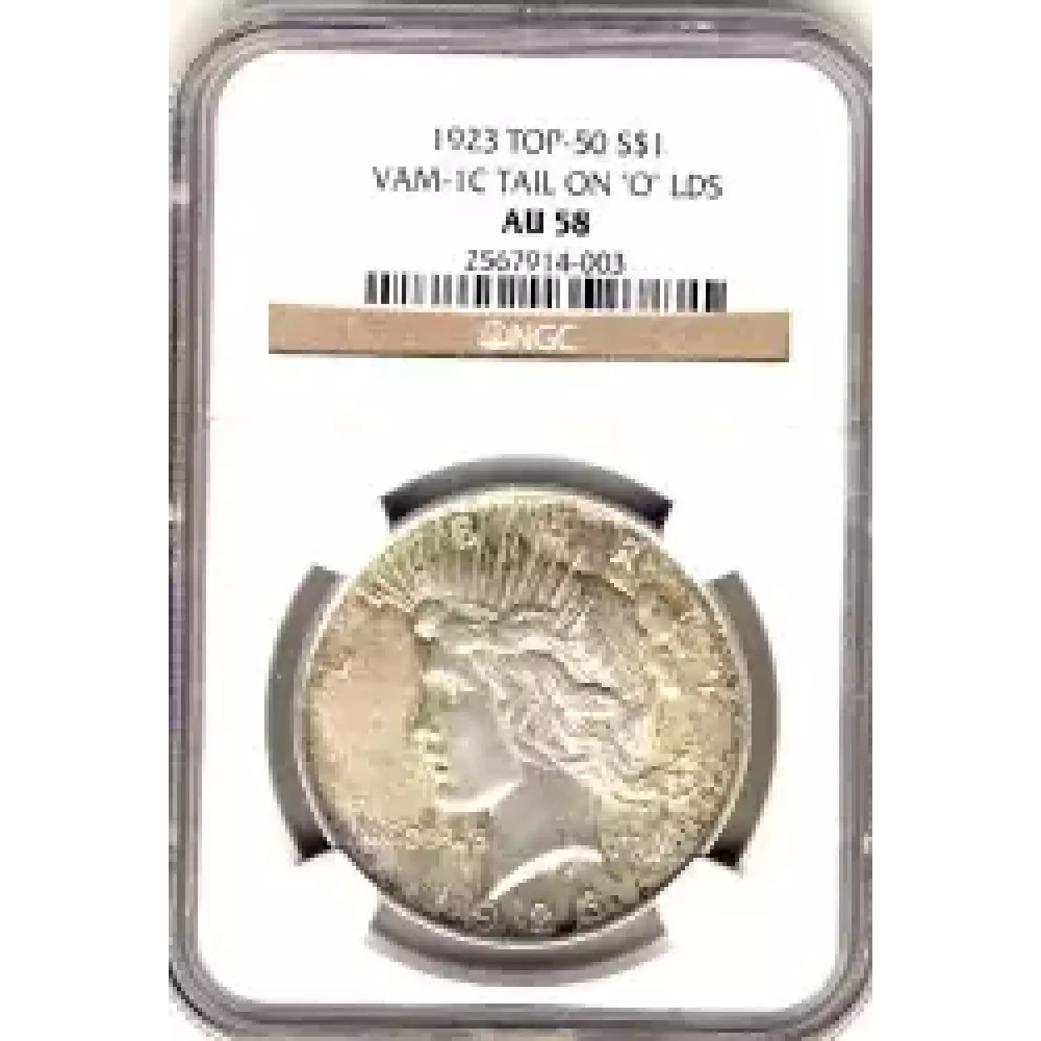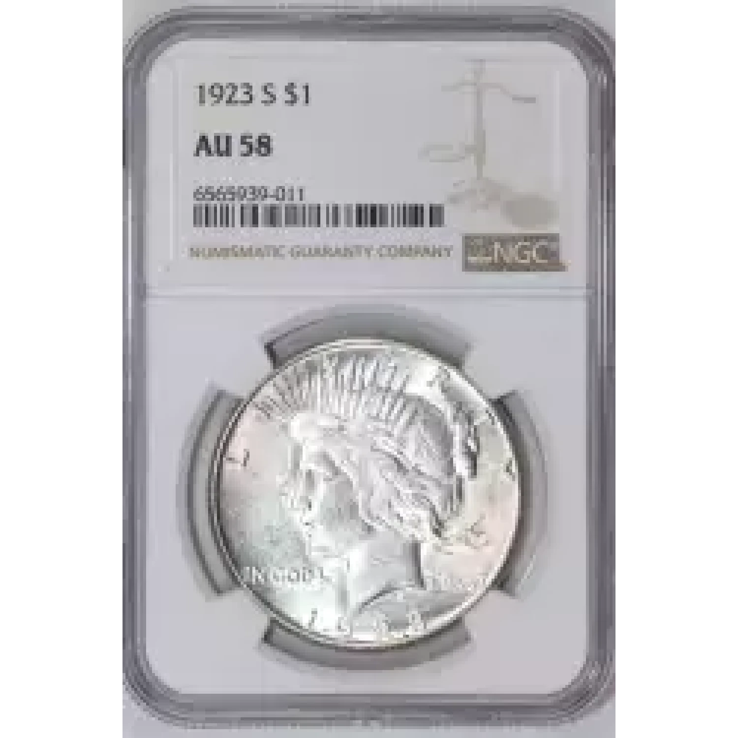 505400 | 1923-AU-58 Peace Silver Dollar NGC AU-58 | NGC | AU-58 | Sold: 17/03/2012 | $36.35 |