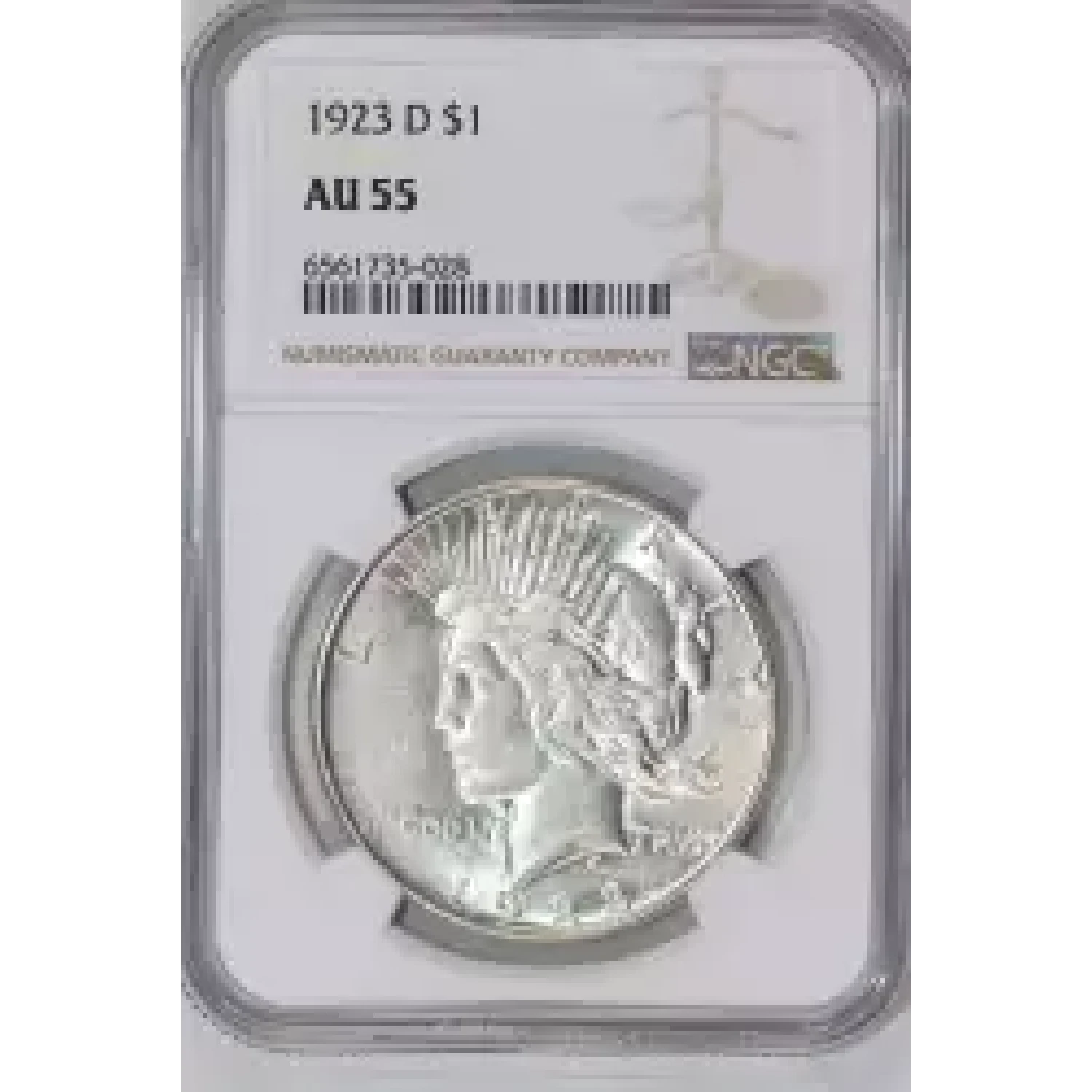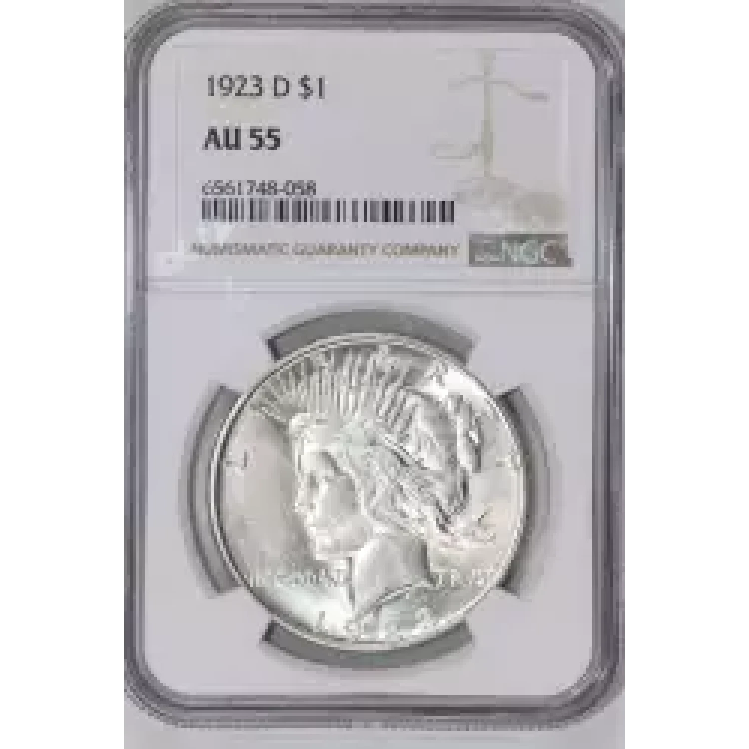 500763 | 1923-D Peace Silver Dollar NGC AU-55 | NGC | AU-55 | Sold: 14/04/2022 | $95 |