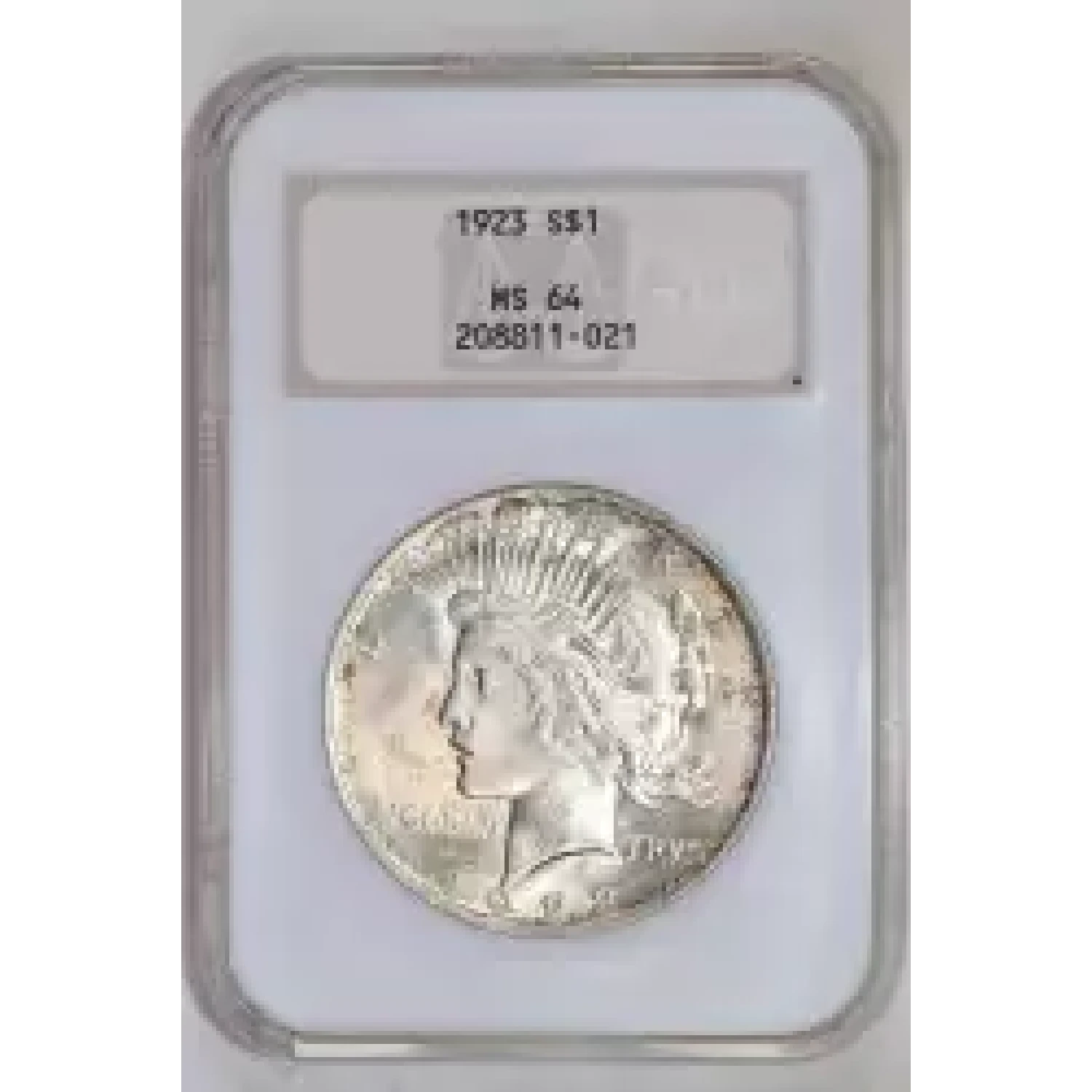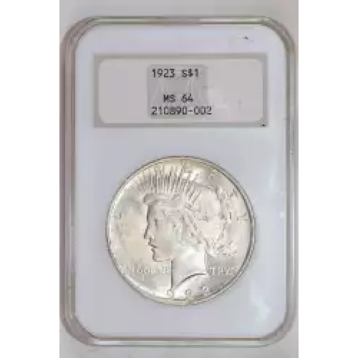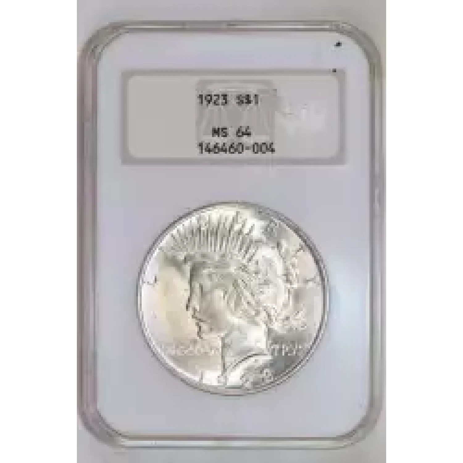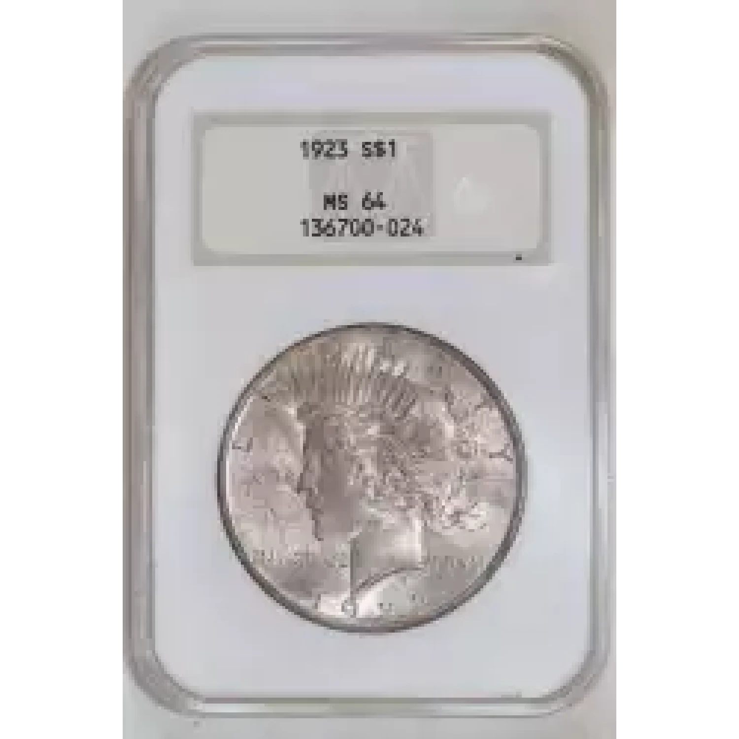 519750 | 1923 Peace Silver Dollar NGC MS-64 | NGC | MS-64 | Sold: 08/03/2024 | $105 |