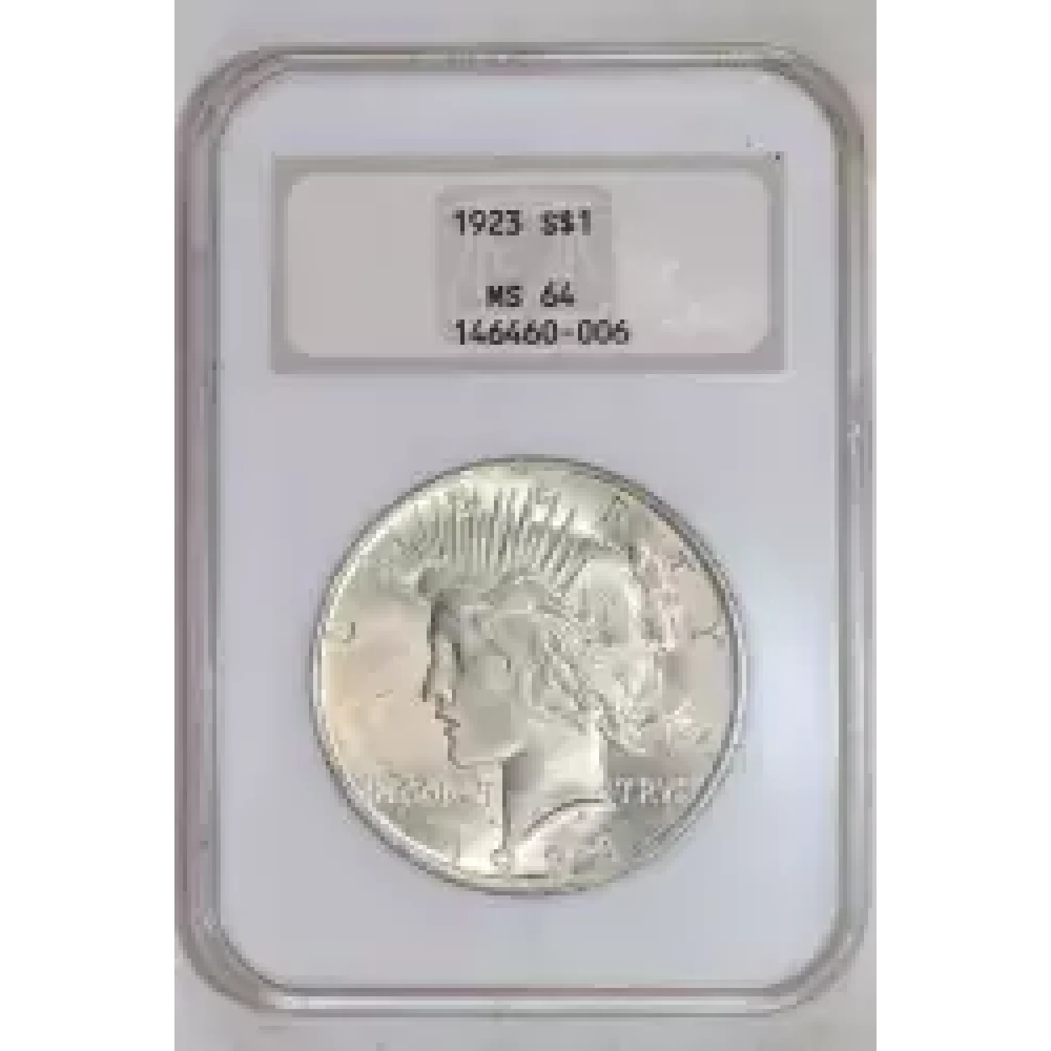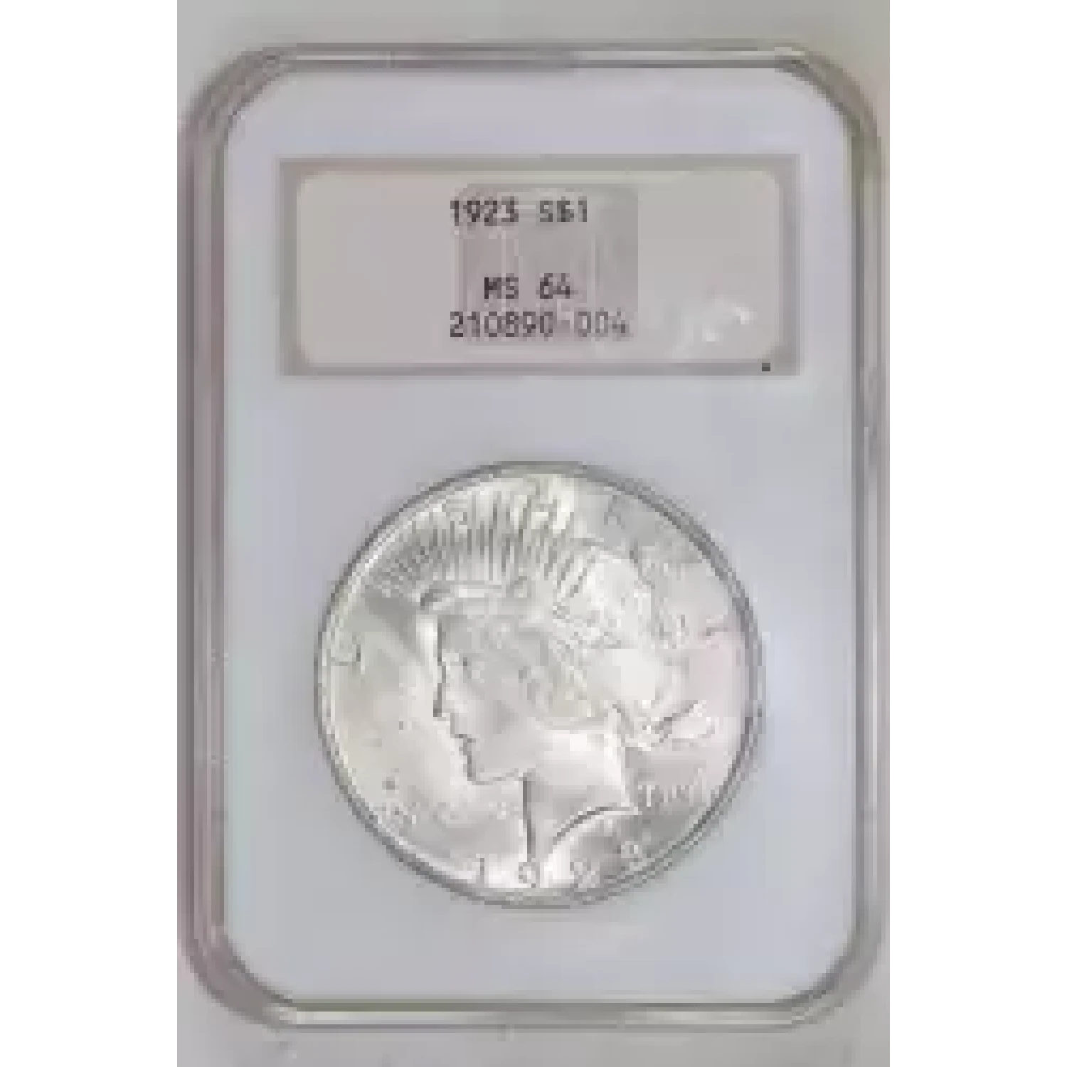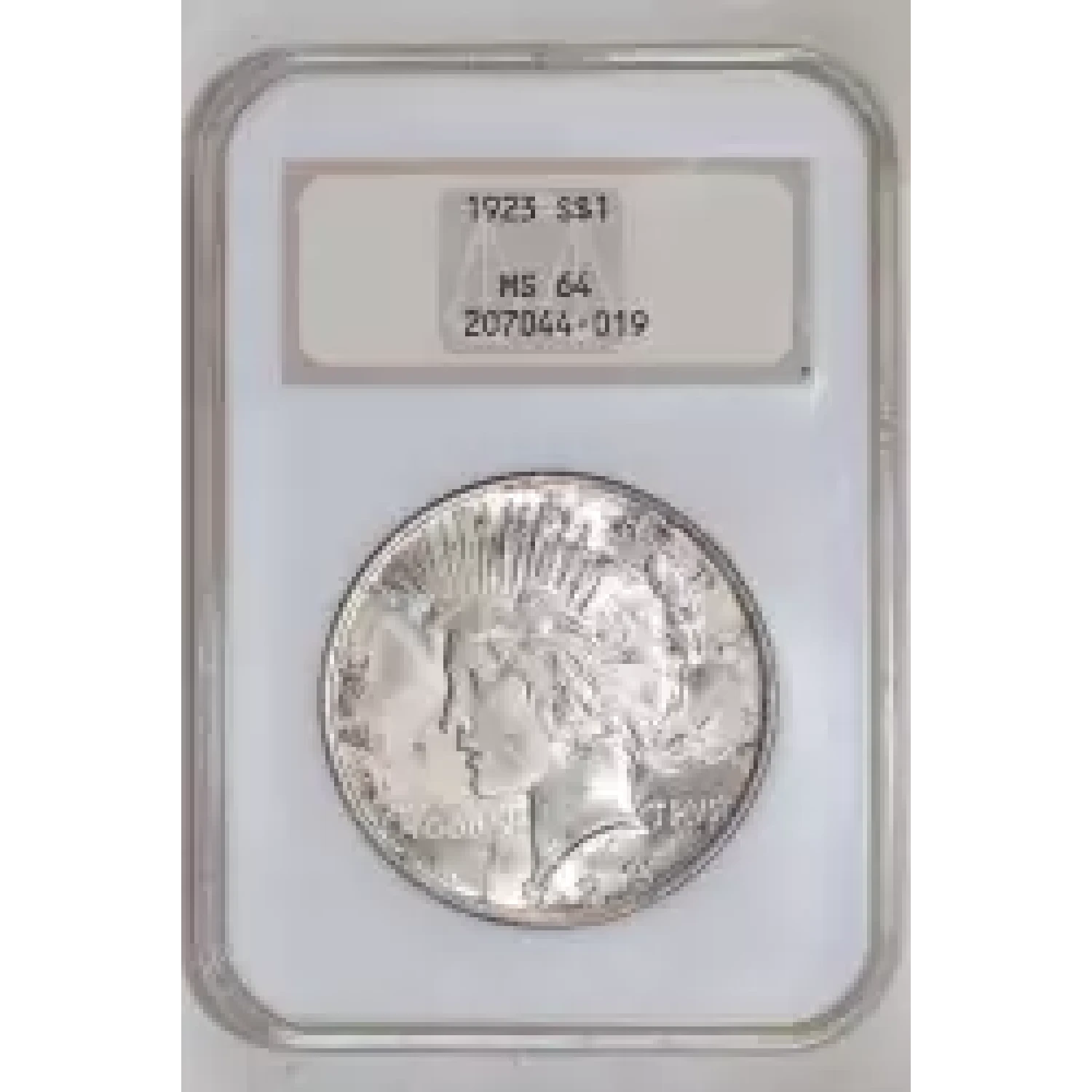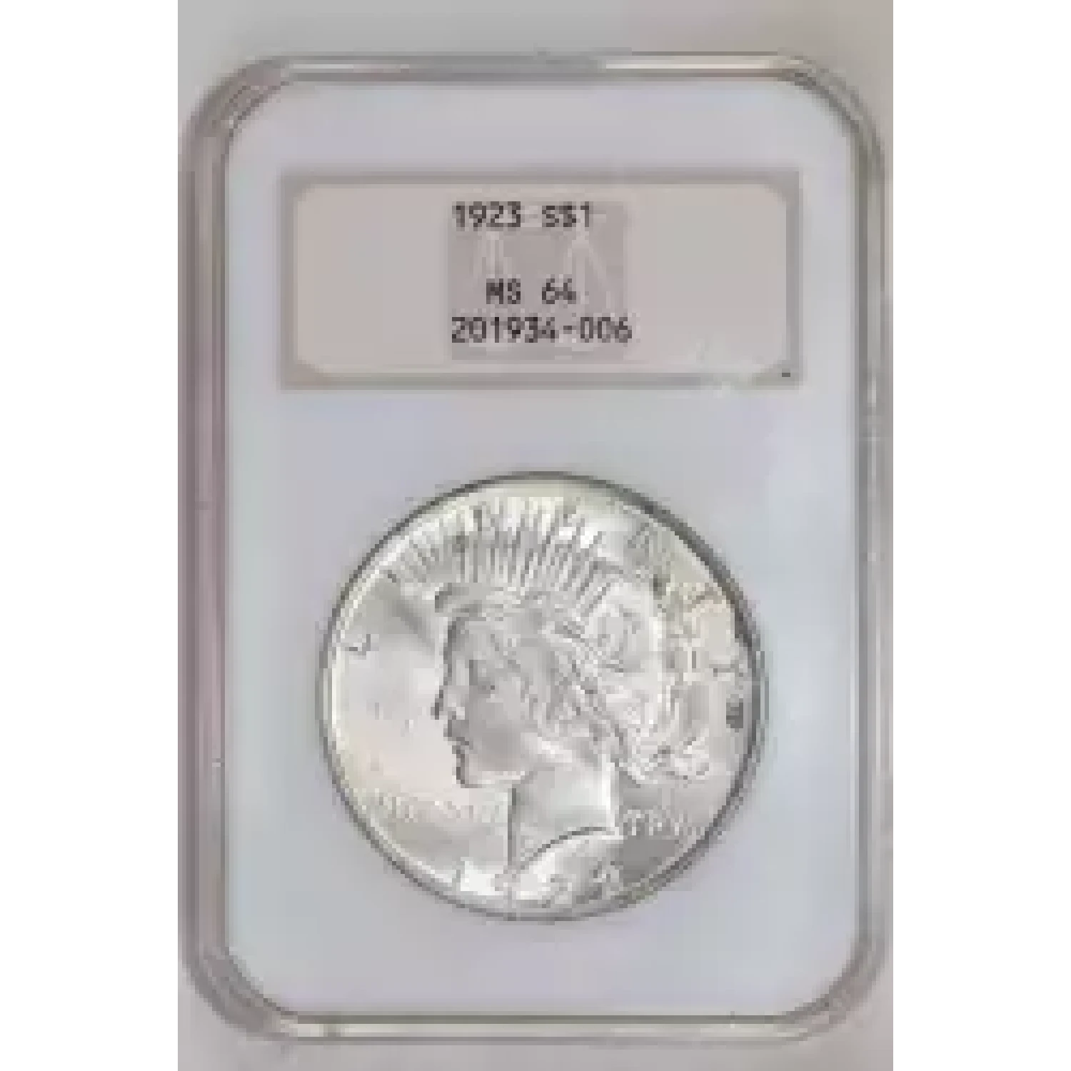 519750 | 1923 Peace Silver Dollar NGC MS-64 | NGC | MS-64 | Sold: 08/03/2024 | $105 |